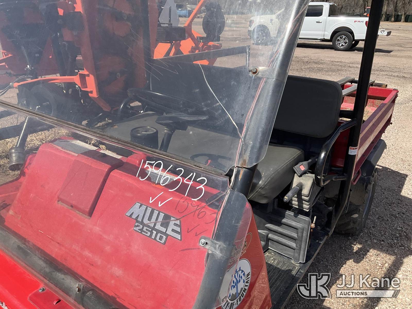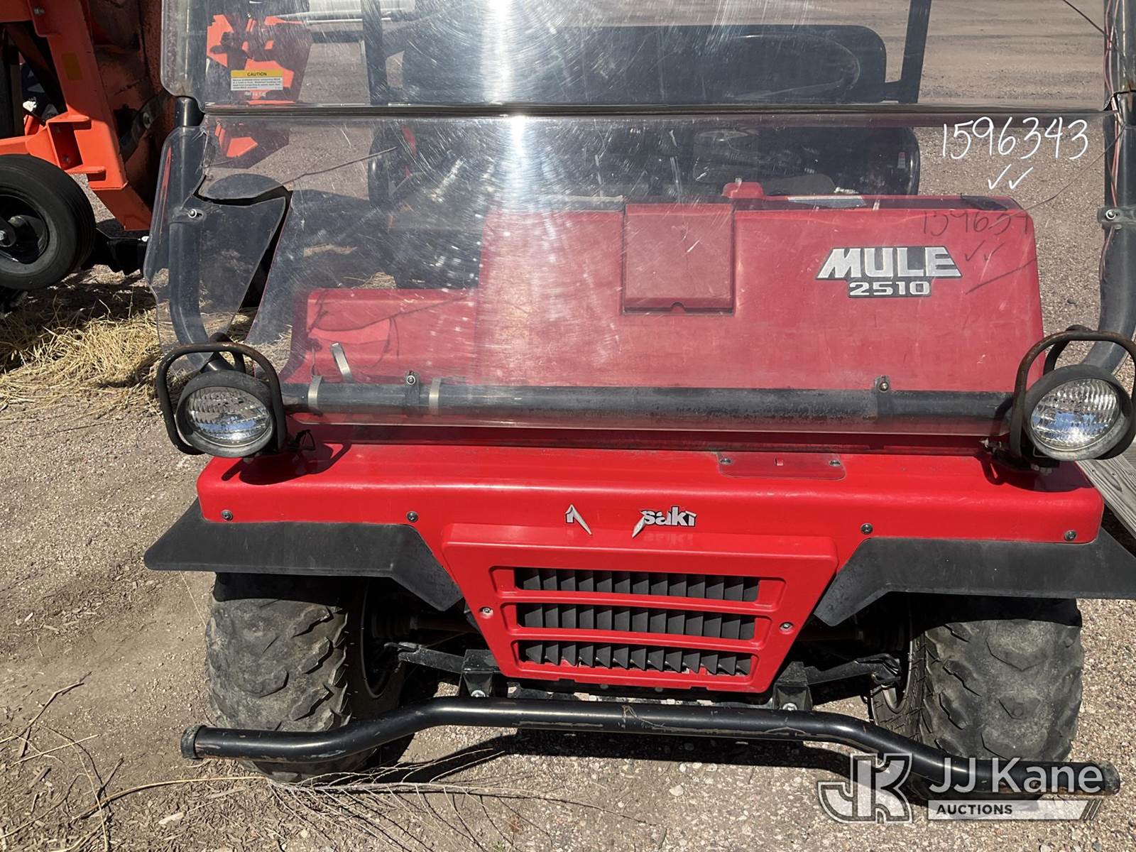2000 Kawasaki Mule 2510 KAF620-A Utility Vehicle, s/n JK1AFCA12YB535207, 617cc 4X4, GAS, Shuttle, with 13.5 cubic-foot tilt cargo bed, (Exempt from Odometer Disclosure - Reads 4,637 miles) Municipality Owned & Maintained (Runs, Moves & Operates) (Reads 1,185 hours) NOTE: This unit is being sold AS IS/WHERE IS via Timed Auction and is located in Fountain, CO. For more information & removal arrangements please contact John Larkin @ 720-390-9897. (Buyer is responsible for removal. Assistance by consignor or JJ Kane Auctions is not assured.)
