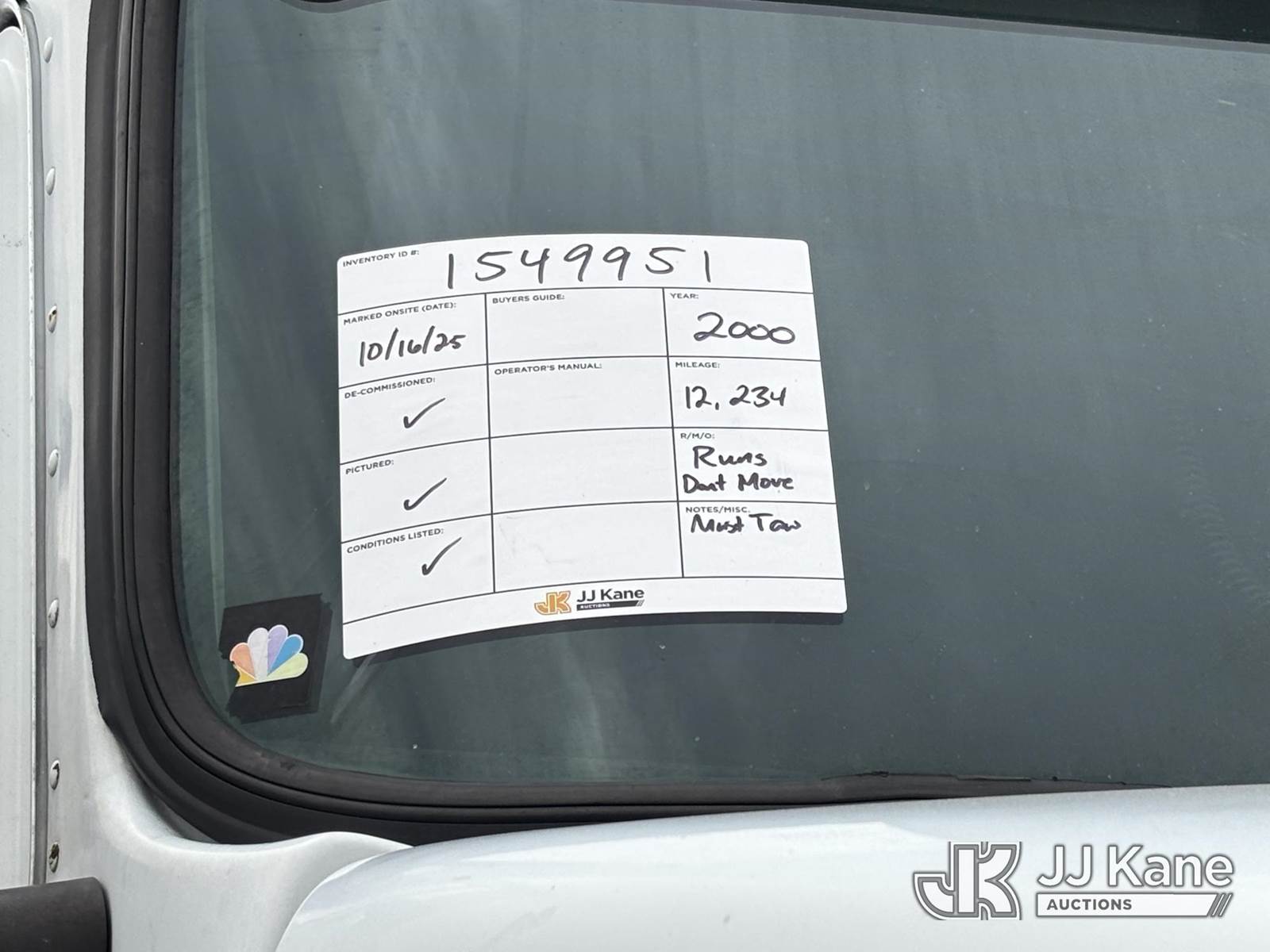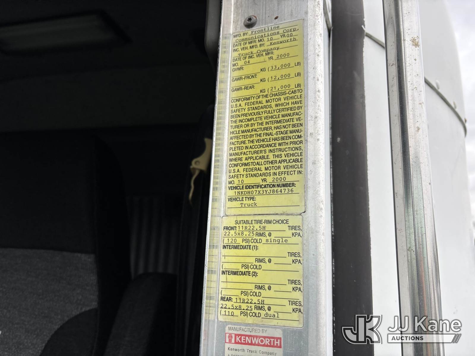 2000 Kenworth T800 Van Body Truck, Cummins ISM305VSP Auto, diesel, A/C, with Powertech 25 kW Generator, Kubota dsl, Runs (Reads 1488 Hours) Sleeper Cab, Enclosed Body, Communication Dish on Roof, 13 ft height, (Exempt from Odometer Disclosure - Reads 12,234 miles) (Former Media Truck) (Runs, Electrical Issues, Transmission not unlocking to Move, Transmission Condition Unknown, Must Tow, Buyer Must Load) This is a Titled Item NOTE: This unit is being sold AS IS/WHERE IS via Timed Auction and is located in Plymouth Meeting, PA. Inspection & preview days for this unit are the 2 business days prior to the first day of items closing for this auction, item is located at 1402 Conshohocken Rd Plymouth Meeting, PA 19462 and hours of operations are 8a-4p. For pre-sale questions, please contact Bruce Thomas @ (267)-887--0392 or bruce.thomas.jr@jjkane.com. (Buyer is responsible for removal. Assistance by consignor or JJ Kane Auctioneers is not assured.)