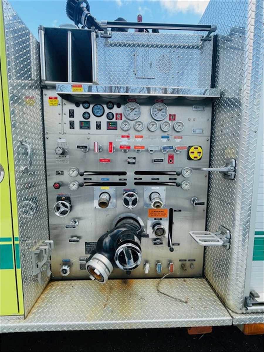2000 KME Excel XMFD pumper. Equipped with a Hale two-stage, 1,250 GPM pump and Elkhart foam system. 500-gallon water tank with 40-gallon foam tank. Vehicle purchased in 2000 and was used sparingly as a special response vehicle (MVC, chemical spills, cold water rescue, etc.). In service as recently as November 2025. Rear power and air cord reels, and tons of compartment space. Class B foam was drained from the tank in 2024. Night scan telescoping light tower OOS due to parts unavailability. Seats six with integrated in-seat SCBA.