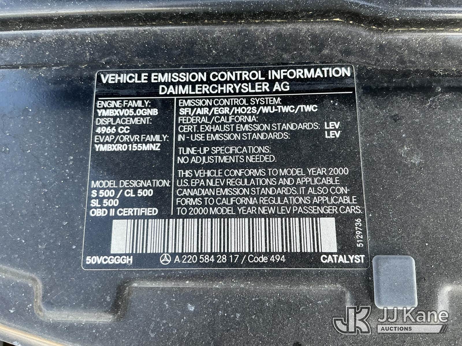 2000 Mercedes-Benz S-Class S500 4-Door Sedan, 5.0L V8 SOHC 24V gas, RWD, Auto, A/C, (Exempt from Odometer Disclosure - Reads 92,113 miles) State of FL Unit (Not Running, Condition Unknown) (Paint/Body/Rust Damage) (FL Residents Purchasing Titled Items - tax, title & registration fees will be collected at the maximum rate of $400.00 under 25,999 and $800.00 for Over 26,000 and $250.00 trailers - Proof of insurance is mandatory; Out of State Residents Purchasing Title Items - tax will be collected based upon your state rate.) This is a Titled Item NOTE: This unit is being sold AS IS/WHERE IS via Timed Auction and is located in Thonotosassa, FL. Inspection & preview days for this unit are the 2 business days prior to the first day of items closing for this auction, item is located at 11720 N US 301 Thonotosassa, Fl 33592 and hours of operations are 8a-4p. For pre-sale questions, please contact Office Staff @ (813) 986-2485. (Buyer is responsible for removal. Assistance by consignor or JJ Kane Auctions is not assured.)