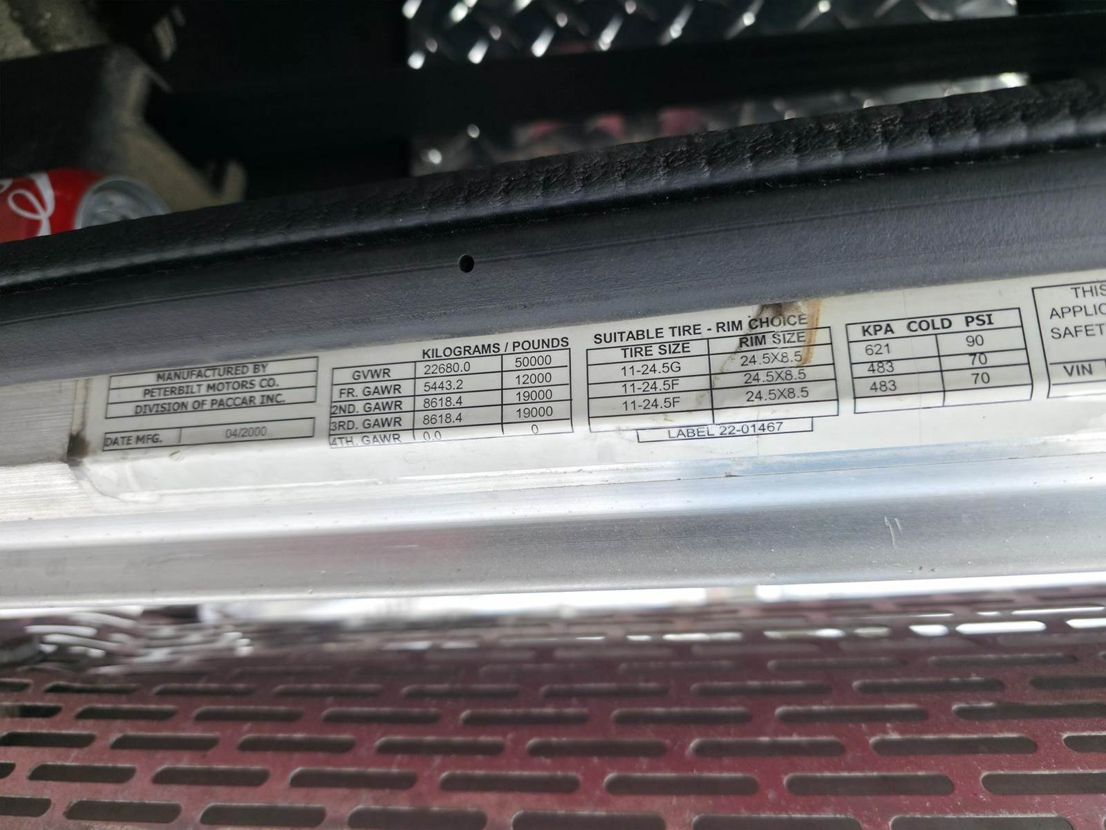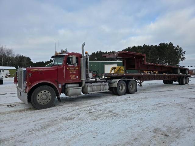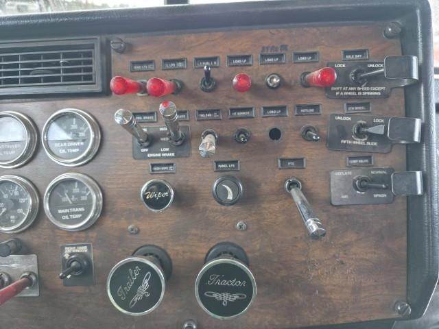 CAT C15 @ 475 h.p., 13 spd., 12k front/ 38k rear, single frame, sliding 5th wheel, 2 line wet kit, aluminum headache rack, beacons, 11R24.5 on aluminum wheels, 240" w.b., jake/cruise, diff. lock, block heater, air ride, full fenders, toolboxes, air horn, air ride cab, price is for truck only trailers not included, will have to be plugged in to get hrs. reading