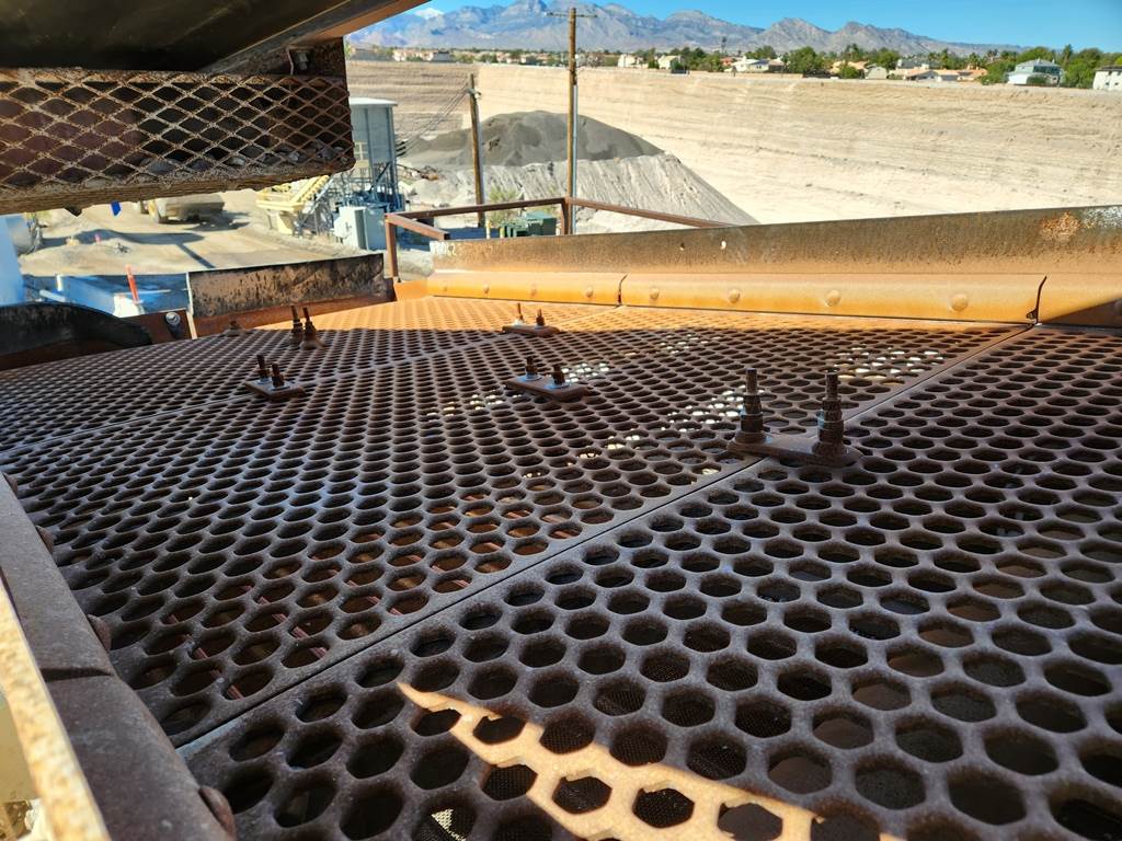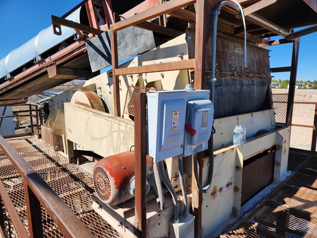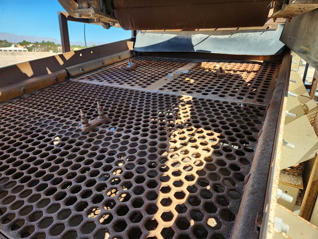 (1) - one – Pioneer 6’ wide x 16’ long, (2)-Two deck Incline Vibrating Screen, 25 h.p. electric motor, V-belt drive & guard, bolt on punched plate steel on top deck, conventional single crowned deck, side tensioning rails for wire mesh screen on the bottom deck, grease lubricated single shaft two roller bearing vibrator assembly with external counterweights, steel coil spring suspension. Steel support structure with walkways and under screen collection hopper. S/N 402716, Order #600628. Date of Mfr. 2000. Used Equipment……Selling Price $ E-Mail or call for more information and pricing. Truck loading is included in the selling price. Condition: Good. Well maintained and in running condition when shut down.