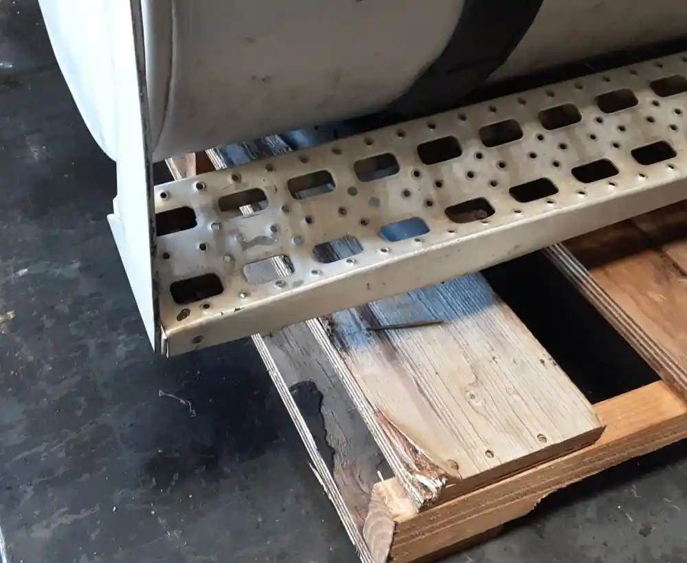 Passenger Side Fuel Tank, 52"L x 24" Dia, P/N F7HT 9002 TA, 100 Gallon Capacity, Front Fill, Both Steps Bent, Some Minor Scrapes On Ends.