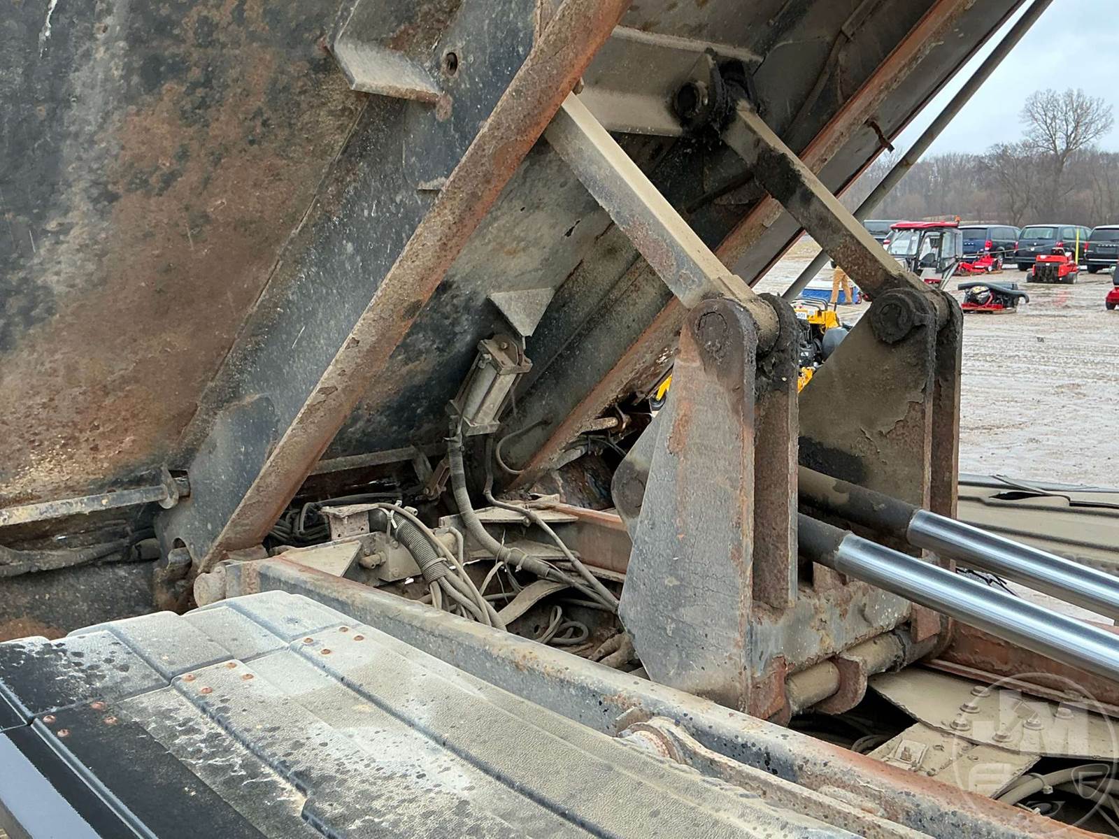 TANDEM AXLE DUMP TRUCK, CATERPILLAR, C10/3176, EATON FULLER, AUTO SHIFT, AIR BRAKES, 210 " WB, 18K FRONTS, 40K REARS, ENGINE BRAKE, DIFF LOCK, CRUISE CONTROL, PINTLE HITCH, REAR AIR SUPPLY, POWER DOOR LOCKS, POWER MIRRORS, 15', STEEL, DUMP BODY, VIBRATOR, COMBO GATE, 58000 GVWR, STEEL DISC WHEELS, 385/65R22.5 STEER TIRES, 11R24.5 TIRES, HOUR METER READS: 7571, ODOMETER READS: 184000
