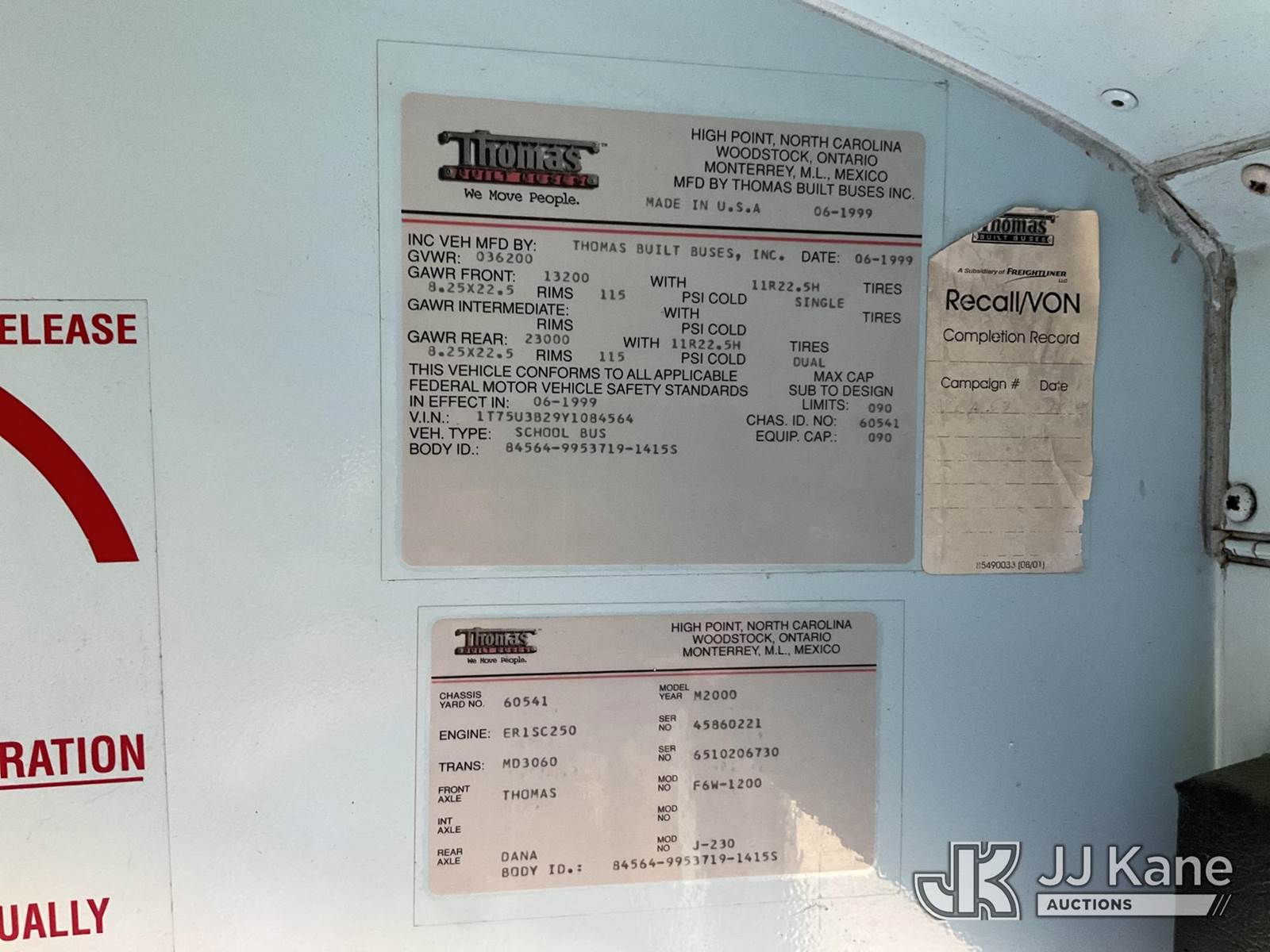 2000 Thomas Saf-T-Liner ER School Bus, 6.6L L6 DIESEL Auto, (Exempt from Odometer Disclosure - Reads 200,916 miles) (Not Running, Condition Unknown) (Oil Injection Pump Removed, Seller States: “Functioning Pump Provided, Not Installed, No Batteries) (Reads 14,964 hours) This is a Titled Item NOTE: This unit is being sold AS IS/WHERE IS via Timed Auction and is located in Elko, NV. Titles executed exactly as bidder registered. Ensure your name and/or business name and address in JJ Kane and/or ProxiBid is correct before bidding. For pre-sale questions, please contact Office Staff @ (801) 519-0123 and provide sale date and lot number. Sparks Dealer License Number DLR000052908 / OHV000052909. (Buyer is responsible for removal. Assistance by consignor or JJ Kane Auctions is not assured.)