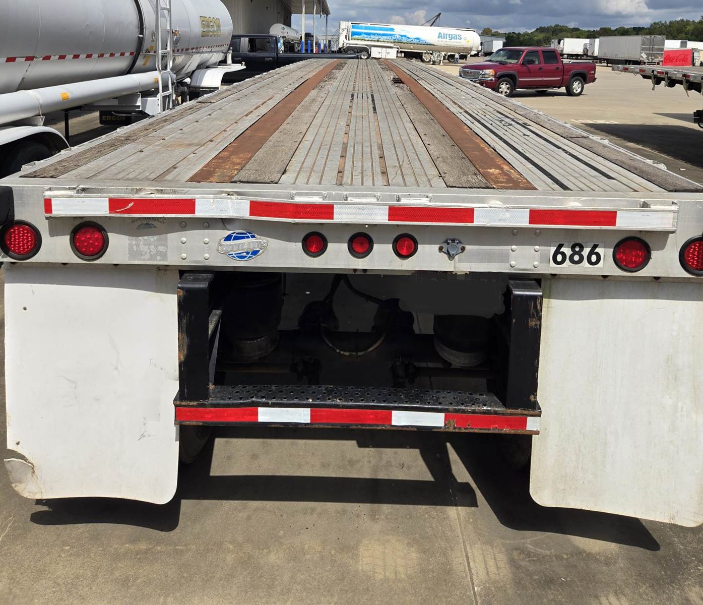 2004 Great Dane 48' x 102", Aluminum Flatbed tandem trailer. Fixed spread axle. 4 airbag suspension, straps and two storage boxes. (688)