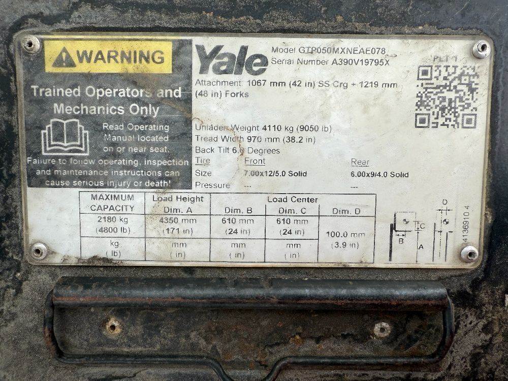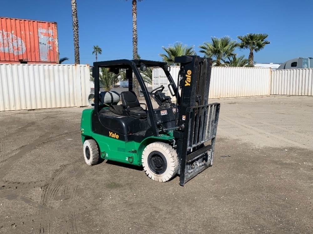 2000 YALE GTP050MXNEAE078 FORKLIFT, 5,000#, 74" mast, 3-stage, 171" lift, sideshift, dual fuel, canopy, solid tires. s/n:A390V19795X --(DOES NOT RUN)-- --(LOCATED IN COLTON, CA)--