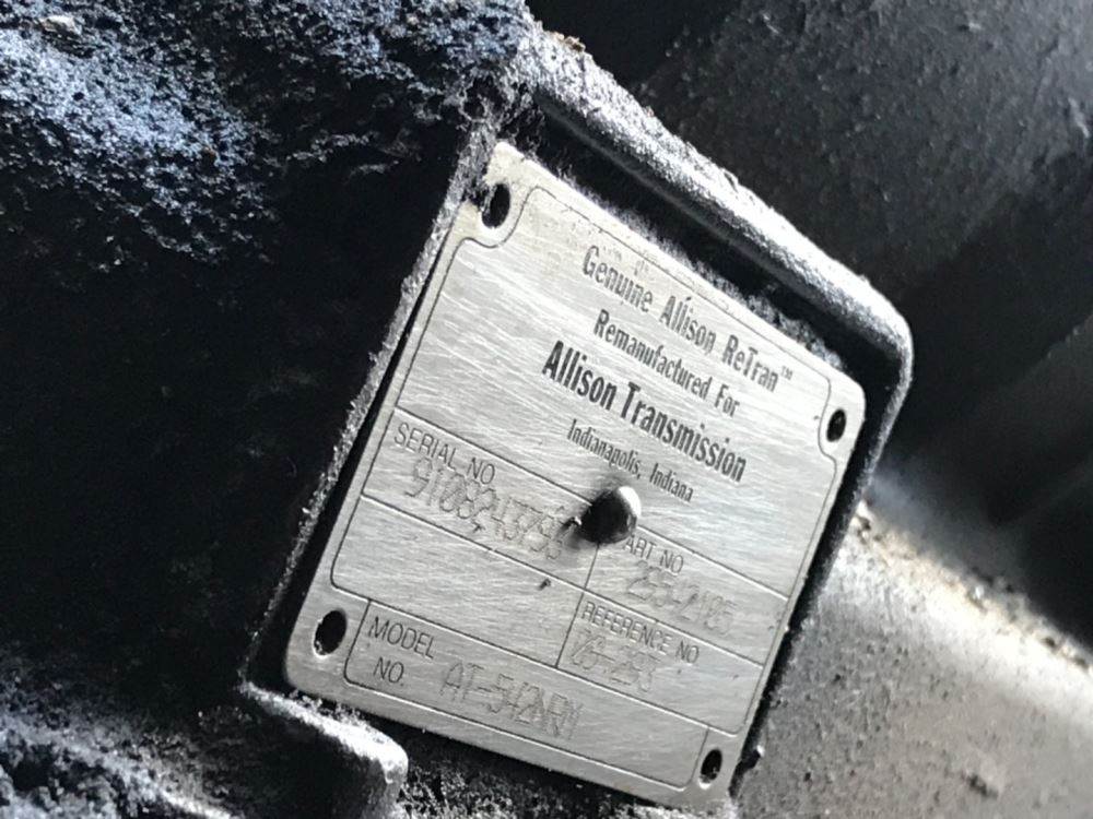 (USED) 2000 Allison (AT) AT-542NRM, TRANSMISSON. S/N-9108243793 P/N-29542105 Model-AT-542NRM For more information about this item call. We ship Worldwide. 929 W Pulaski Hwy Elkton, MD 21921, Serial#: 9108243793, Engine Make: Cummins, Engine Model: ISB, Casting#: 9108243793