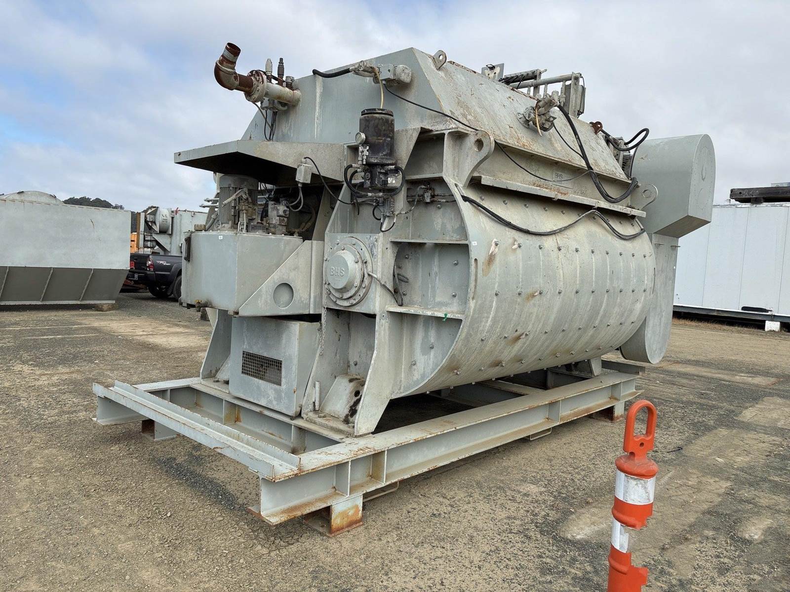 Up for sale is a 2001 BHS Sonthofen Twin-Shaft Trough Mixer Premix Paving Plant. This is a premix for a precast or a commercial paving plant. Has a good liner, mounted on a skid for easy handling. Please take a good look and call with any questions.