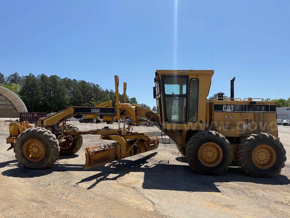 2001 CAT 135H MOTORGRADER - 3116 - 6.6L - This equipment starts and runs/is drivable. This equipment is serviced every 250 hours. Engine manufacturer is CAT and is operable with no known issues. Transmission is a manual 8 speed and is operable. Drivetrain is 4WD and is in good condition. It was removed from service is 2026 and has all maintenance records available. Exterior is yellow with dents, dings, and scratches. There is no cracked glass. Tires have half tread. Front cylinder for ripper leaks, Hydraulic leak on turn table, and leak on the valve body (see pictures). Equipment has 6 wheels and 3 axles. Decals have been removed but impressions remain. Interior is tan with cloth seat. 2 upper headlights out. 2 rear work lights out, and 1 brake and turn signal light out. Radio is AM/FM cassette and doesn't work. Has power steering. Has A/C but is in unknown condition. ***GovDeals.com – Online auction service for Federal, State, Local, Educational and Commercial Agencies where you can bid on and buy surplus assets.***