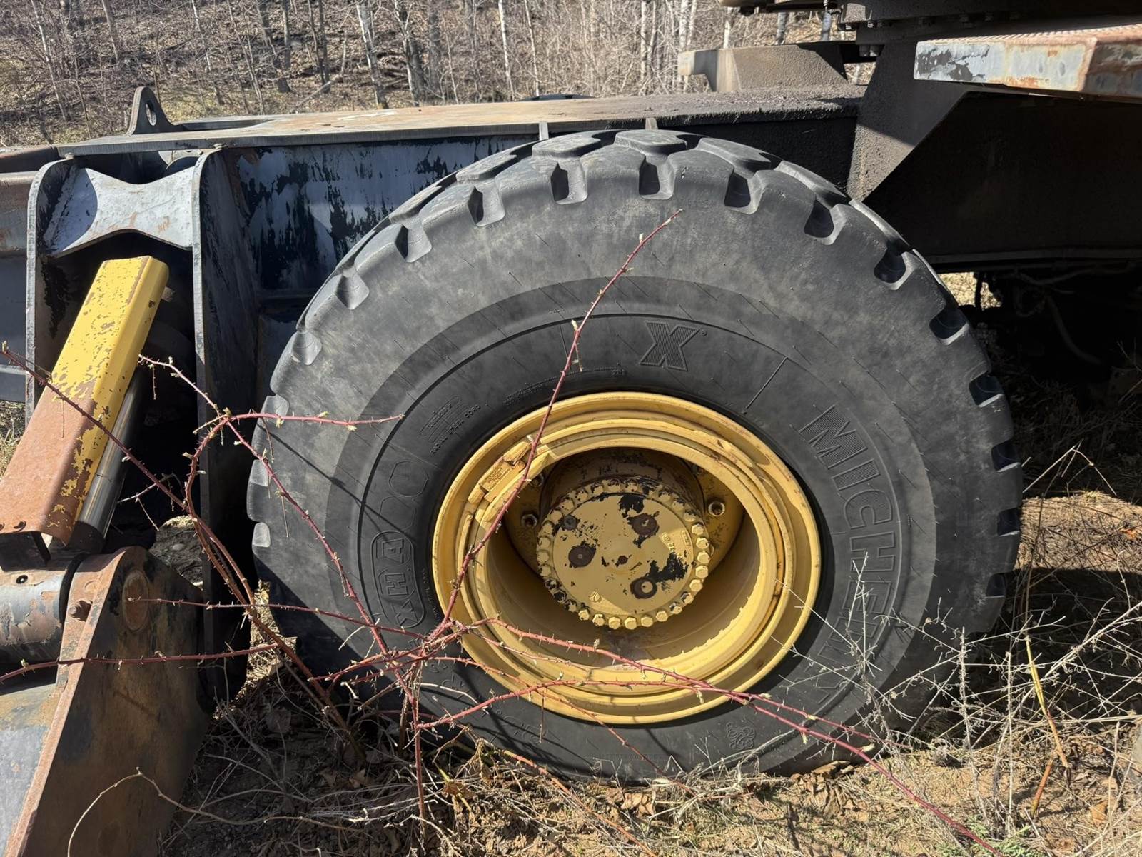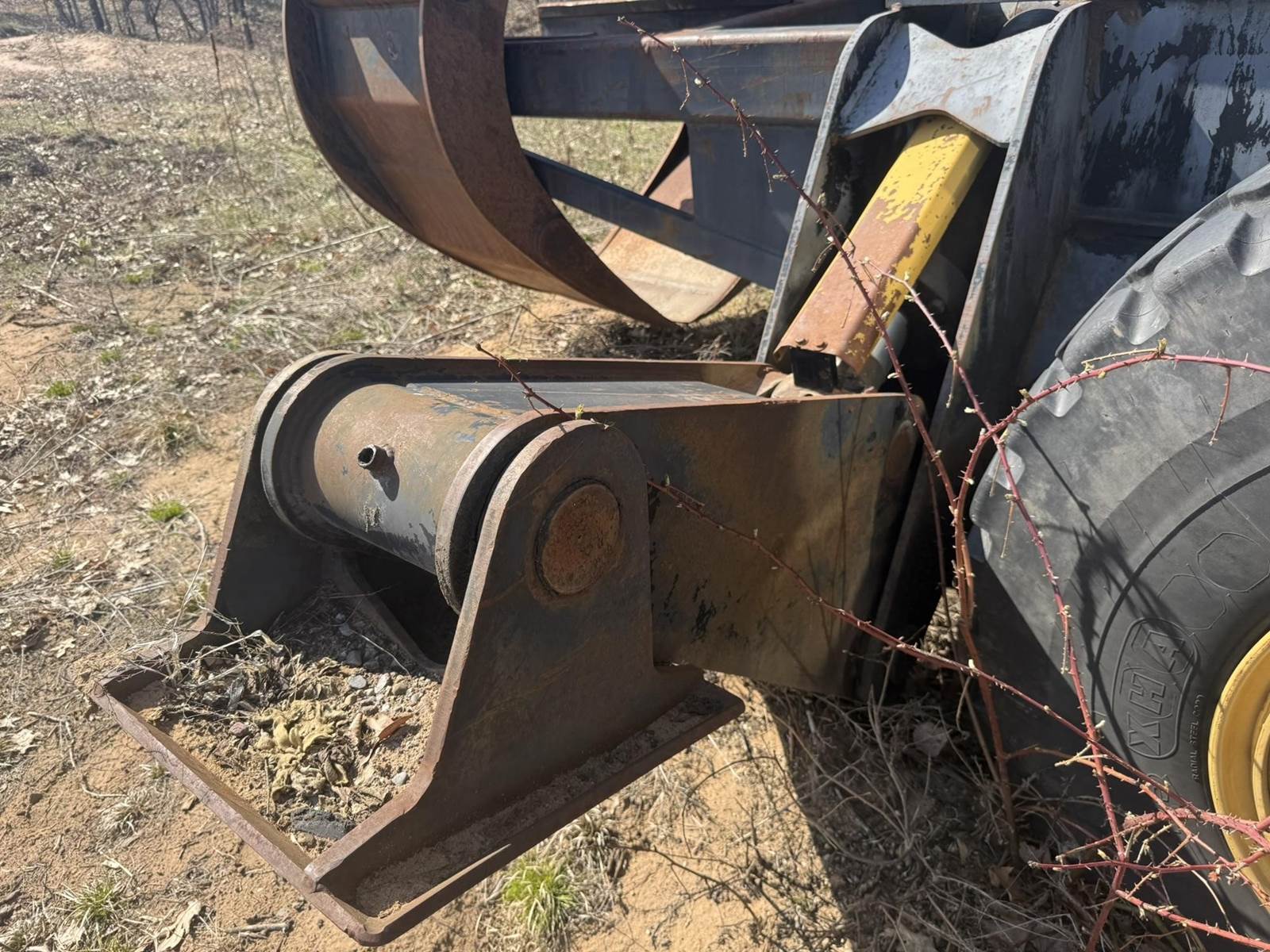 6 Cylinder 3116TA Turbo Diesel Engine, 2 Speed, 4X4, (4) Outriggers, Butt Grapple, EROPS, Joystick Control, 32700LB Max Drawbar Pull, Approx 126" Machine Width, Heat, A/C, Radio, Spring Seats, 23.5R25 Tires