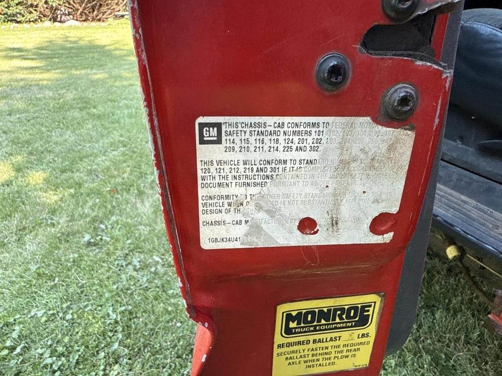 Location: McHenry, IL 6.0L Vortec Gasoline Engine, Automatic Transmission, 4x4, Central Hydraulics, 10’ Hydraulic Dump Box, Approx 90" Box Width, Salter Included, Western Plow Included, Heat/Ac, Am/Fm Radio, 215/85R15 Tires VIN: 1GBJK34U41F201576 Miles Shown: 108786