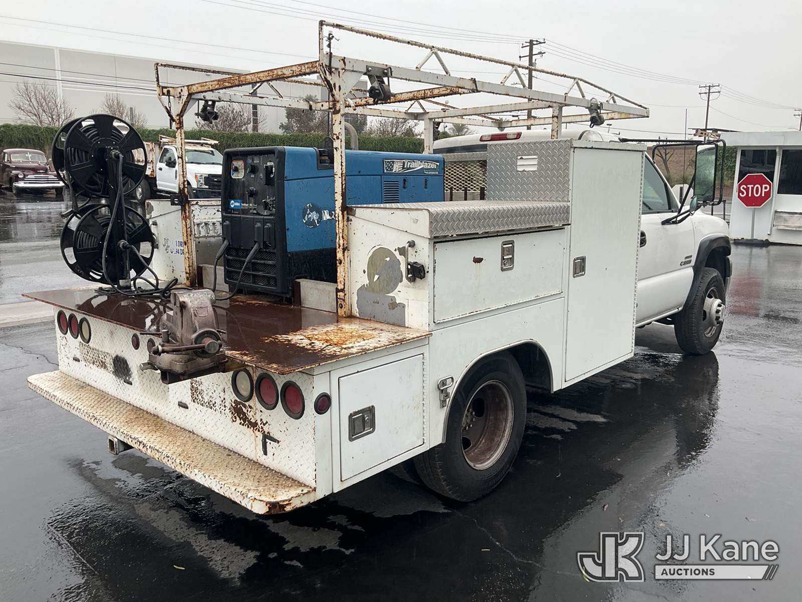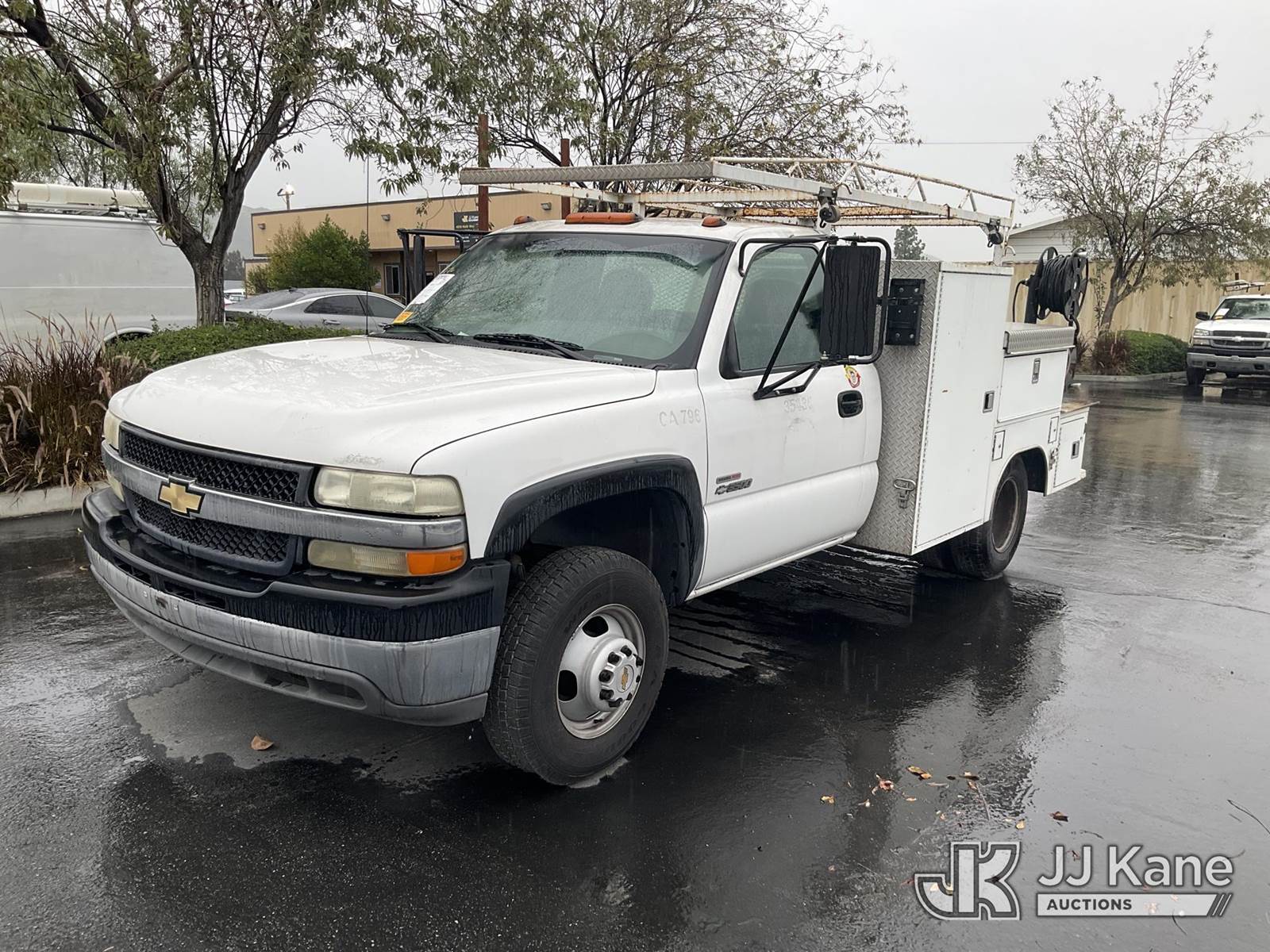 2001 Chevrolet Silverado 3500 Service Truck, s/n 1GBJC34151F134862, 6.6L V8 OHV 32V TURBO DIESEL Auto, RWD, A/C, with Trailblazer Welder/Generator,Ladder Rack, (Exempt from Odometer Disclosure - Reads 164,007 miles) (Runs & Moves (Key Missing For Gas Cap,No GVWR Sticker)) This is a Titled Item NOTE: This unit is being sold AS IS/WHERE IS via Timed Auction and is located in Jurupa Valley, CA. Inspection & preview days for this unit are the 2 business days prior to the first day of items closing for this auction, item is located at 4510 Muth Way Jurupa Valley, CA 92509 and hours of operations are 8a-4p. For pre-sale questions, please contact please contact Office Staff @ (310) 353-7140. Dealer License Number 45696. (Buyer is responsible for removal. Assistance by consignor or JJ Kane Auctions is not assured.)