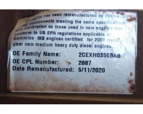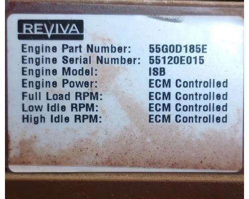 ISB 5.9L, 185 HP, Reviva S/N 55109K026, P/N 55G0D185E, CPL 2687. Label with date of remanufacture missing.