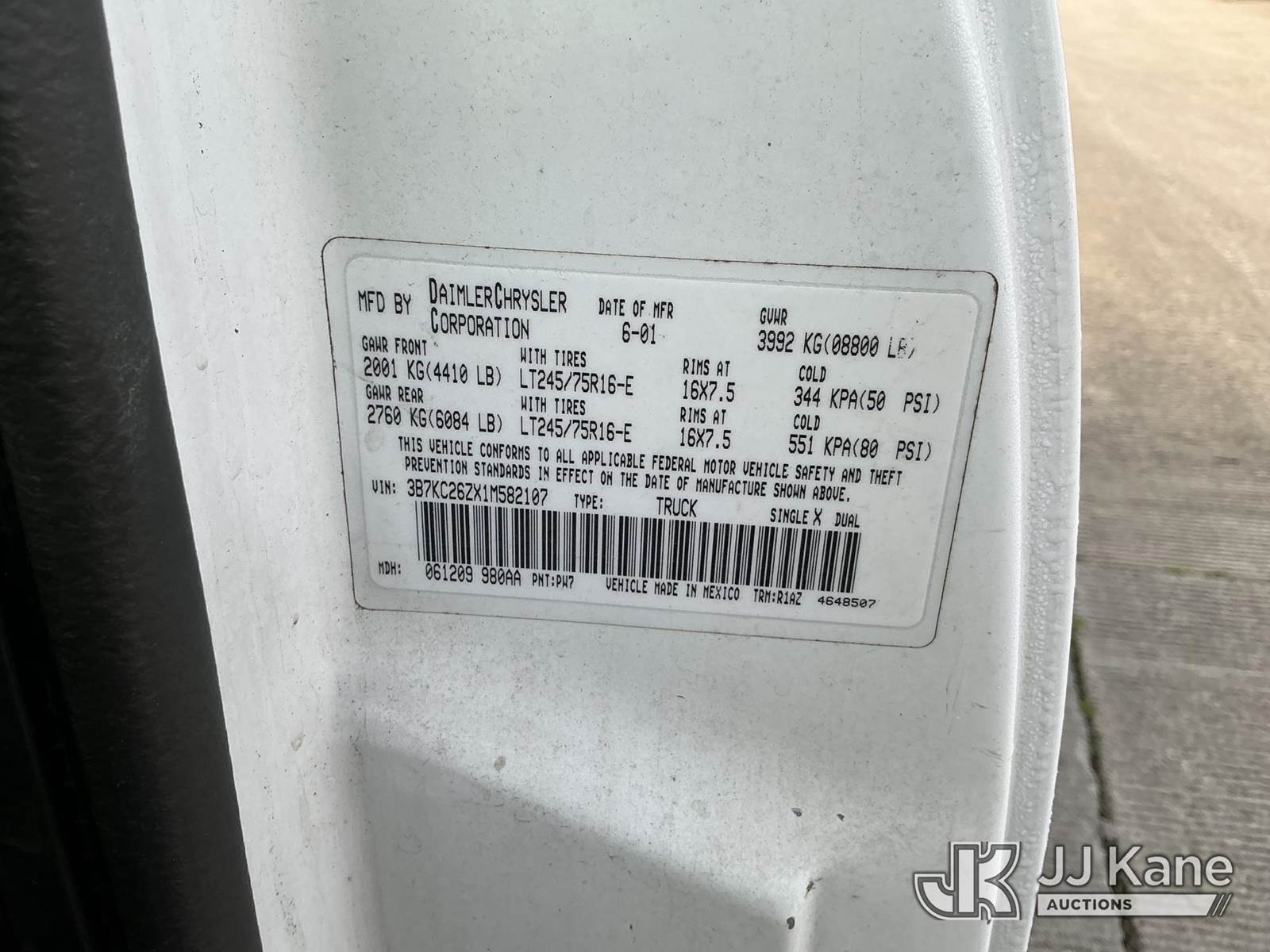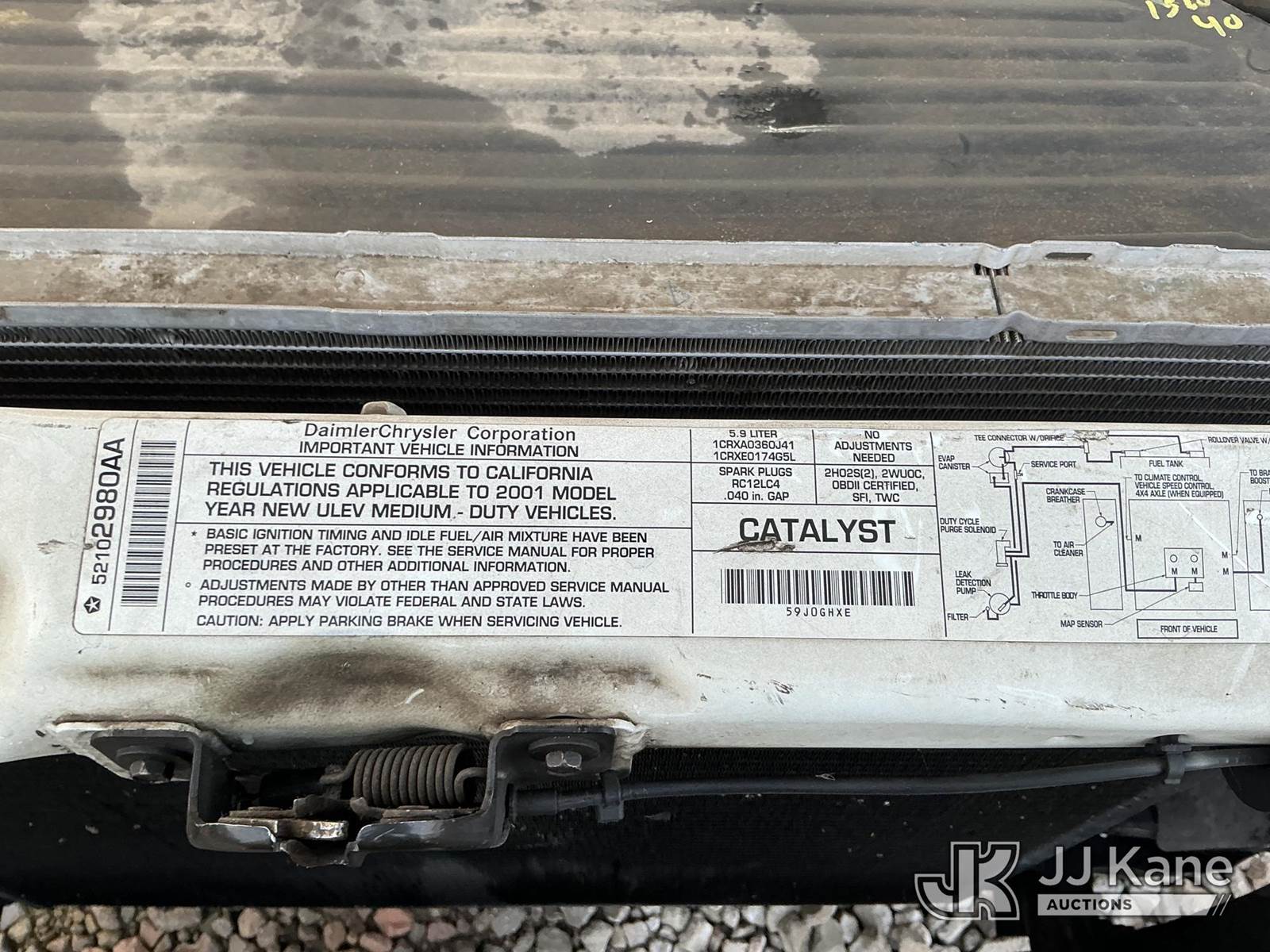 2001 Dodge Ram 2500 Pickup Truck, 8-cyl gas, Auto, A/C, (Exempt from Odometer Disclosure - Reads 74,820 miles) (Runs & Moves) (Check Engine Light On, ABS Light On, Parking Brake Light Stays On, Jump To Start) (Bidding Restricted to Licensed Vehicle Dealers Only), This is a Titled Item NOTE: This unit is being sold AS IS/WHERE IS via Timed Auction and is located in Dixon, CA. Inspection & preview days for this unit are the 2 business days prior to the first day of items closing for this auction, item is located at 8668 Sparling Ln Dixon, CA 95620 and hours of operations are 8a-4p. For pre-sale questions, please contact JJ Kane Staff at (707) 678-8060 (dixon@jjkane.com). Dealer License Number 45696. (Buyer is responsible for removal. Assistance by consignor or JJ Kane Auctions is not assured.)