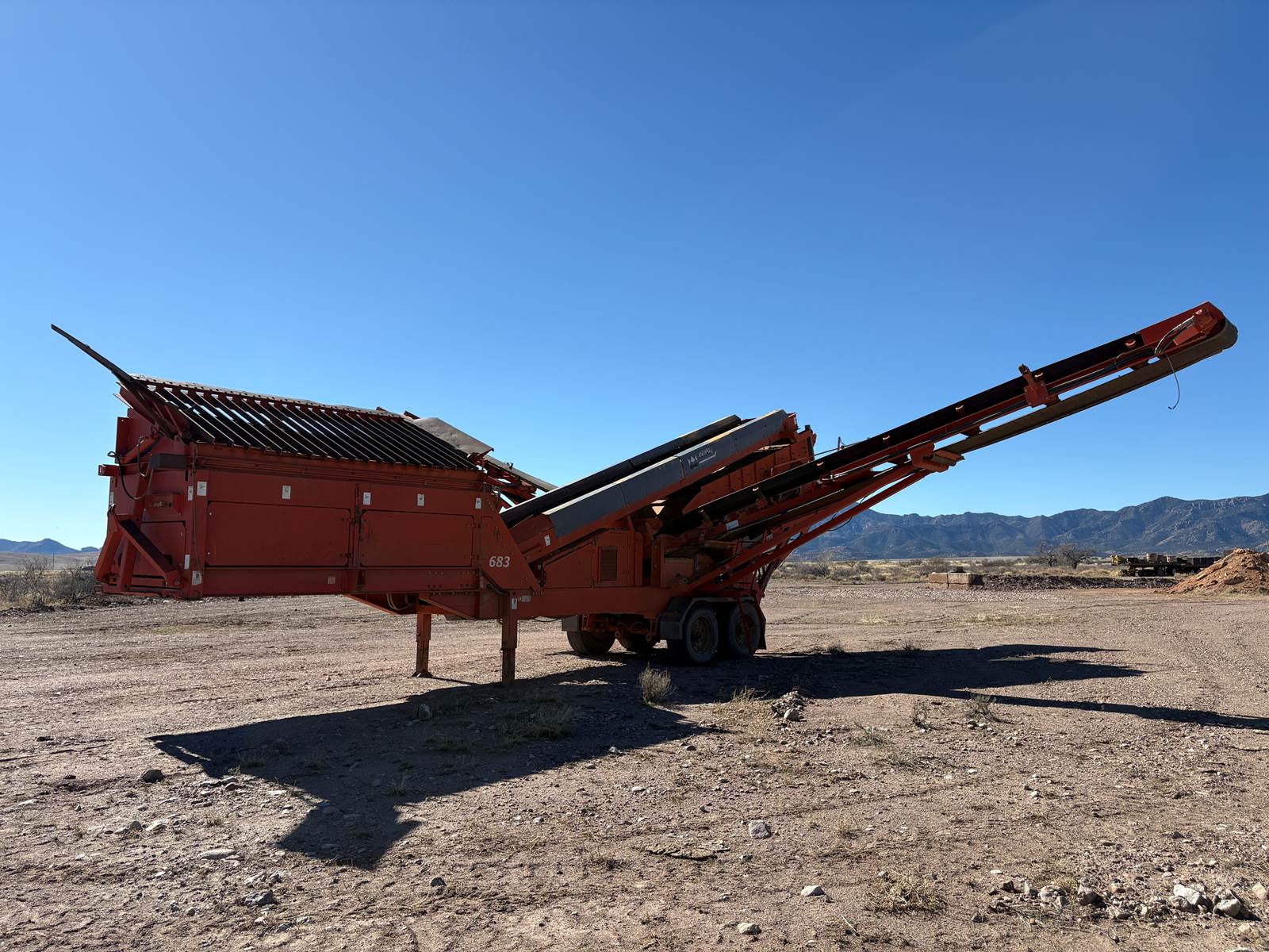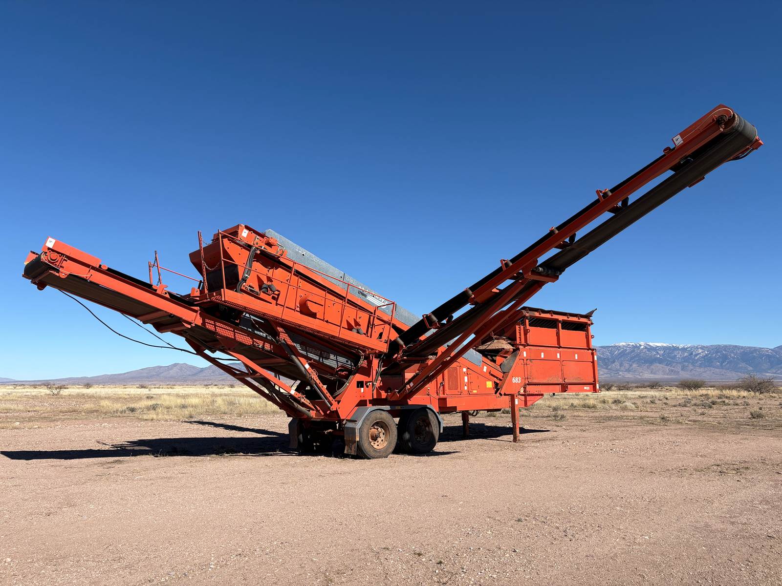 One Owner Machine in Arizona (No Rust). Ready to work. Hour Meter Reads: 2,714 Deutz 4.0L 100HP All belts except fines discharge have been replaced in the past 12 months. Top Deck: 5'x12' Heavy Gauge Woven Wire Cloth 1-1/4" Bottom Deck: 5'x10' Live Wire 3/8"