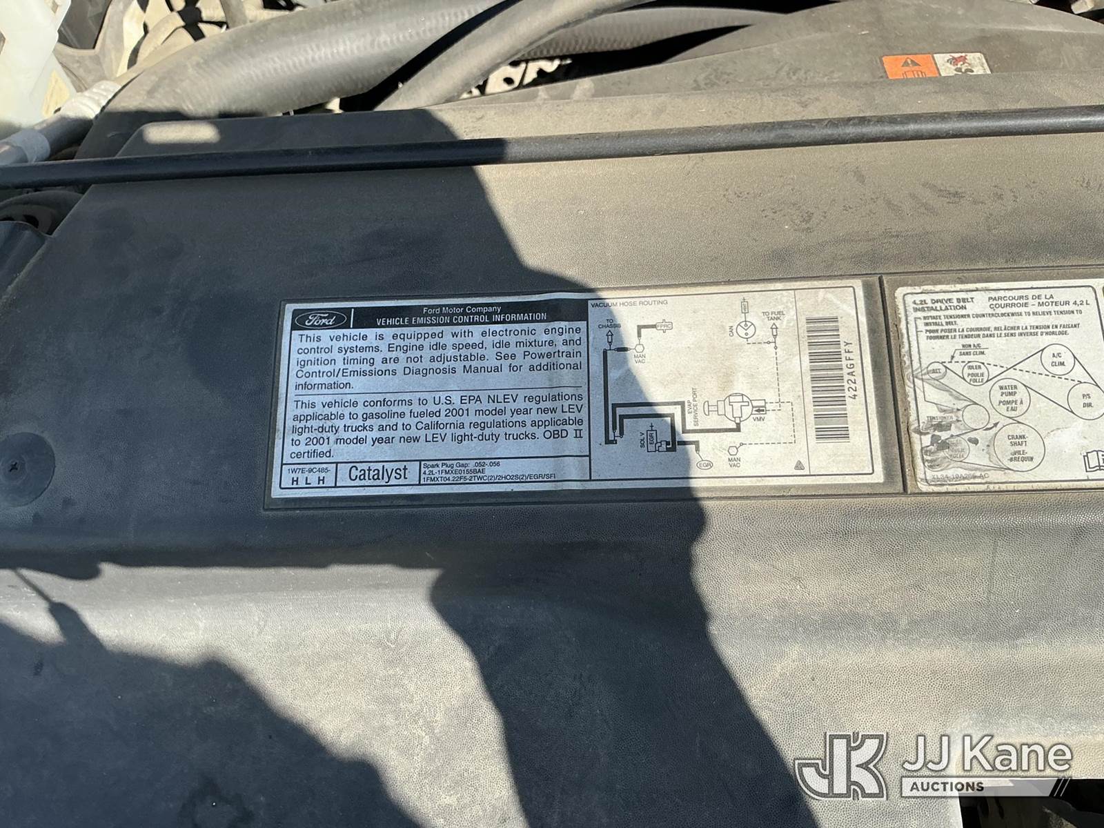 2001 Ford F-150 Pickup Truck, 4.2L V6 OHV 12V Gas, RWD, A/C, (Exempt from Odometer Disclosure - Reads 45,708 miles) (Runs & Moves) This is a Titled Item NOTE: This unit is being sold AS IS/WHERE IS via Timed Auction and is located in Dixon, CA. Inspection & preview days for this unit are the 2 business days prior to the first day of items closing for this auction, item is located at 8668 Sparling Ln Dixon, CA 95620 and hours of operations are 8a-4p. For pre-sale questions, please contact JJ Kane Staff at (707) 678-8060 (dixon@jjkane.com). Dealer License Number 45696. (Buyer is responsible for removal. Assistance by consignor or JJ Kane Auctions is not assured.)