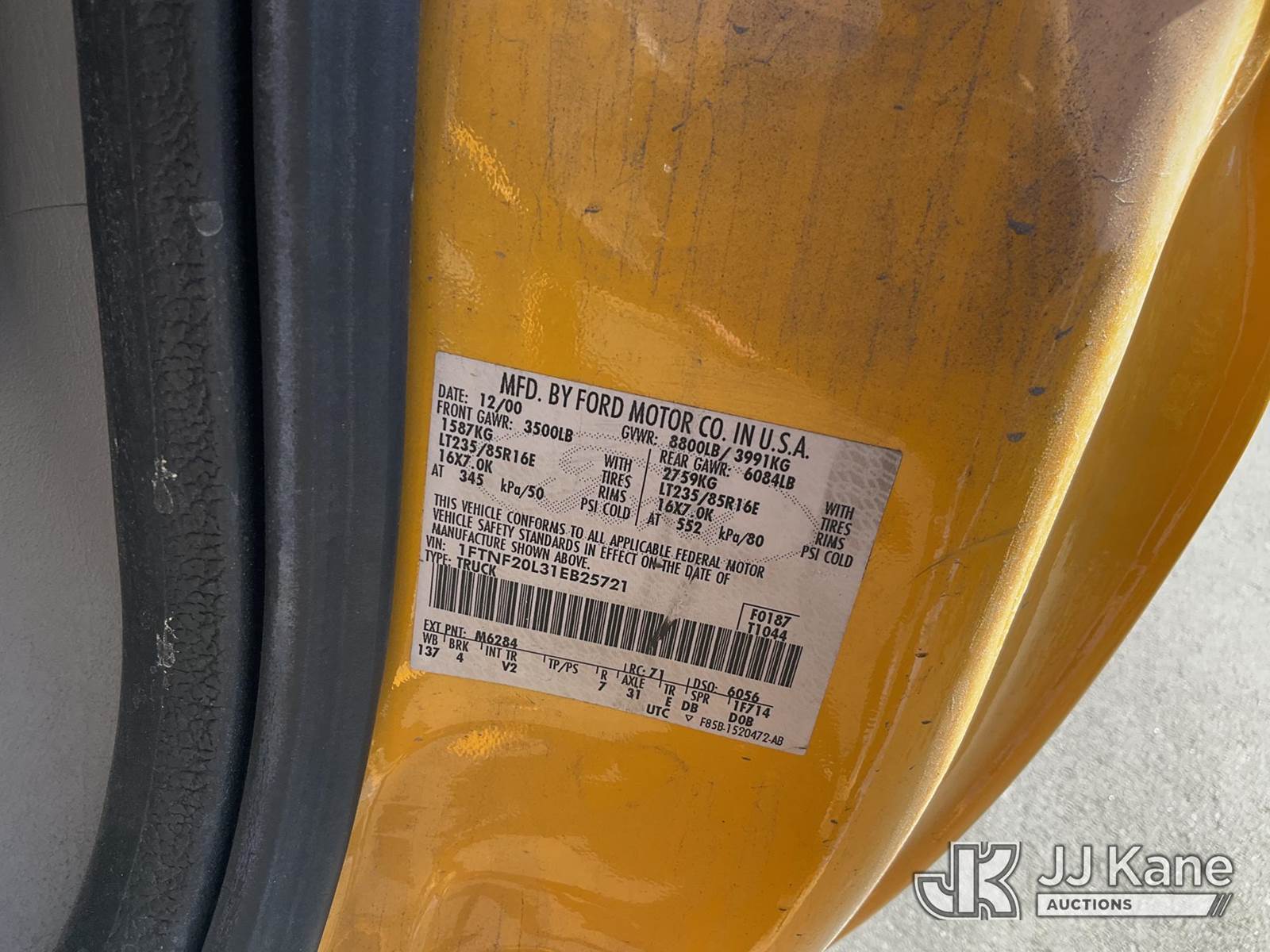 2001 Ford F-250 SD Pickup Truck, 8-cyl gas, Auto, A/C, with Tow Package , (Exempt from Odometer Disclosure - Reads 63,825 miles) (Runs & Moves) (Missing Catalytic Converter, Missing Tail Lights & Tail Gate) (Bidding Restricted to Licensed Vehicle Dealers Only), This is a Titled Item NOTE: This unit is being sold AS IS/WHERE IS via Timed Auction and is located in Jurupa Valley, CA. Inspection & preview days for this unit are the 2 business days prior to the first day of items closing for this auction, item is located at 4510 Muth Way Jurupa Valley, CA 92509 and hours of operations are 8a-4p. For pre-sale questions, please contact please contact Office Staff @ (310) 353-7140. Dealer License Number 45696. (Buyer is responsible for removal. Assistance by consignor or JJ Kane Auctioneers is not assured.)