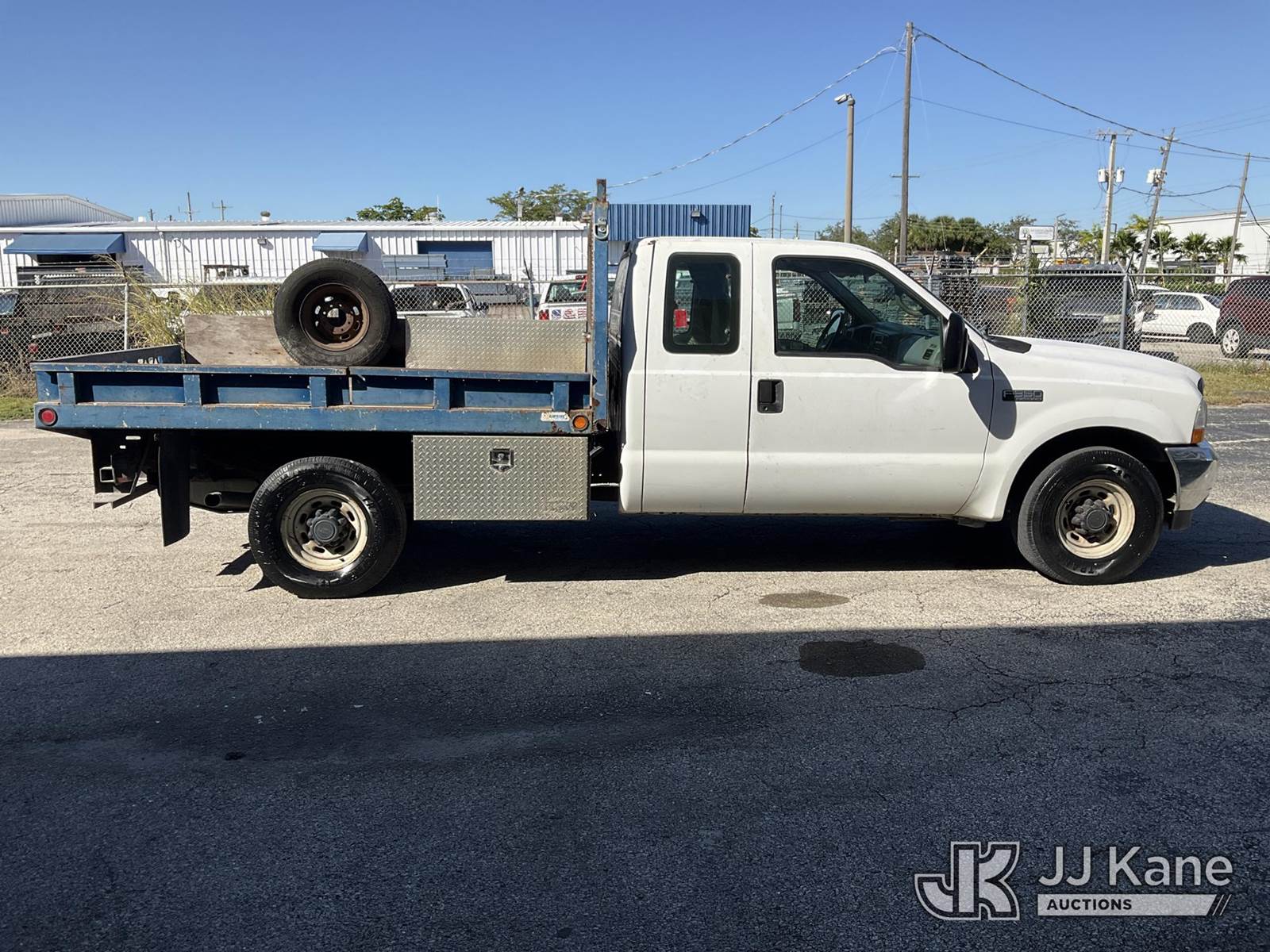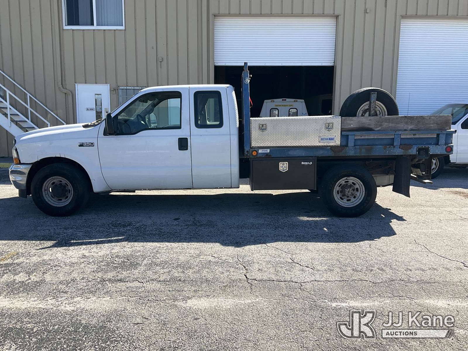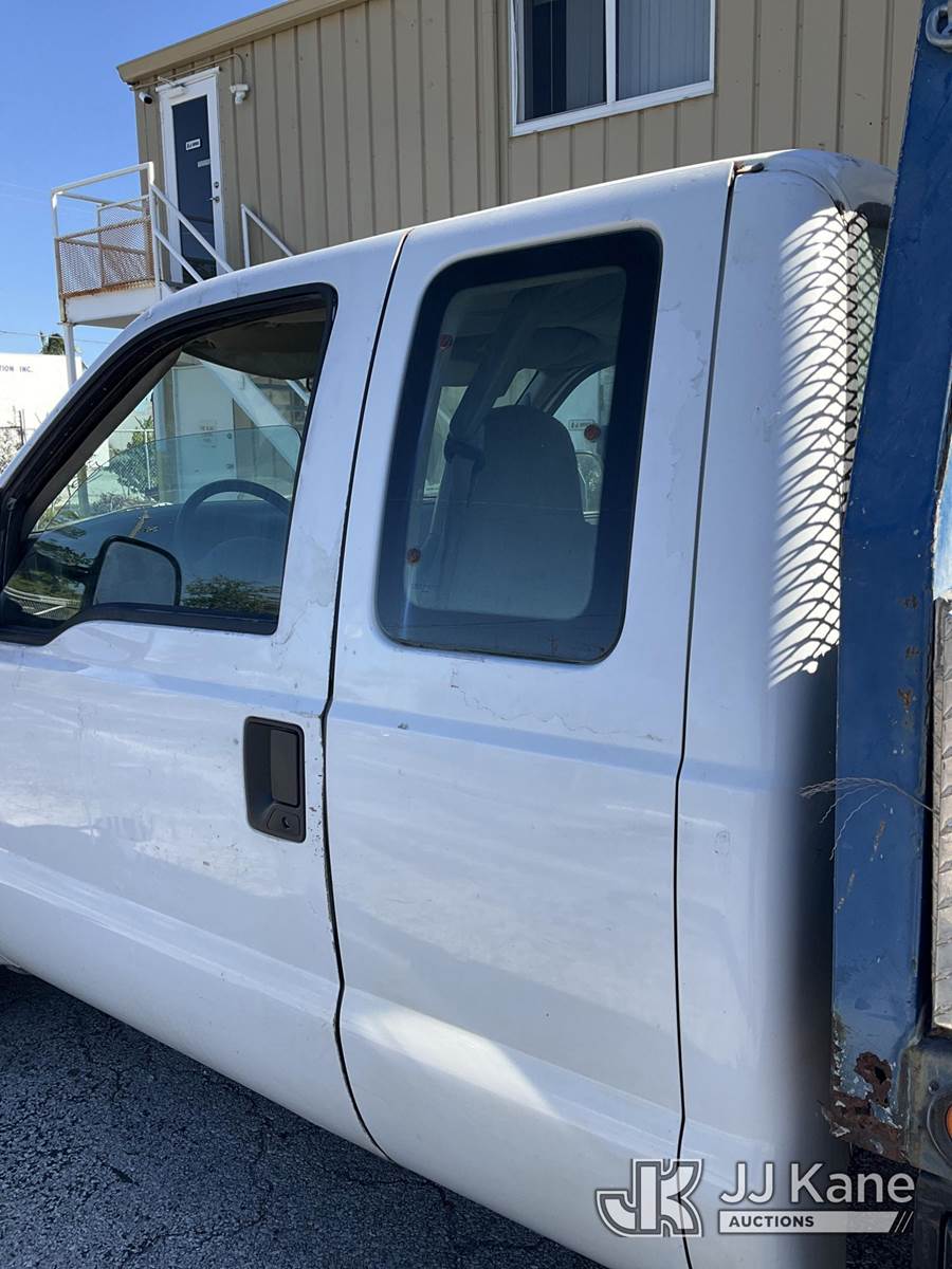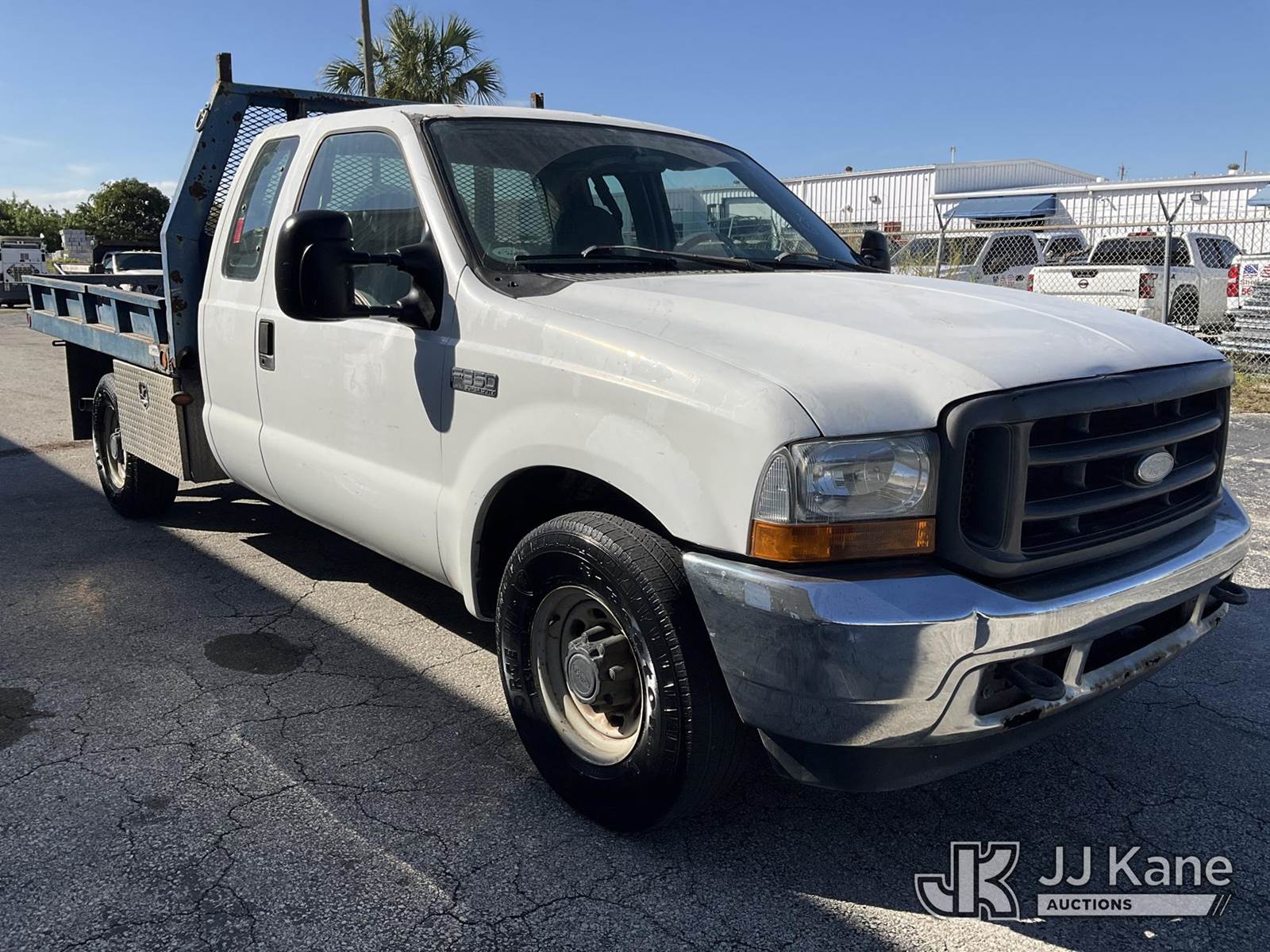 2001 Ford F-350 SD Extended-Cab Flatbed/Service Truck, 8-cyl gas, 5-spd, RWD, A/C, (Exempt from Odometer Disclosure - Reads 257,594 miles) (Runs & Moves) (Body Damage & Rust, Paint & Interior Damage, Driver Side Rear Door Does Not Open) (FL Residents Purchasing Titled Items - tax, title & registration fees will be collected at the maximum rate of $400.00 under 25,999 and $800.00 for Over 26,000 and $250.00 trailers - Proof of insurance is mandatory; Out of State Residents Purchasing Title Items - tax will be collected based upon your state rate.) This is a Titled Item NOTE: This unit is being sold AS IS/WHERE IS via Timed Auction and is located in West Palm Beach, FL. For Pick Up & Removal information, please contact: Andy Garcia @ 561-215-0085. Removals require 24-hr Notice by Appointment Only, Buyer/Hauler must present copy of Paid-in-Full JJ Kane Release Form upon arrival. Purchaser acknowledges ALL lots must be removed within 10 business days of Auction, or a towing & storage fee may be incurred. (Buyer is responsible for removal. Assistance by consignor or JJ Kane Auctioneers is not assured.)
