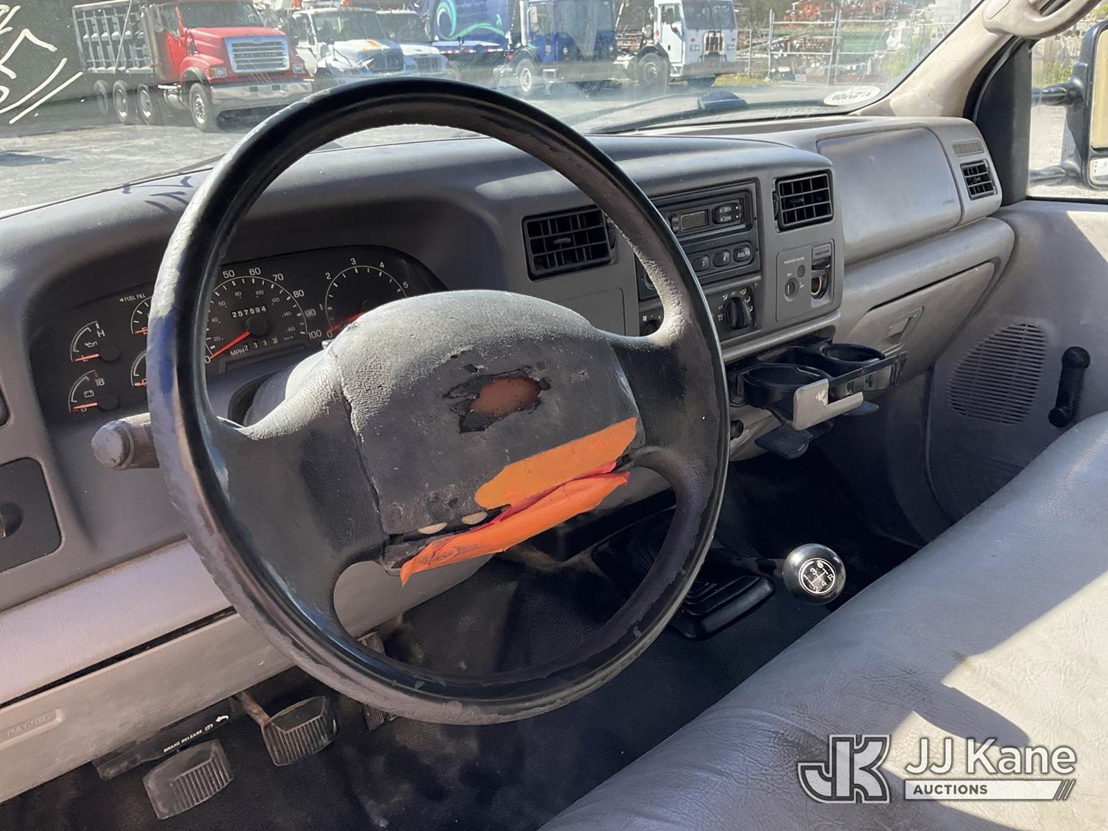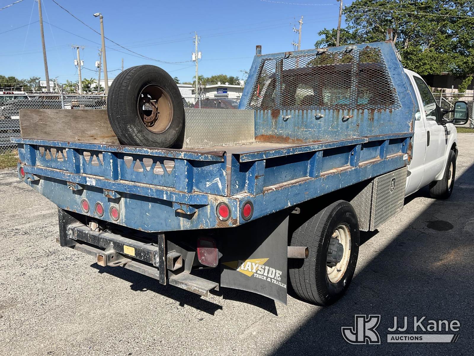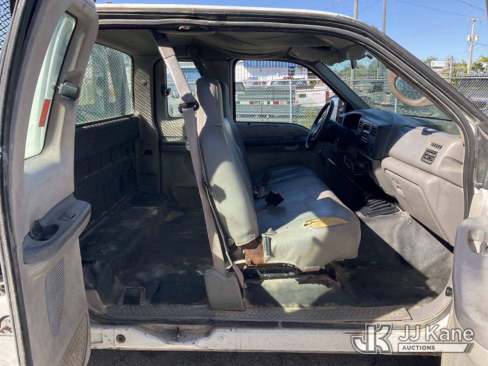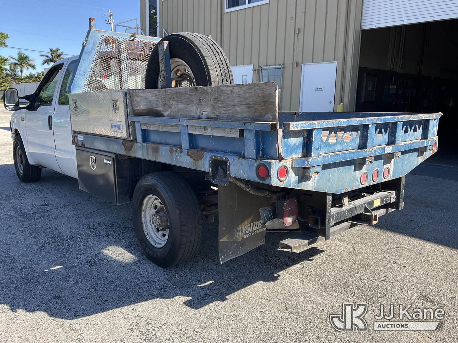 2001 Ford F-350 SD Extended-Cab Flatbed/Service Truck, 8-cyl gas, 5-spd, RWD, A/C, (Exempt from Odometer Disclosure - Reads 257,594 miles) (Runs & Moves) (Body Damage & Rust, Paint & Interior Damage, Driver Side Rear Door Does Not Open) (FL Residents Purchasing Titled Items - tax, title & registration fees will be collected at the maximum rate of $400.00 under 25,999 and $800.00 for Over 26,000 and $250.00 trailers - Proof of insurance is mandatory; Out of State Residents Purchasing Title Items - tax will be collected based upon your state rate.) This is a Titled Item NOTE: This unit is being sold AS IS/WHERE IS via Timed Auction and is located in West Palm Beach, FL. For Pick Up & Removal information, please contact: Andy Garcia @ 561-215-0085. Removals require 24-hr Notice by Appointment Only, Buyer/Hauler must present copy of Paid-in-Full JJ Kane Release Form upon arrival. Purchaser acknowledges ALL lots must be removed within 10 business days of Auction, or a towing & storage fee may be incurred. (Buyer is responsible for removal. Assistance by consignor or JJ Kane Auctioneers is not assured.)