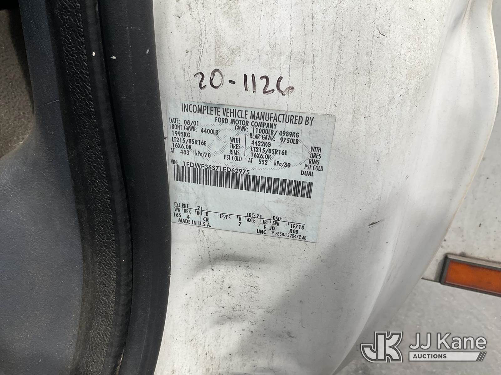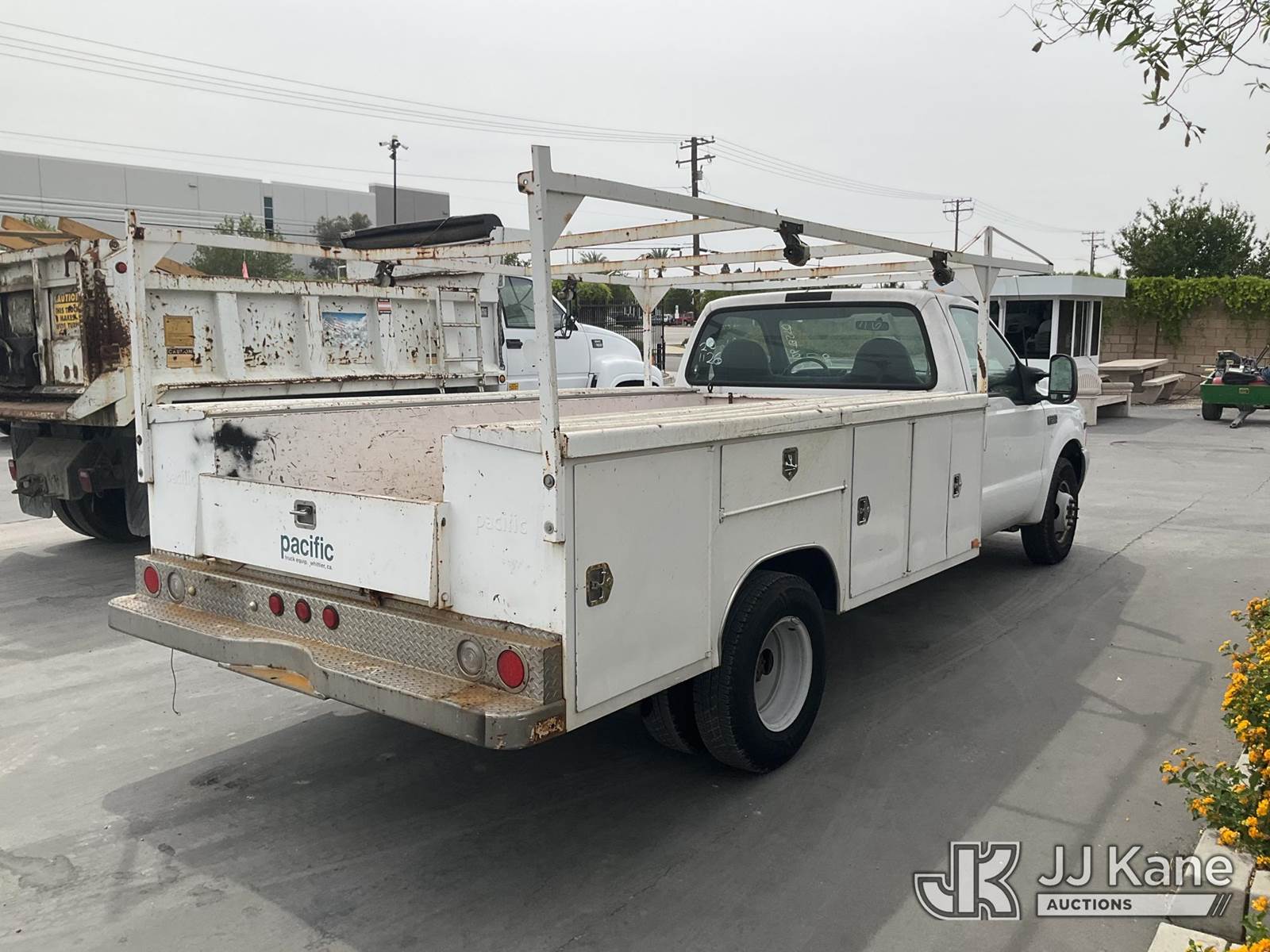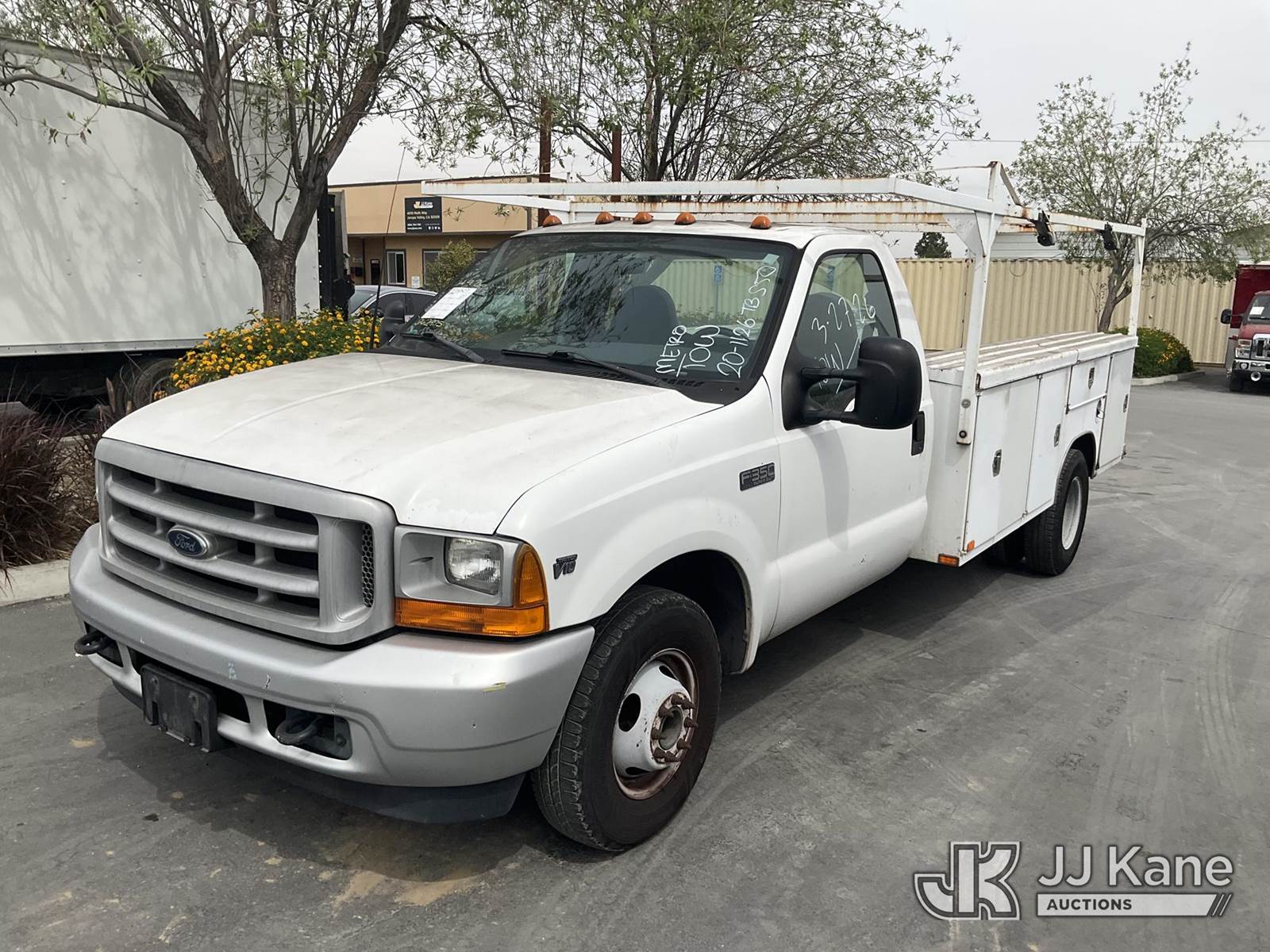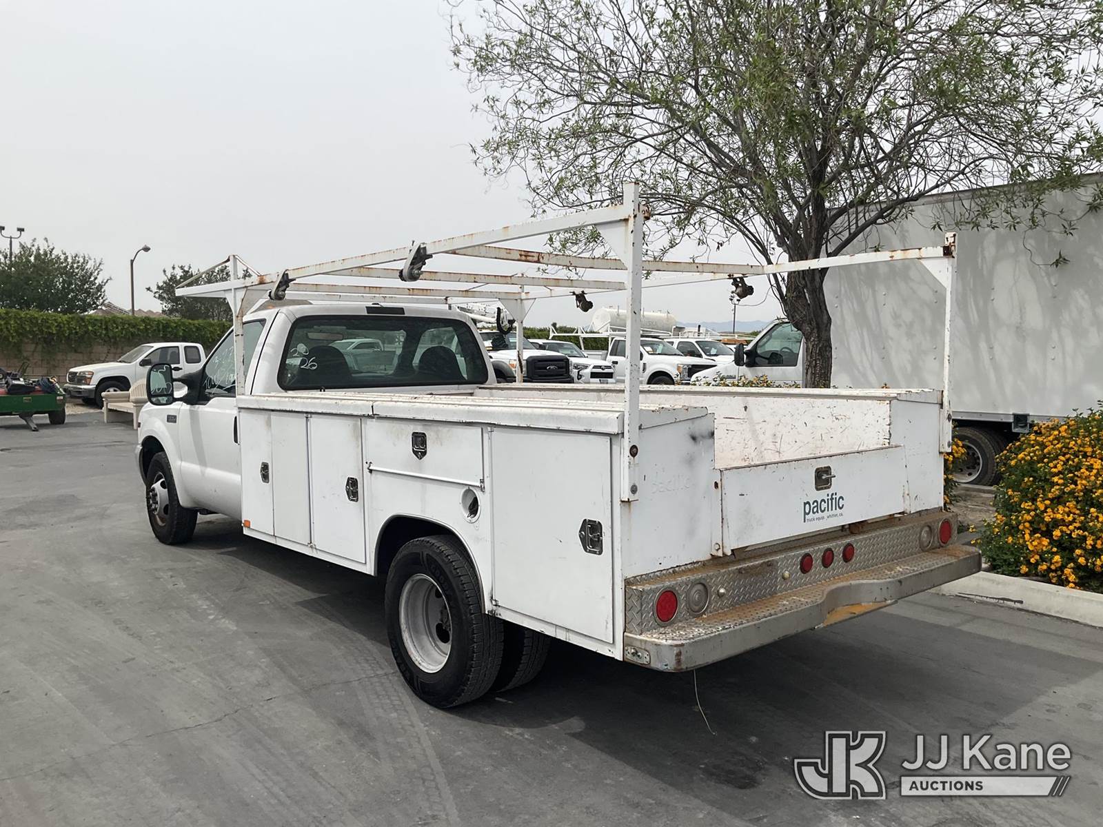 2001 Ford F-350 SD Service Truck, 10-cyl gas, Auto, A/C, with Ladder Rack, (Exempt from Odometer Disclosure - Reads 58,648 miles) (Runs & Moves) This is a Titled Item NOTE: This unit is being sold AS IS/WHERE IS via Timed Auction and is located in Jurupa Valley, CA. Inspection & preview days for this unit are the 2 business days prior to the first day of items closing for this auction, item is located at 4510 Muth Way Jurupa Valley, CA 92509 and hours of operations are 8a-4p. For pre-sale questions, please contact please contact Office Staff @ (310) 353-7140. Dealer License Number 45696. (Buyer is responsible for removal. Assistance by consignor or JJ Kane Auctions is not assured.)