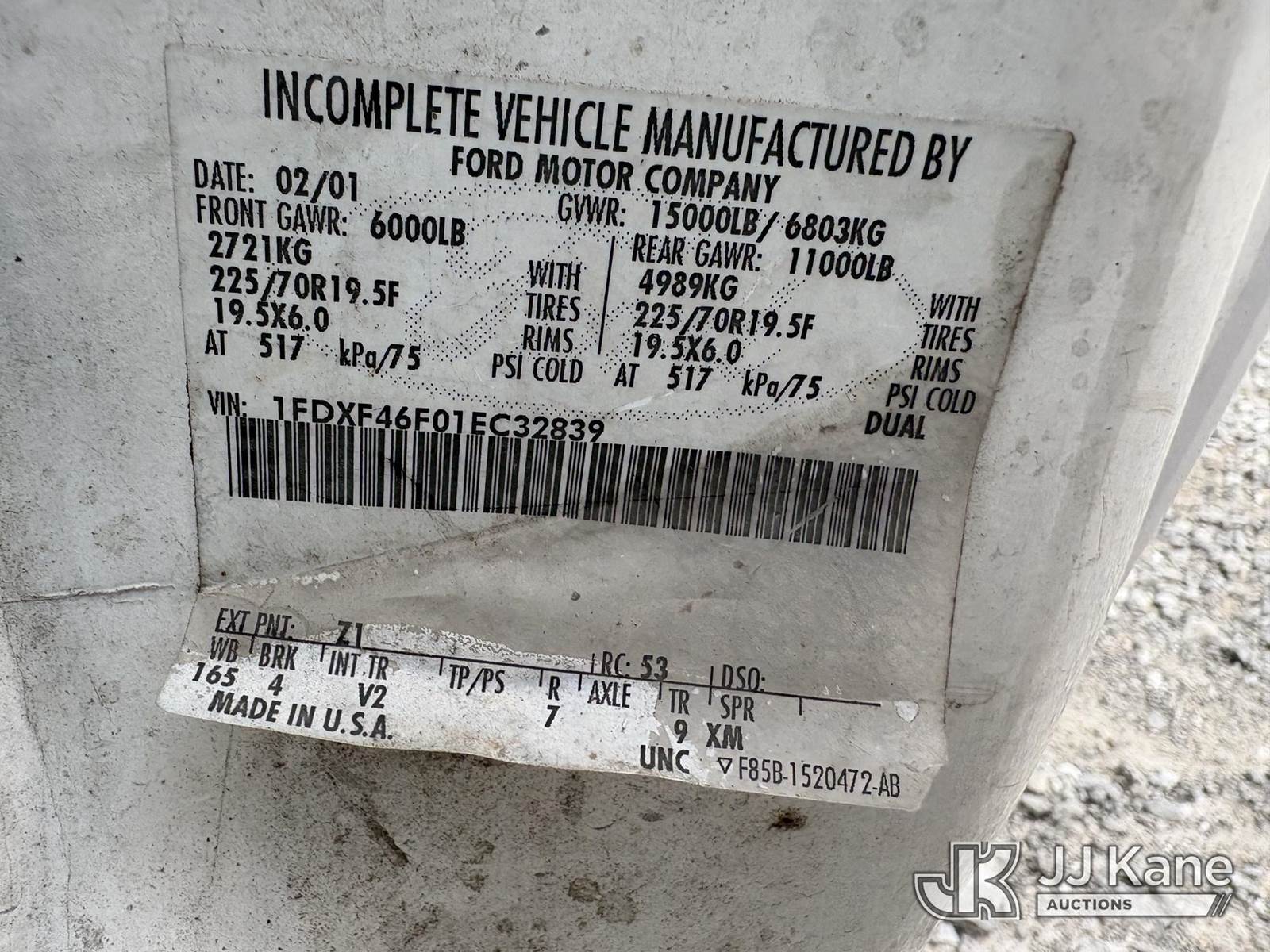 2001 Ford F-450 SD Dump Truck, s/n 1FDXF46F01EC32839, 7.3L Turbo Diesel Auto, A/C, (Exempt from Odometer Disclosure - Reads 128,028 miles) (Runs & Moves) (Starts With Jump, Operates, Paint & Body Damage, Rust Damage) This is a Titled Item NOTE: This unit is being sold AS IS/WHERE IS via Timed Auction and is located in Hawk Point, MO. Inspection & preview days for this unit are the 2 business days prior to the first day of items closing for this auction, item is located at 25 State Highway A Hawk Point, MO 63349 and hours of operations are 8a-4p. For pre-sale questions, please contact Adam Stanek at (636) 295-1594. (Buyer is responsible for removal. Assistance by consignor or JJ Kane Auctions is not assured.)