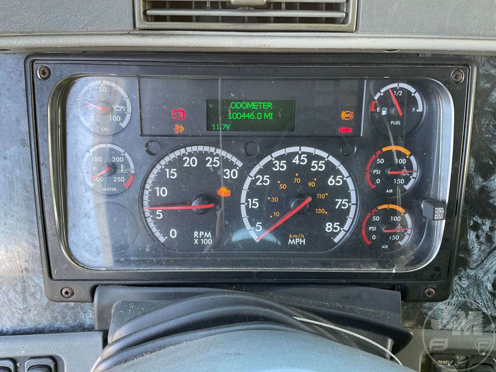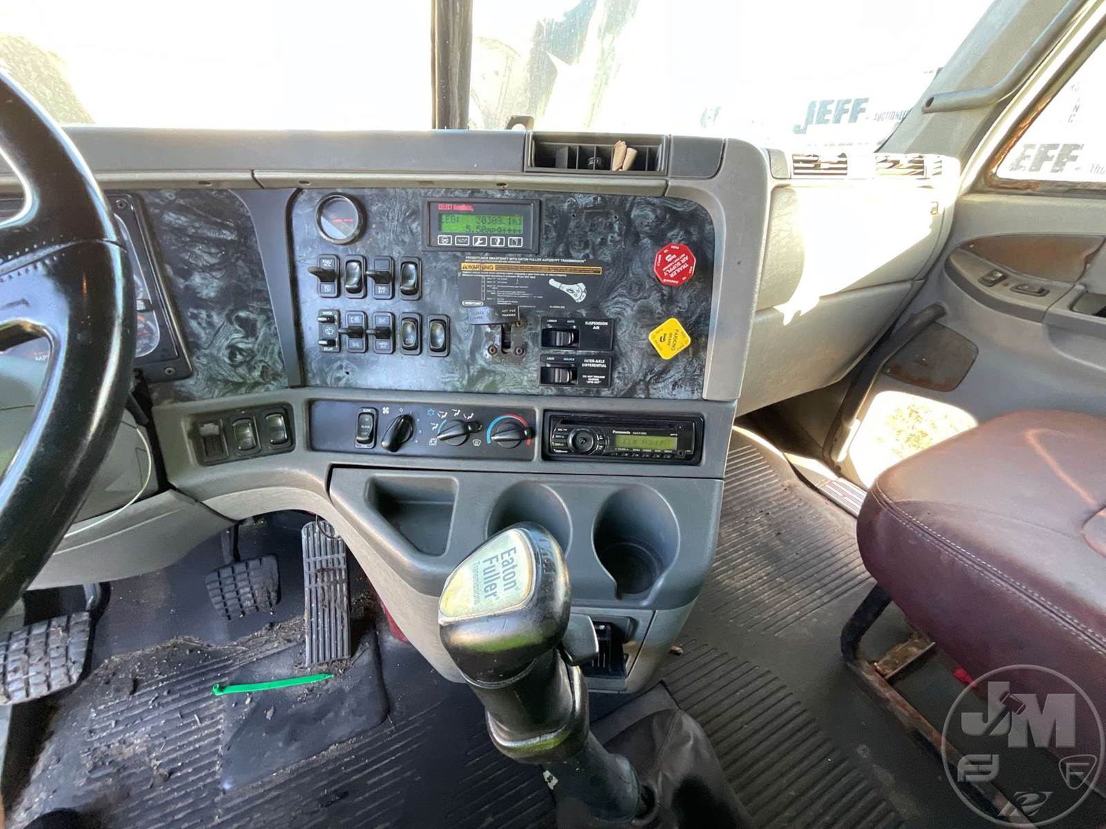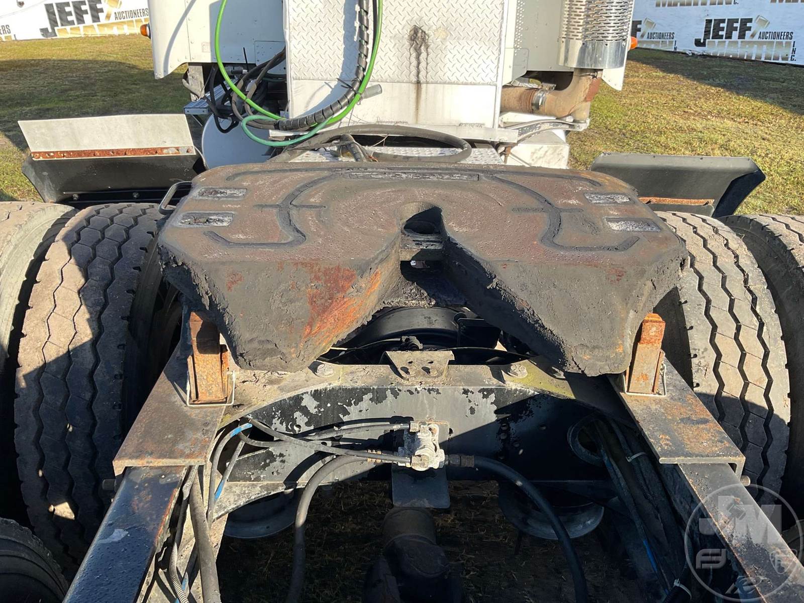 TANDEM AXLE TRUCK TRACTOR, CUMMINS, N14, EATON FULLER, AIR RIDE SUSPENSION, 212 " WB, C/A: 95", 12K FRONTS, 40K REARS, 52000 LB GVWR, A/C, POWER WINDOWS, POWER DOOR LOCKS, POWER MIRRORS, ENGINE BRAKE, DIFF LOCK, DUAL FUEL TANKS, WET KIT, AIR RIDE CAB, SLEEPER SIZE 50", STATIONARY FIFTH WHEEL, 11R22.5 TIRES, HOUR METER READS: 7069, ODOMETER READS: 100446