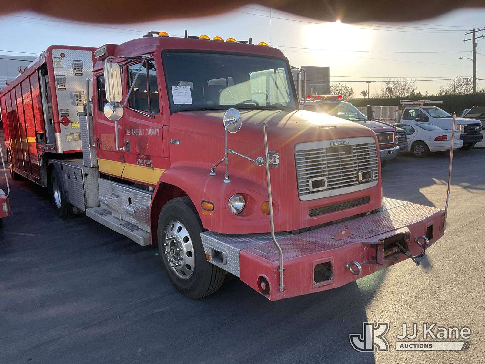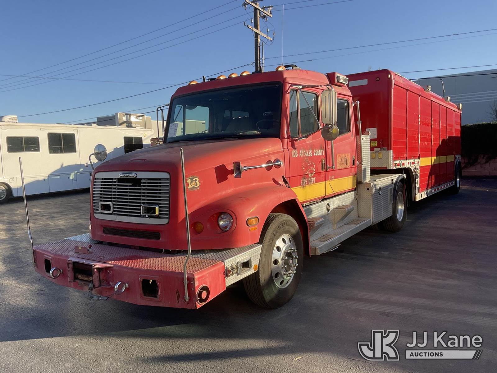 2001 Freightliner FL112 Truck Tractor, Cat C12 Diesel Auto, 4X2, A/C, with winch bumper package, (Exempt from Odometer Disclosure - Reads 279,089 miles) To Be Sold With Trailer 1574766 (Runs & Moves) (Check Engine Light On,) (Bidding Restricted to Licensed Vehicle Dealers Only), Subject to CARB Regs,CARB non Compliant,Cannot Operate on CA Roads/Highways until Compliant This is a Titled Item NOTE: This unit is being sold AS IS/WHERE IS via Timed Auction and is located in Jurupa Valley, CA. Inspection & preview days for this unit are the 2 business days prior to the first day of items closing for this auction, item is located at 4510 Muth Way Jurupa Valley, CA 92509 and hours of operations are 8a-4p. For pre-sale questions, please contact please contact Office Staff @ (310) 353-7140. Dealer License Number 45696. (Buyer is responsible for removal. Assistance by consignor or JJ Kane Auctions is not assured.)