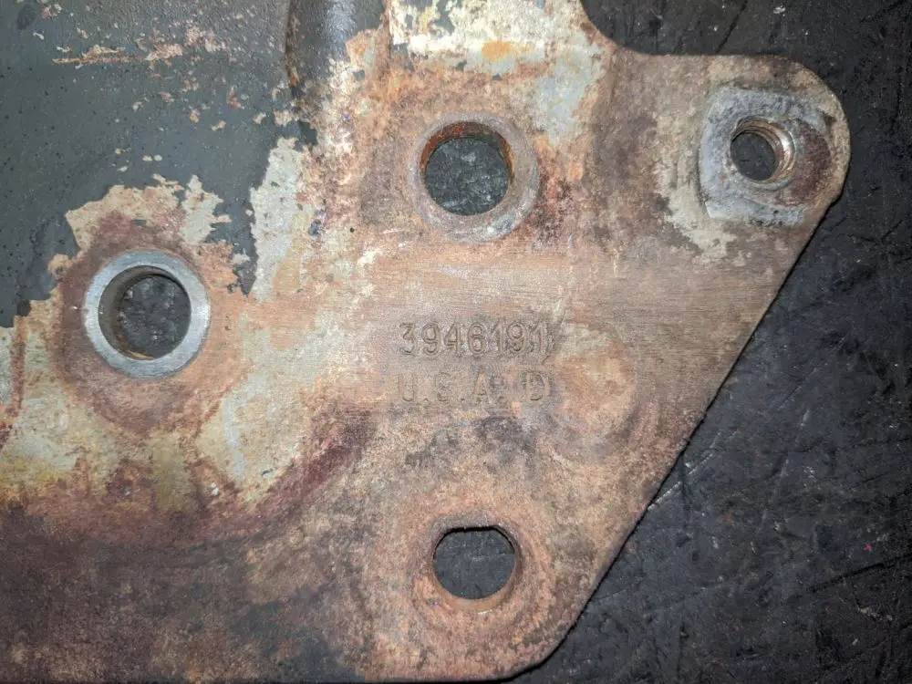 Good, used lift pump bracket from a Cummins ISB 5.9L engine. The lift pump bracket has been inspected and appears to be in good working condition. There is no visible damage to the lift pump bracket. There is minor rust seen on the lift pump bracket. The bolt holes are clear and in good condition. There is minor corrosion seen on the lift pump bracket. The casting number is 3946191. The engine serial number is 56685458. Please see the photos attached. If you have any further questions, please feel free to call or email us. We ship anywhere! Thank you!, Material: Steel