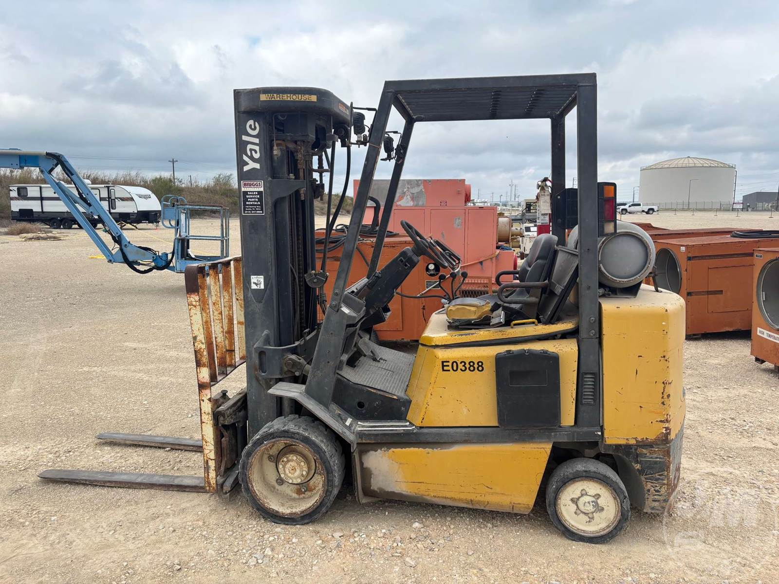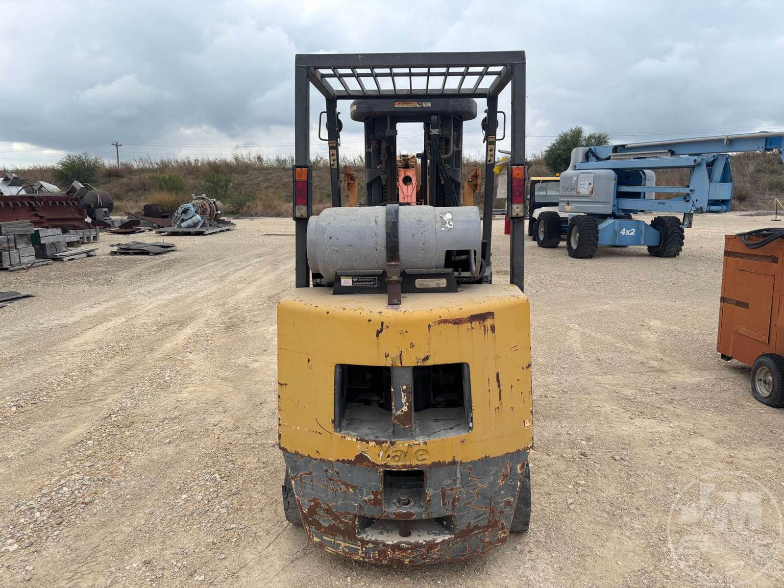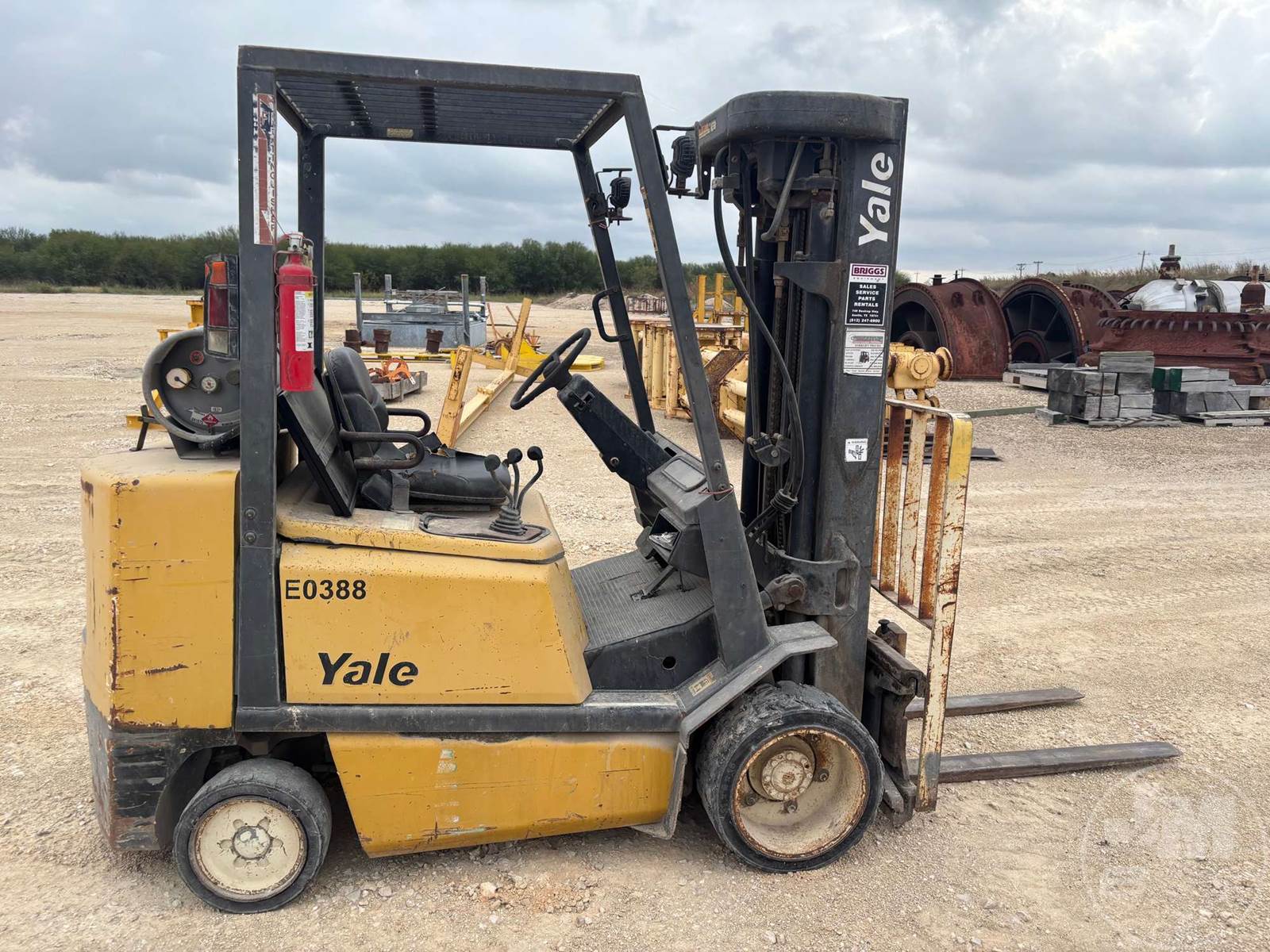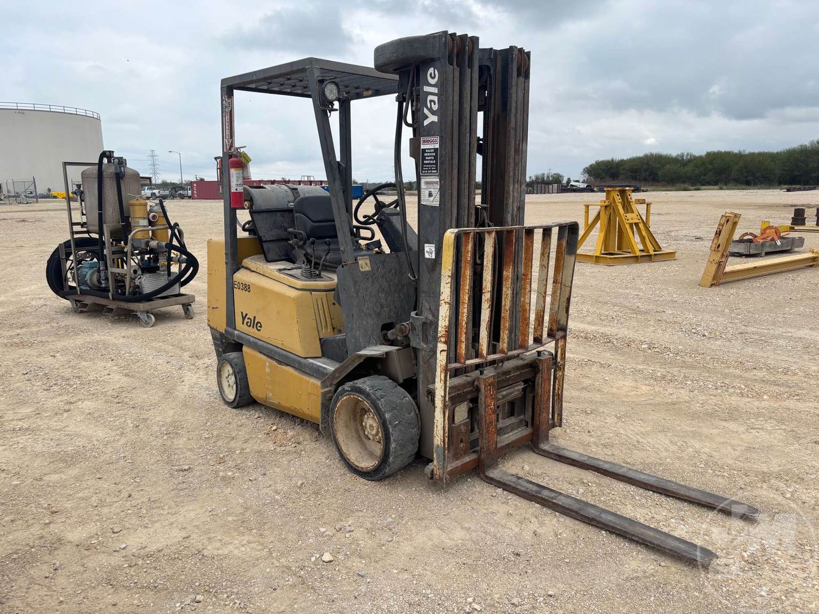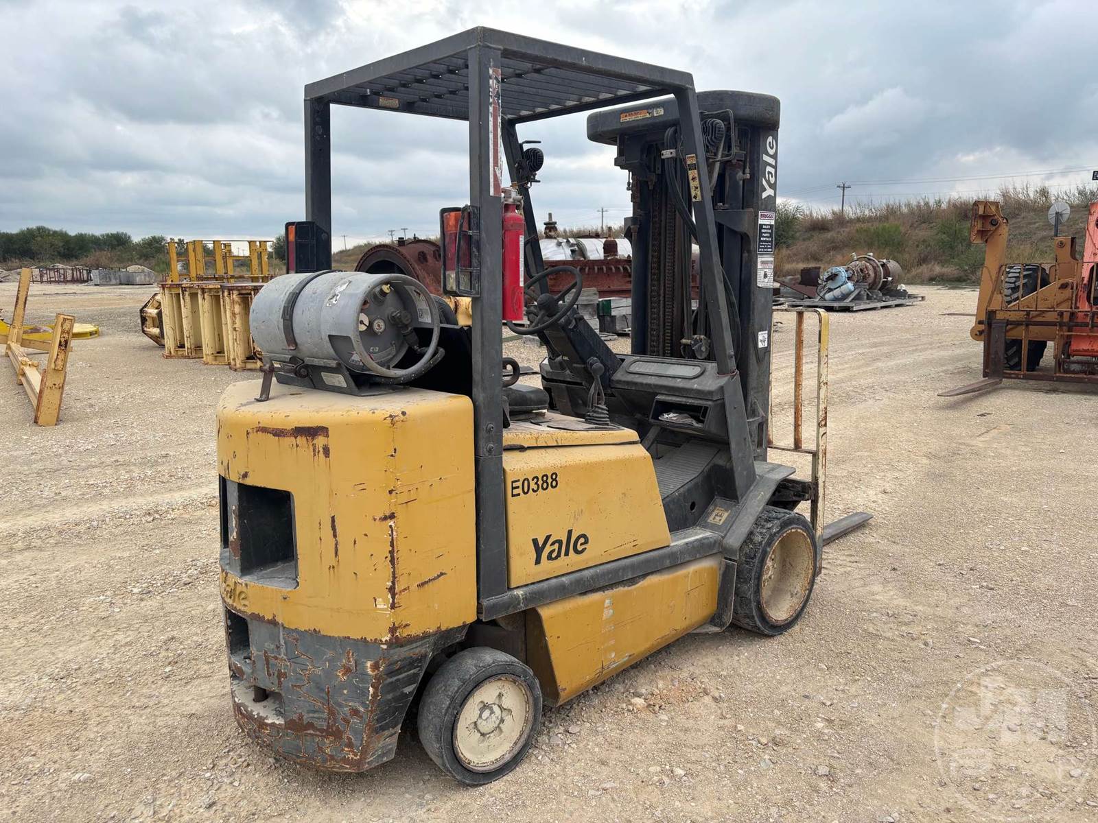 YALE 4800 LBS CUSHION TIRE FORKLIFT, LPG, CANOPY, ALL WHEEL STEER, TILT CARRIAGE, SIDE SHIFT, 3 STAGE MAST, 48" FORKS, HOUR METER READS: 3972***LOCATED IN SAN MARCOS, TX***
