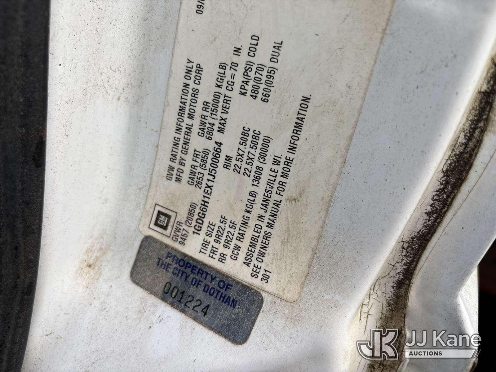 2001 GMC C5500 Flatbed Truck, 8.1L V8 OHV 16V gas, Auto, (Exempt from Odometer Disclosure - Reads 43,664 miles) (Municipality Owned) (Runs & Moves) This is a Titled Item NOTE: This unit is being sold AS IS/WHERE IS via Timed Auction and is located in Dothan, AL. For more information & removal arrangements please contact Dylan Evans @ 205-936-1094. Removal by appointment only, Buyer/Hauler must present copy of paid invoice upon arrival. Purchaser acknowledges ALL lots must be removed within 7 business days of Auction, or a storage fee may be incurred. For Removal and Pick Up information, please reference the release form sent out after purchase. Alabama Auctioneer Michael Whitebread - License # 5592. (Buyer is responsible for removal. Assistance by consignor or JJ Kane Auctions is not assured.)