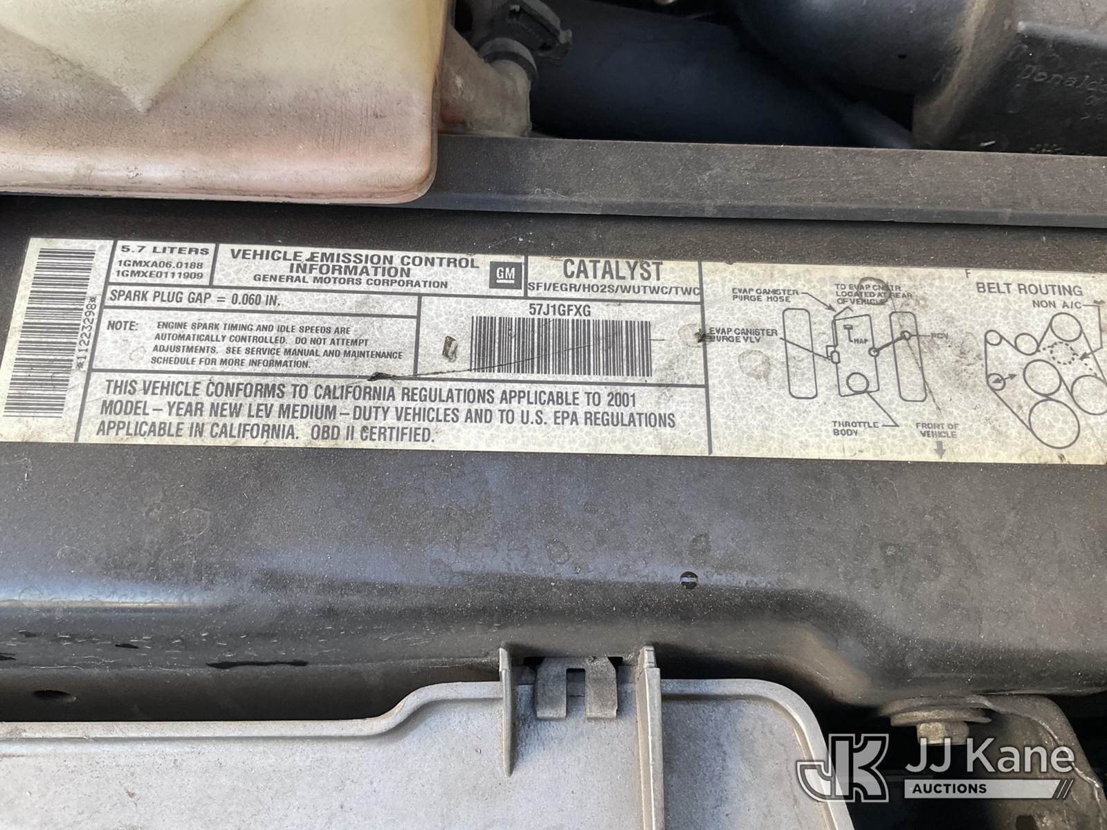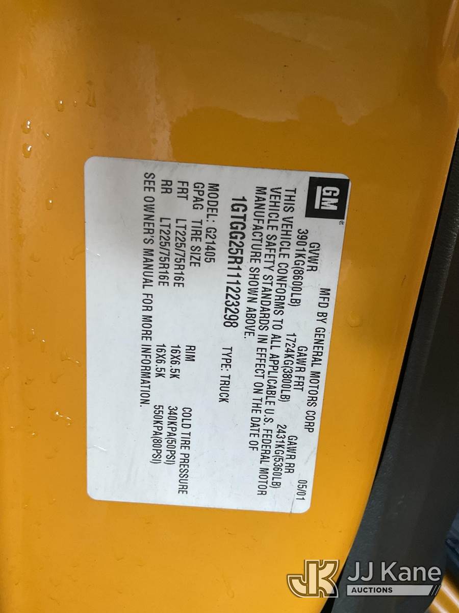 2001 GMC Savana G2500 Cargo Van, 8-cyl gas, Auto, A/C, (Exempt from Odometer Disclosure - Reads 62,441 miles) (Runs & Moves) This is a Titled Item NOTE: This unit is being sold AS IS/WHERE IS via Timed Auction and is located in Jurupa Valley, CA. Inspection & preview days for this unit are the 2 business days prior to the first day of items closing for this auction, item is located at 4510 Muth Way Jurupa Valley, CA 92509 and hours of operations are 8a-4p. For pre-sale questions, please contact please contact Office Staff @ (310) 353-7140. Dealer License Number 45696. (Buyer is responsible for removal. Assistance by consignor or JJ Kane Auctions is not assured.)