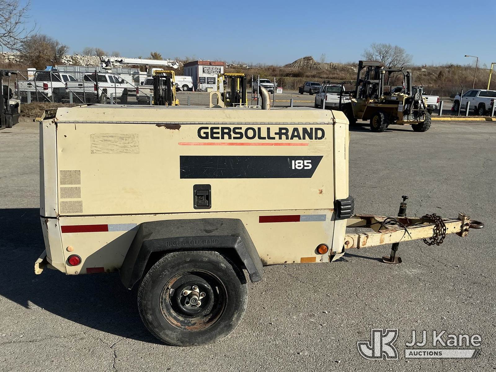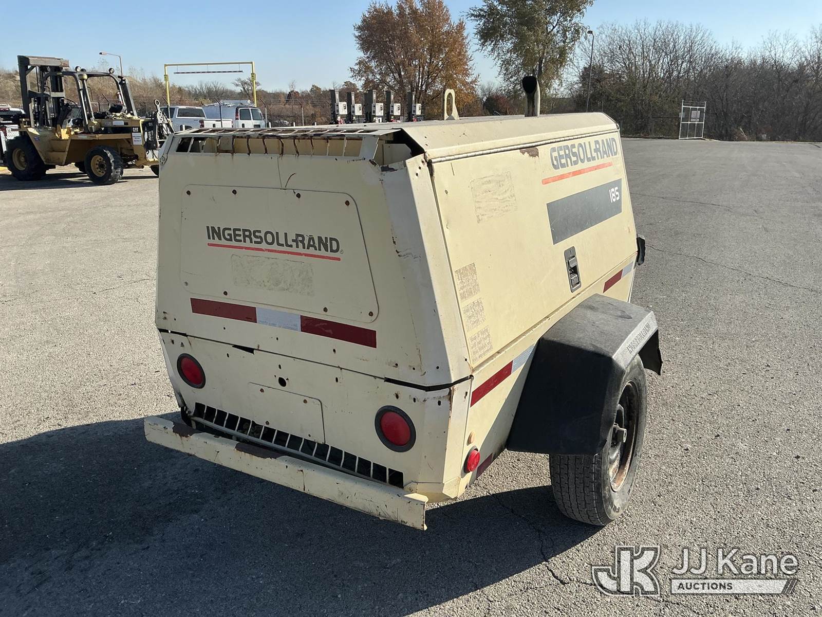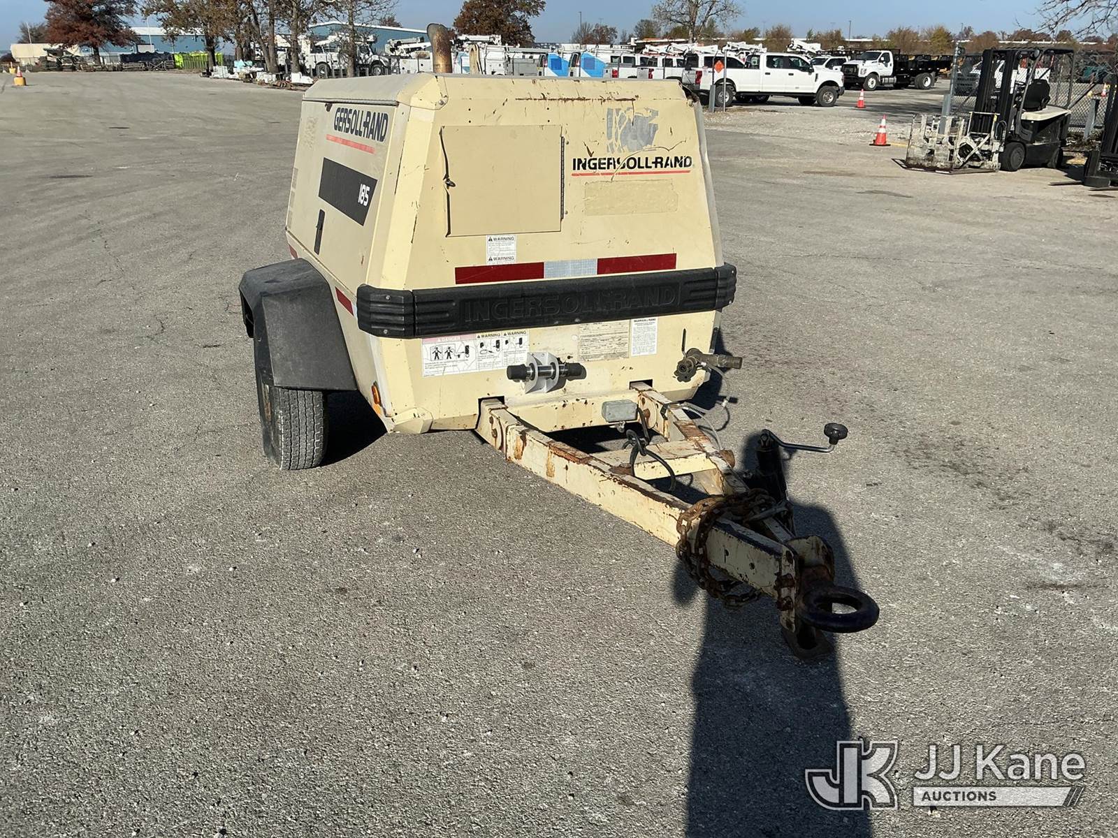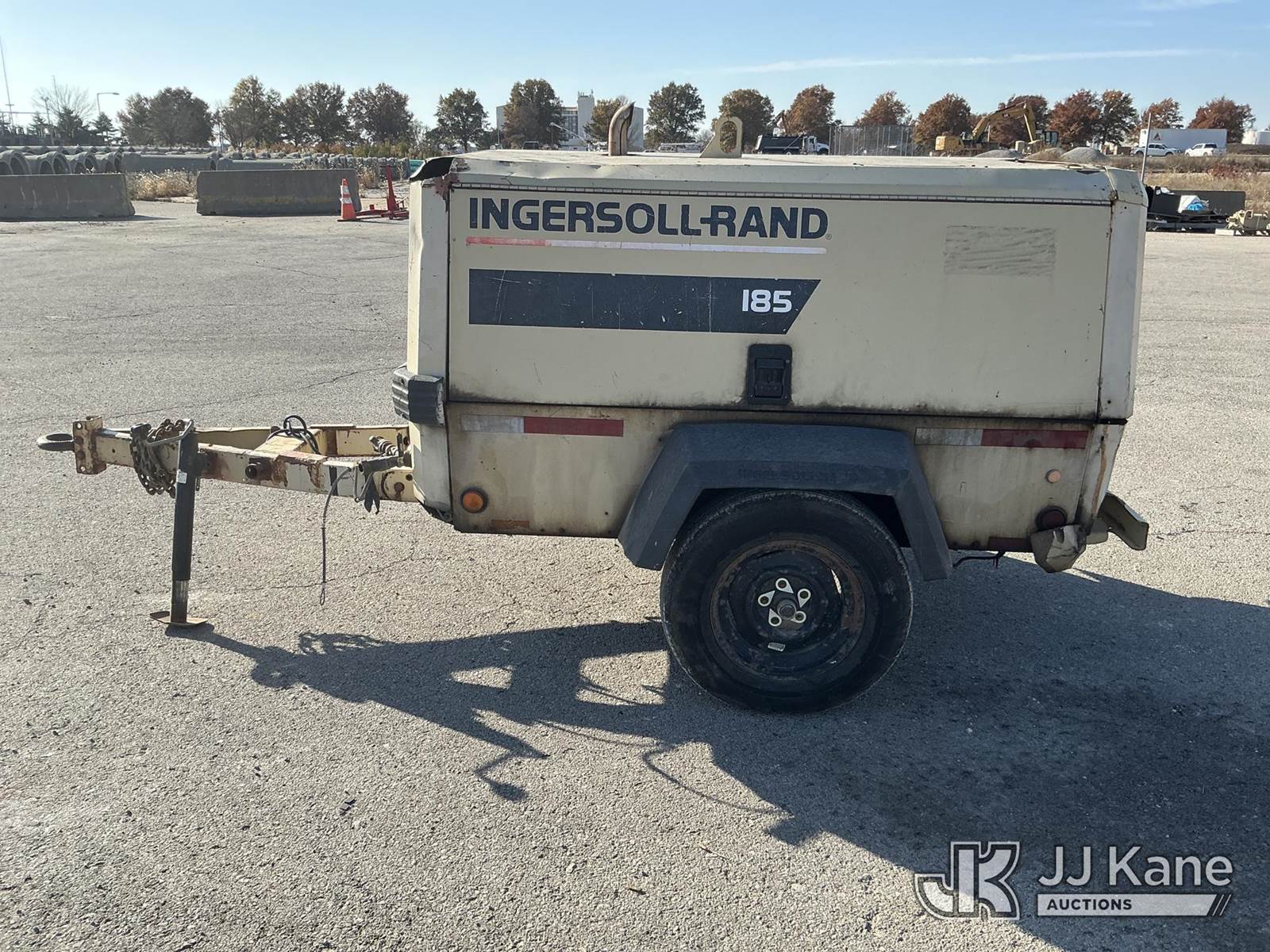 2001 Ingersoll Rand 185 John Deere diesel, with Trailer Mounted, 2 Jack Hammers, (Runs, Builds Air) (Jump To Start, Missing Fuel Cap, Paint & Body Damage) (Reads 558 hours) This is a Titled Item NOTE: This unit is being sold AS IS/WHERE IS via Timed Auction and is located in Kansas City, MO. Inspection & preview days for this unit are the 2 business days prior to the first day of items closing for this auction, item is located at 962 Tel Aviv Ave Kansas City, MO 64153 and hours of operations are 8a-4p. For pre-sale questions or to schedule an inspection, please contact Ricky McPherson @ 816-610-2250. (Buyer is responsible for removal. Assistance by consignor or JJ Kane Auctioneers is not assured.)