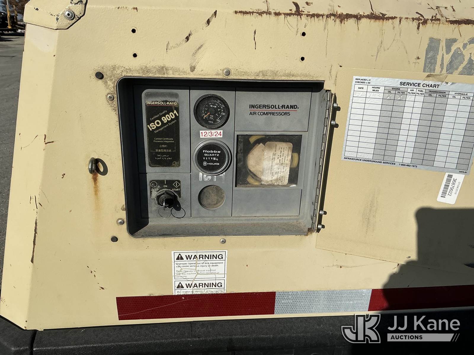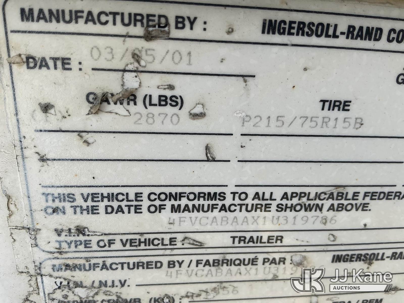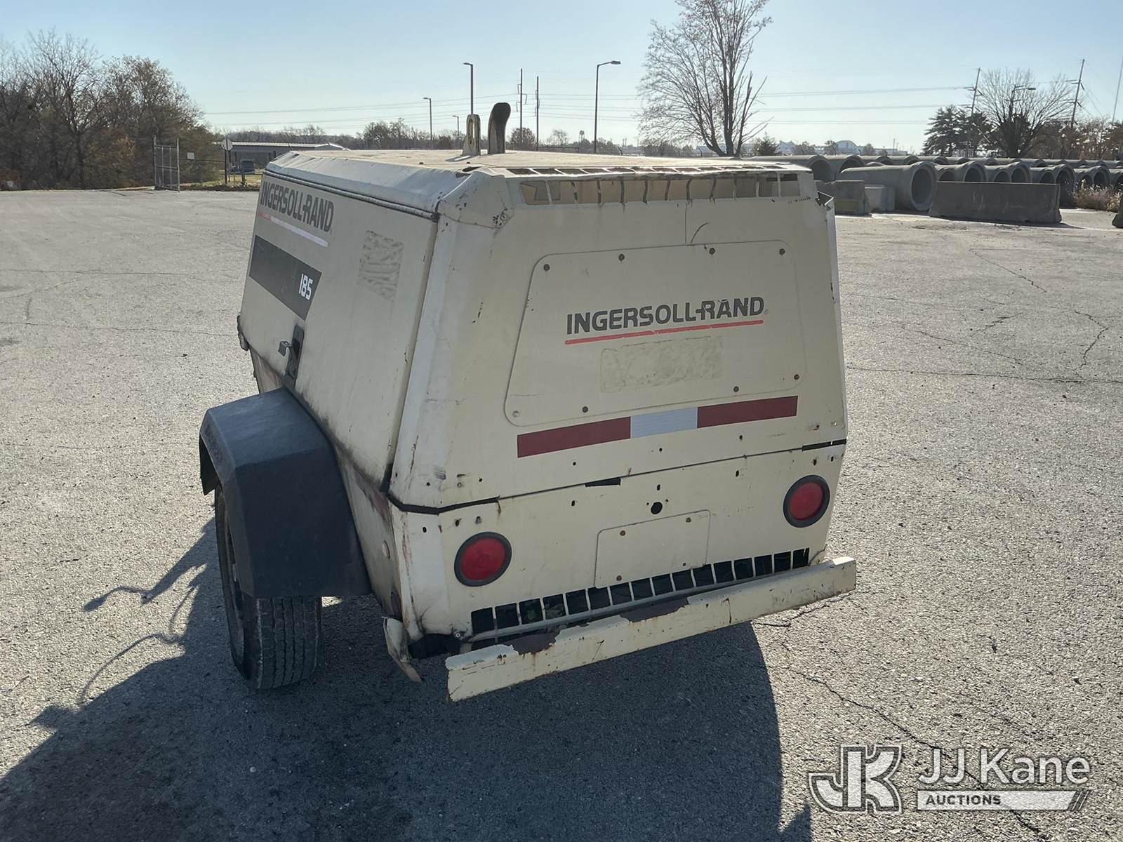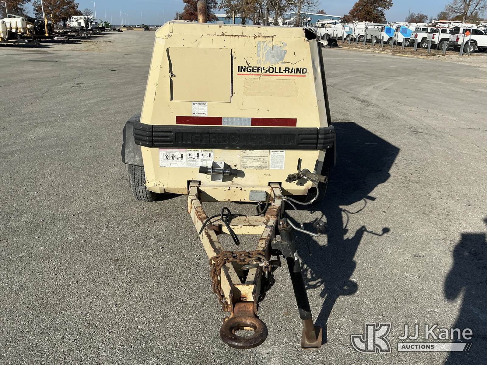 2001 Ingersoll Rand 185 John Deere diesel, with Trailer Mounted, 2 Jack Hammers, (Runs, Builds Air) (Jump To Start, Missing Fuel Cap, Paint & Body Damage) (Reads 558 hours) This is a Titled Item NOTE: This unit is being sold AS IS/WHERE IS via Timed Auction and is located in Kansas City, MO. Inspection & preview days for this unit are the 2 business days prior to the first day of items closing for this auction, item is located at 962 Tel Aviv Ave Kansas City, MO 64153 and hours of operations are 8a-4p. For pre-sale questions or to schedule an inspection, please contact Ricky McPherson @ 816-610-2250. (Buyer is responsible for removal. Assistance by consignor or JJ Kane Auctioneers is not assured.)
