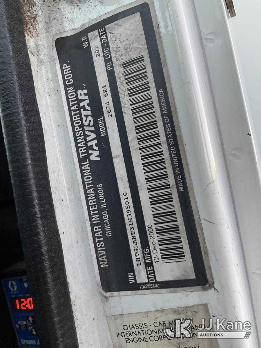 2001 International 2674 Water Tank Truck, 10.8L Auto, 6X4, diesel, A/C, with 4000 gal water tank & sprayers, (Exempt from Odometer Disclosure - Reads 92,822 miles) (Runs & Moves) (Reads 9,004 hours) This is a Titled Item NOTE: This unit is being sold AS IS/WHERE IS via Timed Auction and is located in Las Vegas, NV. Inspection & preview days for this unit are the 2 business days prior to the first day of items closing for this auction, item is located at 14655 Grand Valley Pkwy Las Vegas, NV 89165 and hours of operations are 8a-4p. Titles executed exactly as bidder registered. Ensure your name and/or business name and address in JJ Kane and/or ProxiBid is correct before bidding. For pre-sale questions, please contact Office Staff @ (801) 519-0123 and provide sale date and lot number. Las Vegas Dealer License Number DLR000053086 / OHV000053094. (Buyer is responsible for removal. Assistance by consignor or JJ Kane Auctioneers is not assured.)