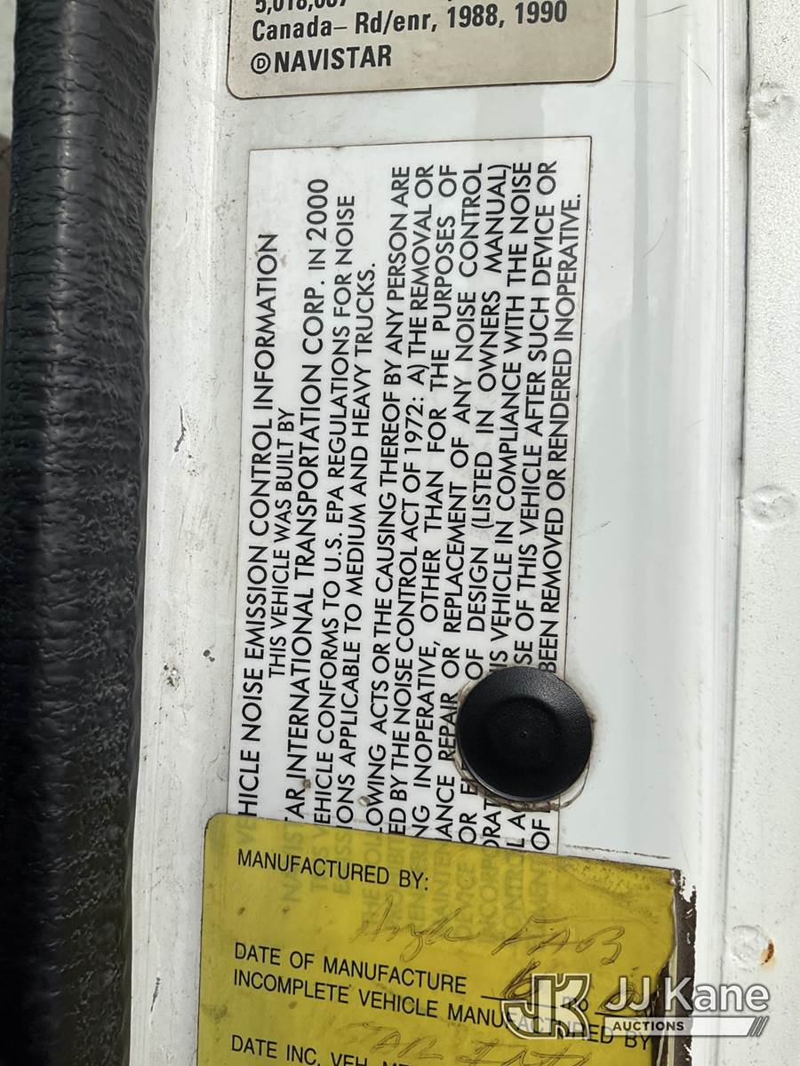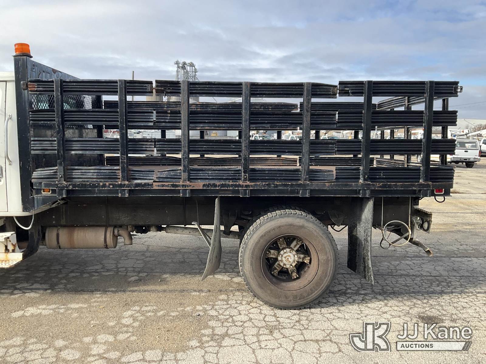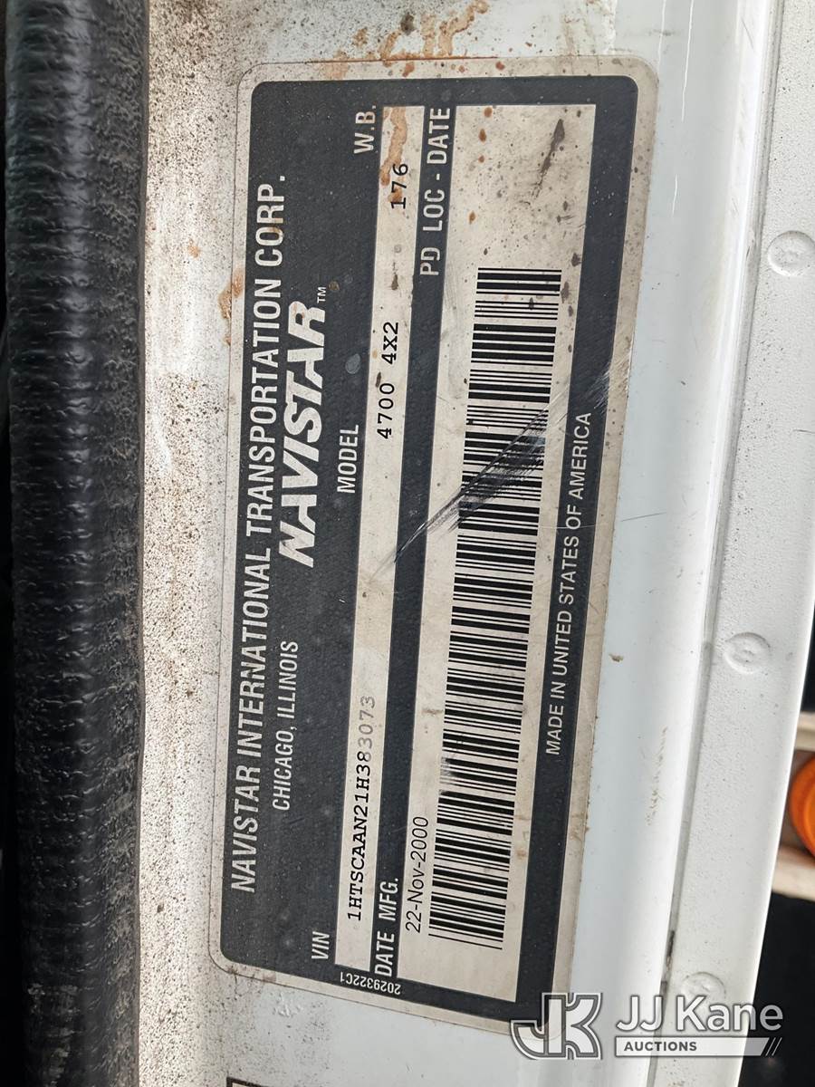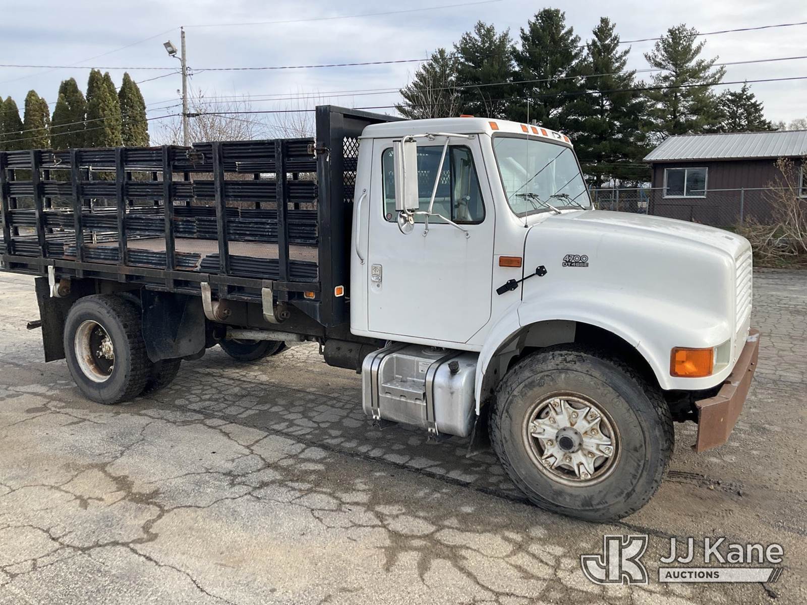 2001 International 4700 Flatbed Truck, 7.6L Auto, 4X2, diesel, with 14ft stakebed, (Exempt from Odometer Disclosure - Reads 68,836 miles) (Runs & Moves) This is a Titled Item NOTE: This unit is being sold AS IS/WHERE IS via Timed Auction and is located in South Beloit, IL. For specific technical information or questions about this item, contact Derek Eklund at (608) 904-0618 or (derek.eklund@jjkane.com). For load-out and pick information, reference the hauler sheet sent out after purchase. These items are used and may contain defects that are not immediately detectable. Text descriptions and photos given are meant to be used as a guide only. The conditions are provided by the consignor. The Buyer is responsible for inspecting the item before bidding. All information provided is believed to be correct but no warranty as such is either intended or implied. All items are sold AS IS - WHERE IS AND WITH ALL FAULTS AND DEFECTS THEREIN. (Buyer is responsible for removal. Assistance by consignor or JJ Kane Auctioneers is not assured.)