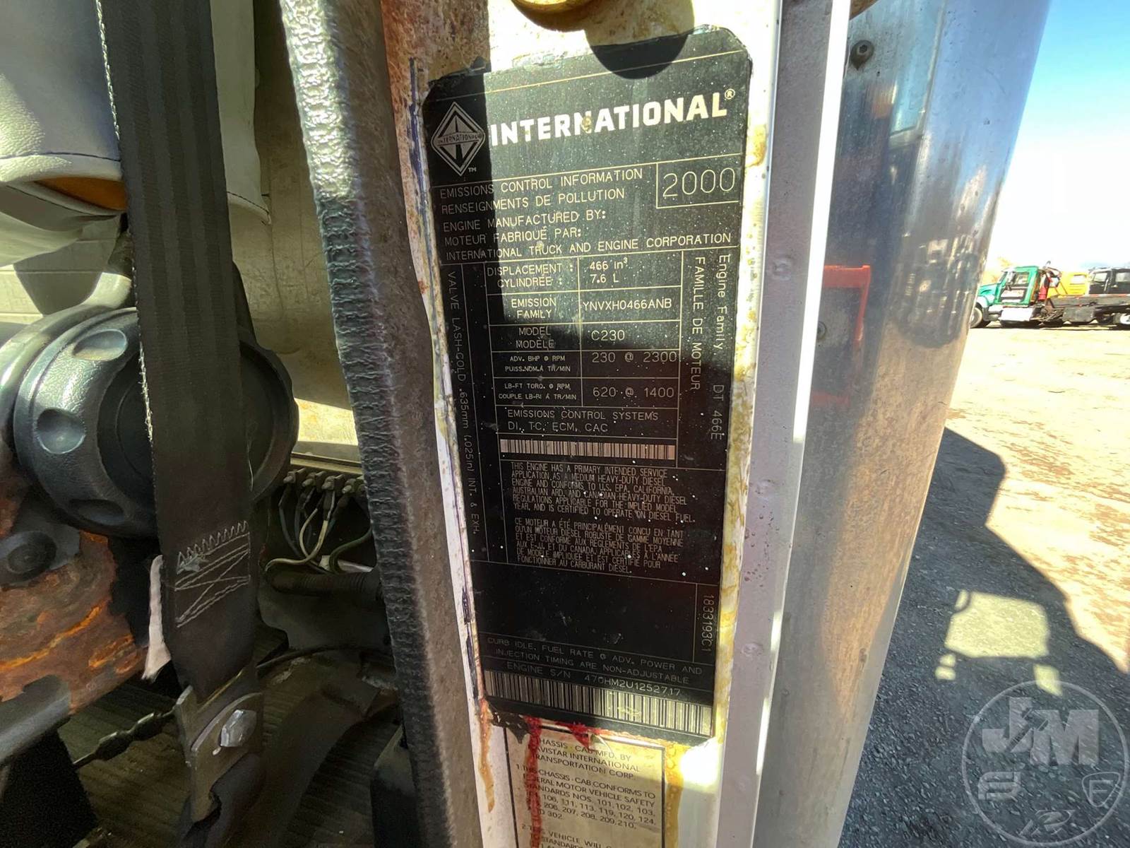 S/A UTILITY TRUCK, INTERNATIONAL, DT466E, 7.6L, 230 HP, AUTOMATIC, 2X2, SPRING SUSPENSION, 178 " WB, 12K FRONTS, 21K REAK, 14,969 GVWR, 15', UTILITY BODY, 255/70R22.5 TIRES, ODOMETER READS: 470346