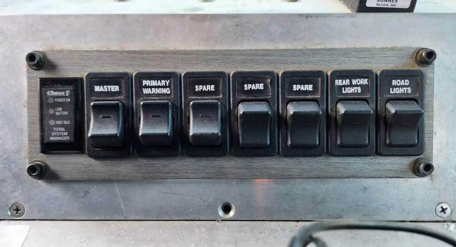 (Used) 2001 International 4900, MISCELLANEOUS DASH SWITCHES- Controls: Master, Primary Warning, Spare, Rear Work Lights, Road Lights, Material: Plastic, Reference images for condition, For more information about this item, give us a call. We ship Worldwide! (CRG HEAVY TRUCK PARTS) 929 W PULASKI HWY ELKTON, MD 21921, Material: Plastic