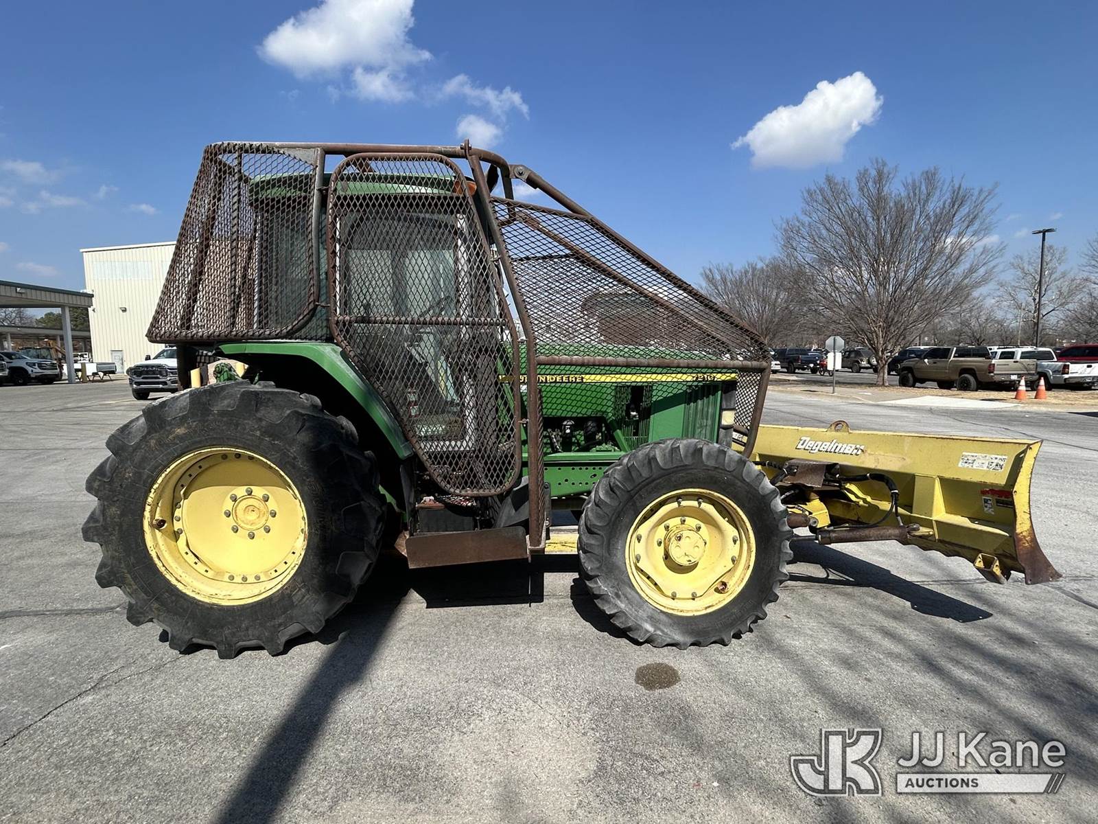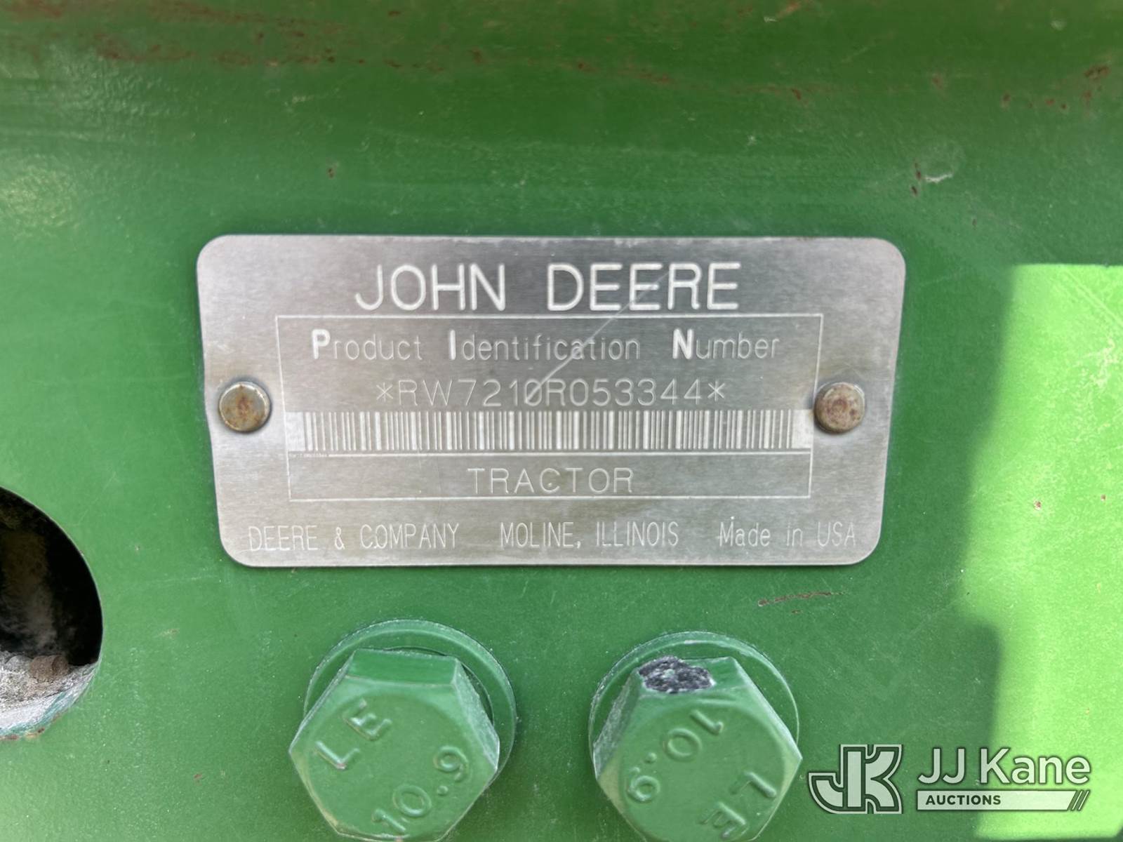 2001 John Deere 7210 Utility Tractor, s/n RW7210R053344, J.D. diesel, 16-spd, A/C, with Degelman front plow., Arkansas Cooperative owned and operated. (Runs, Moves & Operates.) (Reads 3,035 hours) NOTE: This unit is being sold AS IS/WHERE IS via Timed Auction and is located in Fayetteville, AR. (Buyer is responsible for removal. Assistance by consignor or JJ Kane Auctions is not assured.)