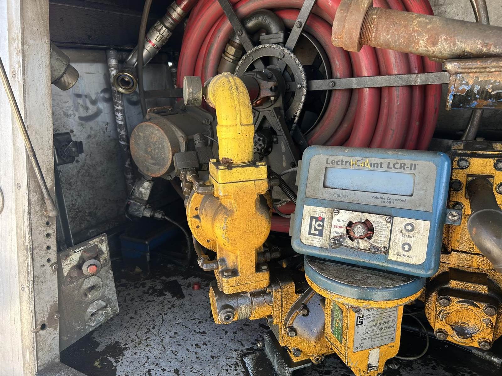 nice older truck, runs great, meter and pump, 4 compartment tank 1500 x 2/ 600 x 2, differential lock, air seat,,