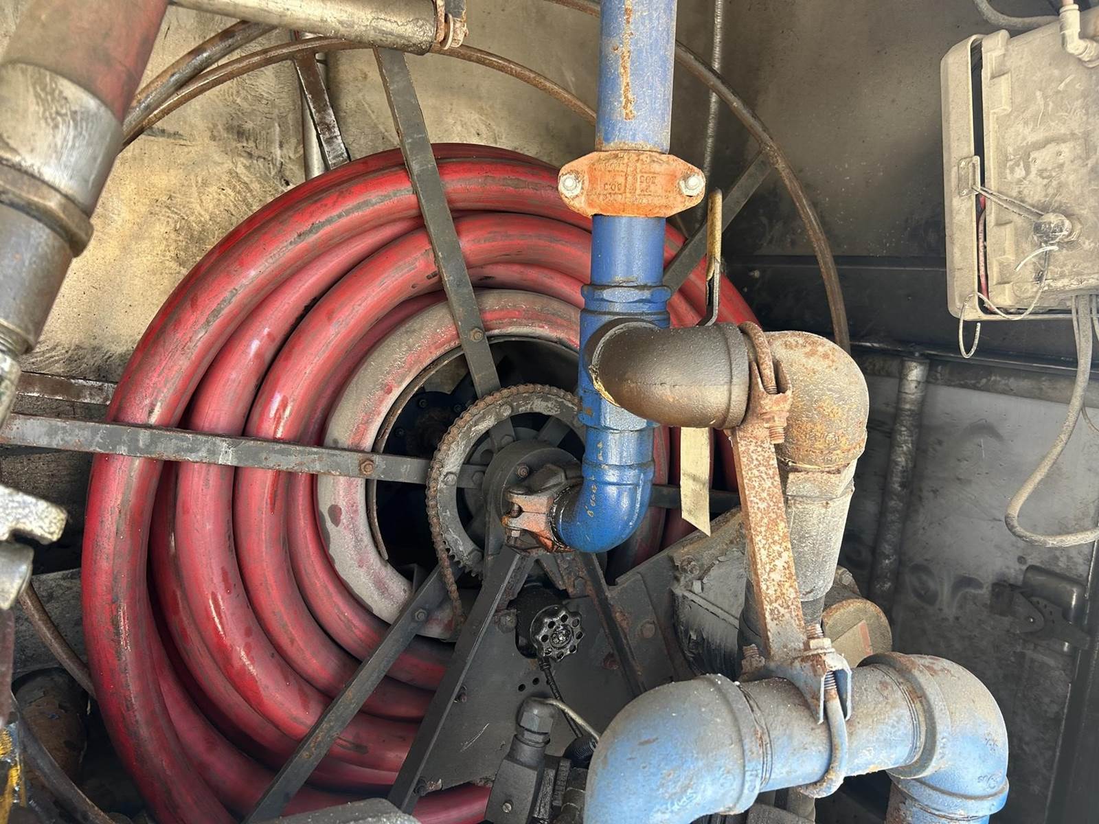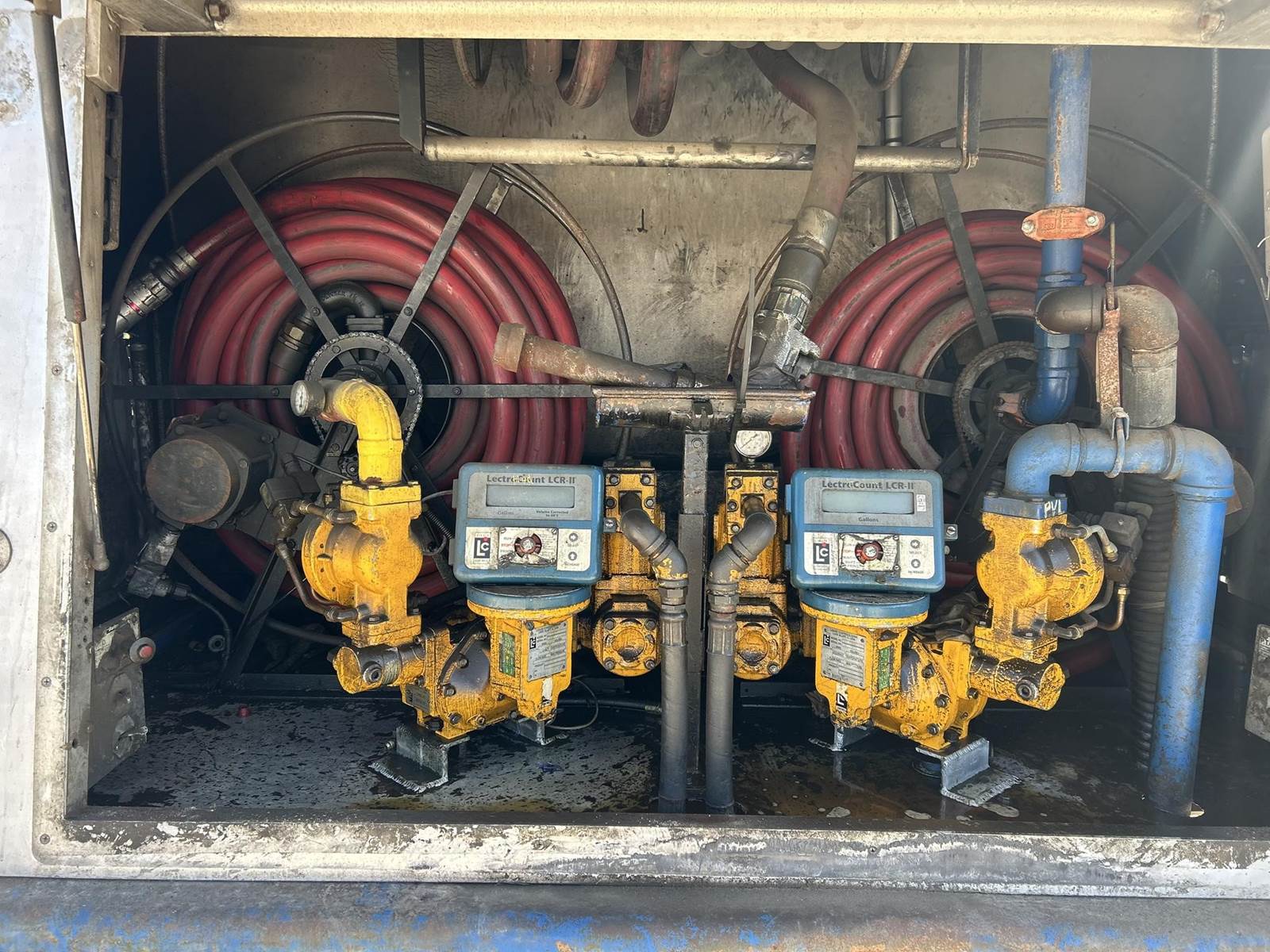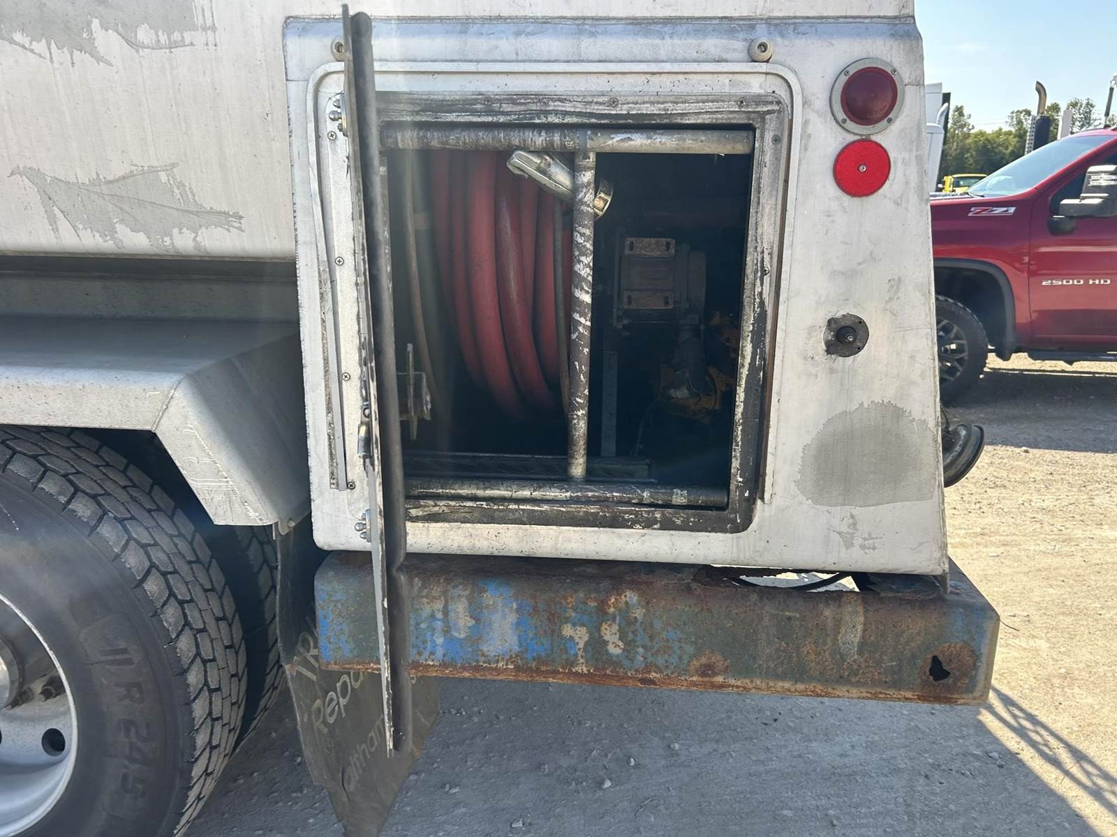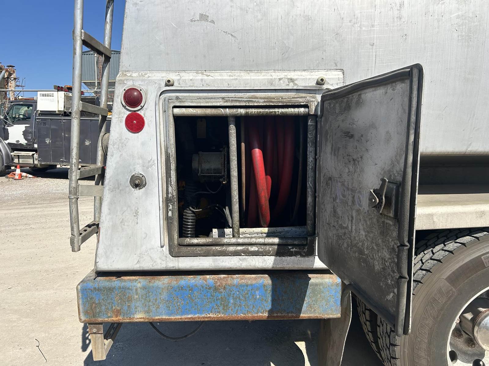 nice truck, clean, heavy duty truck, 2 compartment tank, hose reel, full locking rears, dump valve,, *ENGINE HAS BLOW-BY,