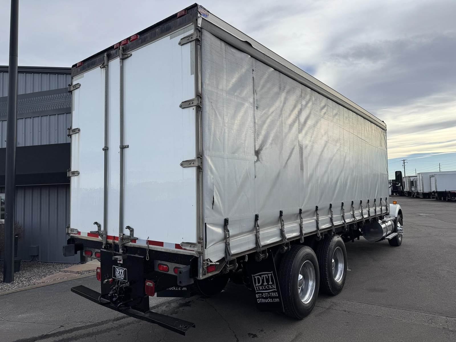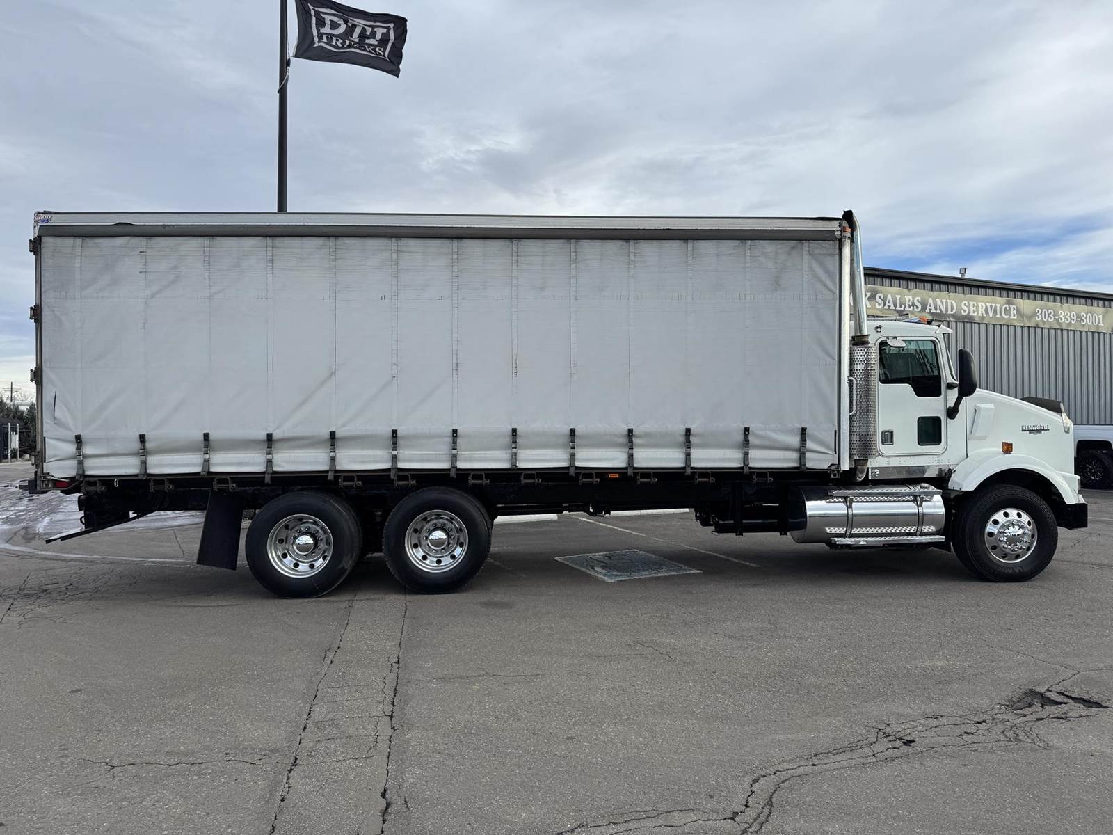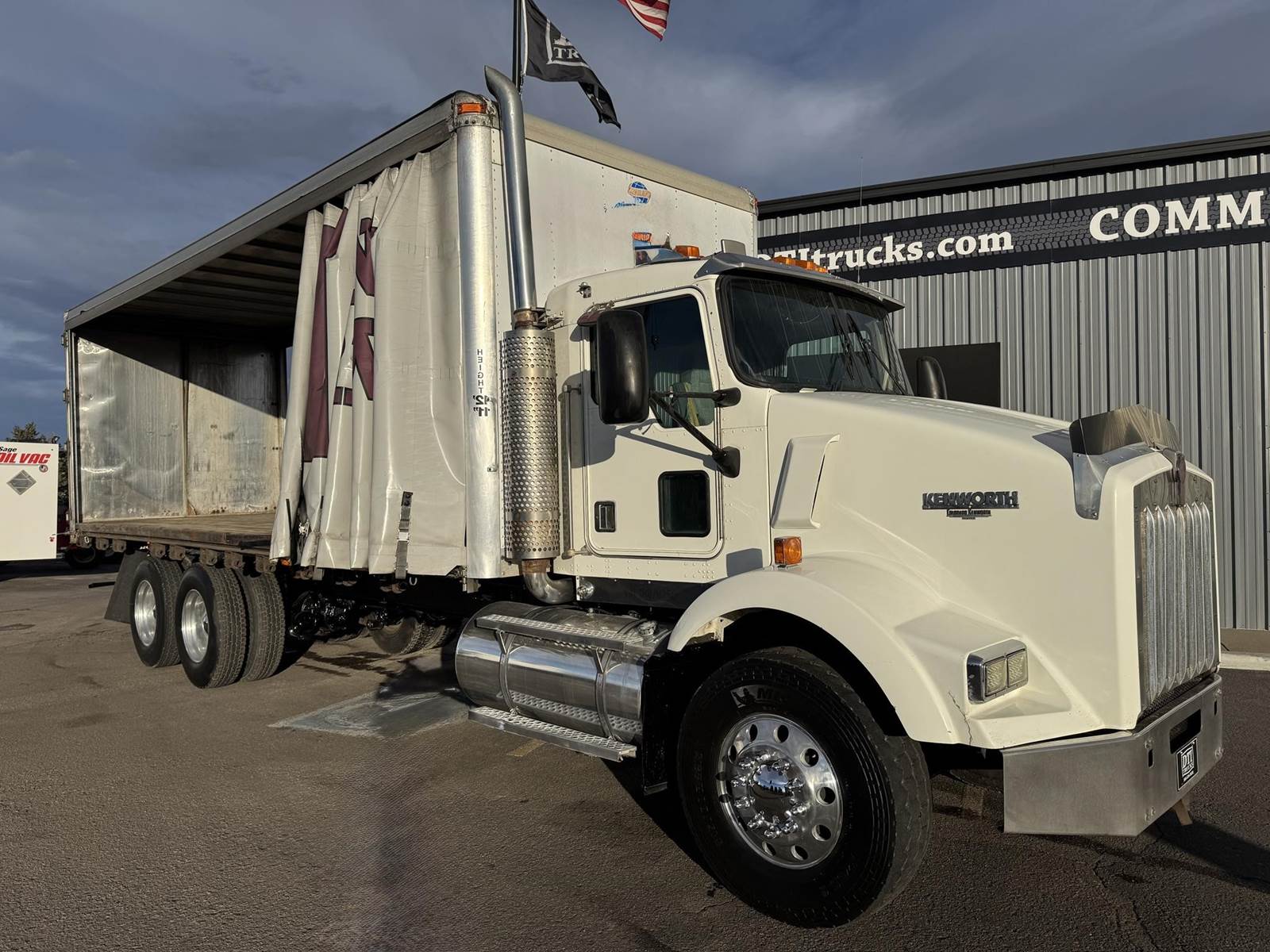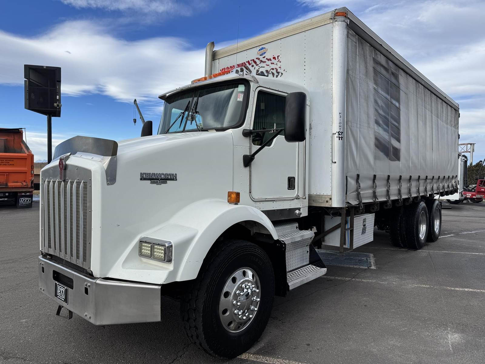 2001 Kenworth T800 Tandem Axle Curtain Side, PRE-EMISSIONS Caterpillar C12 Diesel Engine, 377 HP, 3 Stage Engine Brake, Eaton 10 Speed Manual Transmission, 701,191 ECM Verified Miles, 54.6K GVWR (14.6K Steer Axle, 40K Combined Drive Axles), 3.70 Ratio, Diff Lock, 270” Wheel Base, 200” CTA, Walking Beam Suspension, 315/80R22.5 Steer Tires, 11R24.5 Drive Tires All Mounted On Aluminum Wheels, 120 Gallon Aluminum Diesel Fuel Tank, Vertical Exhaust, Block Heater, Air Ride Cab, Air Ride Driver Seat, Air Conditioning, Tilt & Telescoping Steering Wheel, Cruise Control, AM / FM Radio, CB Radio, Johnson Trailer Bar, Power Passenger Window, Power & Heated Mirrors, Utility Trailer 26’ Curtain Side, 102” Wide, 98” Interior Height, 91” Barn Door Opening Height, (1) 3’ Frame Mounted Toolbox, 21 Fixed Strap Winches, Pintle Hitch With Air To The Rear. This Pre-Emissions Kenworth Curtain Side Is Available At DTI Trucks In Denver, CO. Stock #17886D. Call Or Text Brent For More Information (303) > 598 > 1923