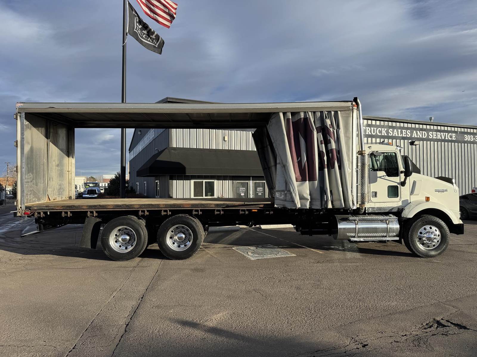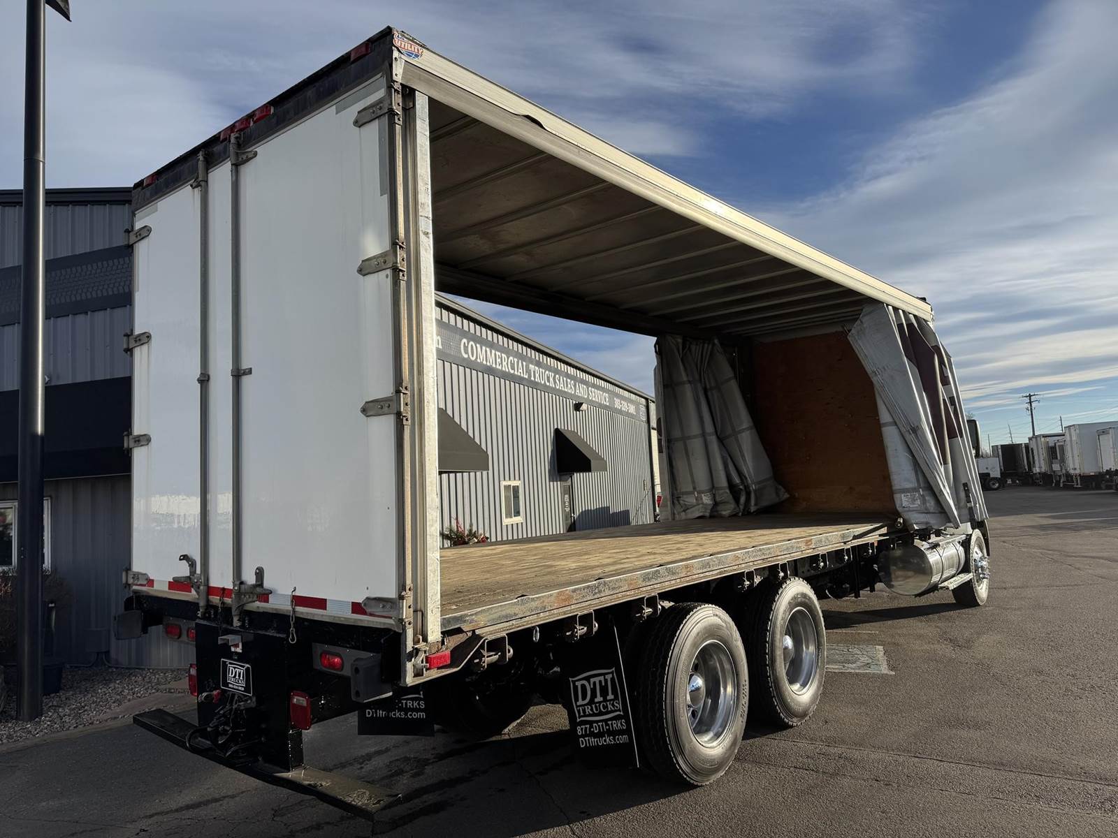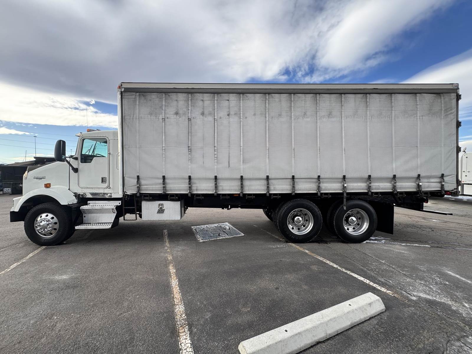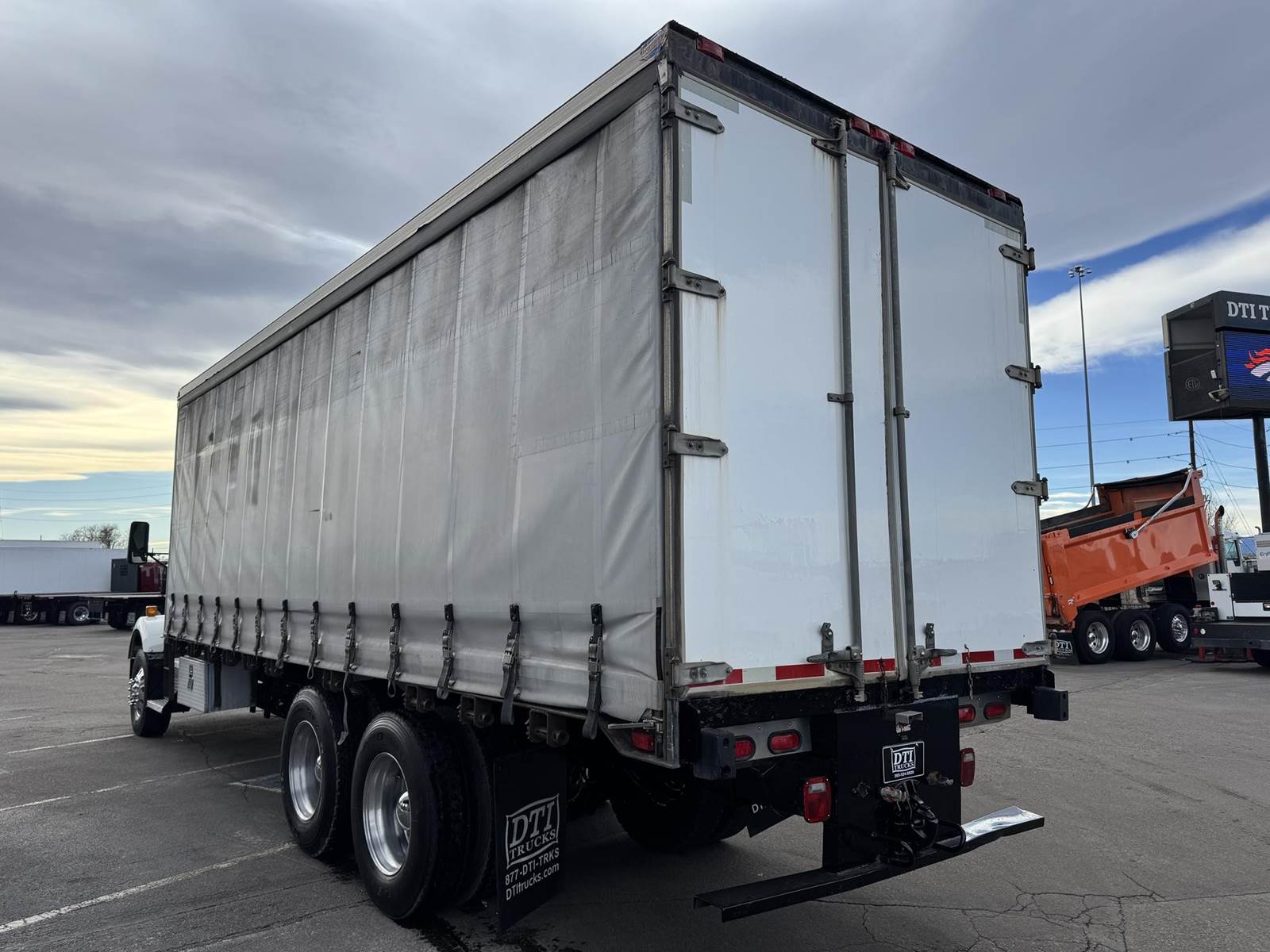 2001 Kenworth T800 Tandem Axle Curtain Side, PRE-EMISSIONS Caterpillar C12 Diesel Engine, 377 HP, 3 Stage Engine Brake, Eaton 10 Speed Manual Transmission, 701,191 ECM Verified Miles, 54.6K GVWR (14.6K Steer Axle, 40K Combined Drive Axles), 3.70 Ratio, Diff Lock, 270” Wheel Base, 200” CTA, Walking Beam Suspension, 315/80R22.5 Steer Tires, 11R24.5 Drive Tires All Mounted On Aluminum Wheels, 120 Gallon Aluminum Diesel Fuel Tank, Vertical Exhaust, Block Heater, Air Ride Cab, Air Ride Driver Seat, Air Conditioning, Tilt & Telescoping Steering Wheel, Cruise Control, AM / FM Radio, CB Radio, Johnson Trailer Bar, Power Passenger Window, Power & Heated Mirrors, Utility Trailer 26’ Curtain Side, 102” Wide, 98” Interior Height, 91” Barn Door Opening Height, (1) 3’ Frame Mounted Toolbox, 21 Fixed Strap Winches, Pintle Hitch With Air To The Rear. This Pre-Emissions Kenworth Curtain Side Is Available At DTI Trucks In Denver, CO. Stock #17886D. Call Or Text Brent For More Information (303) > 598 > 1923