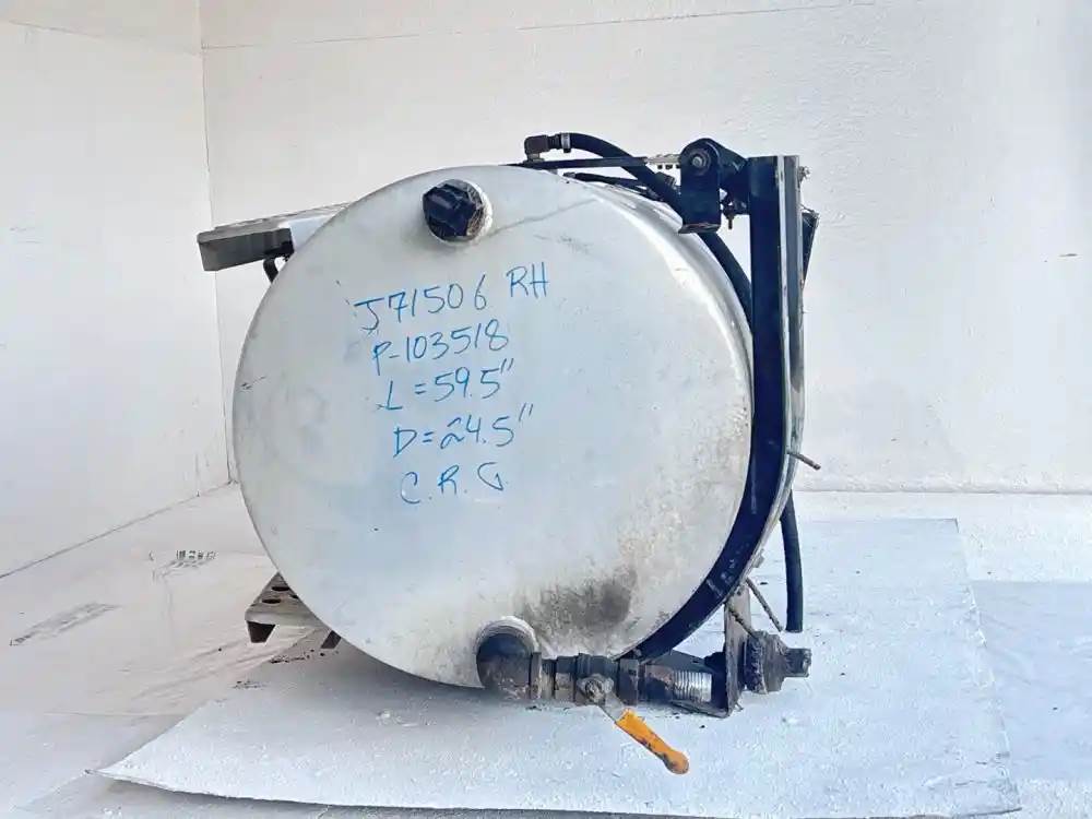 (Used) 2001 Kenworth W900, FUEL TANK/HYDRAULIC- Side: Passenger Right Side, Capacity: 60 Gallons Of Hydraulic, Capacity 60 Gallons Disal, Material: Aluminum, Shape: Cylinder, Dimensions: L=59.5", D=24.5", Fuel Tank Split.Reference images for Condition For more information about this item, give us a call. We ship Worldwide! (CRG HEAVY TRUCK PARTS) 929 W PULASKI HWY ELKTON, MD 21921, Capacity: 120 Gallons, Dimensions: L=59.5", D=24.5",, Material: Aluminum, Fuel Tank Shape: Round