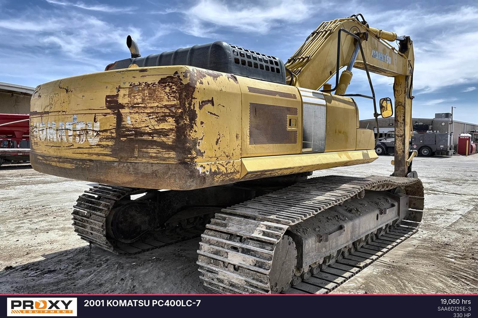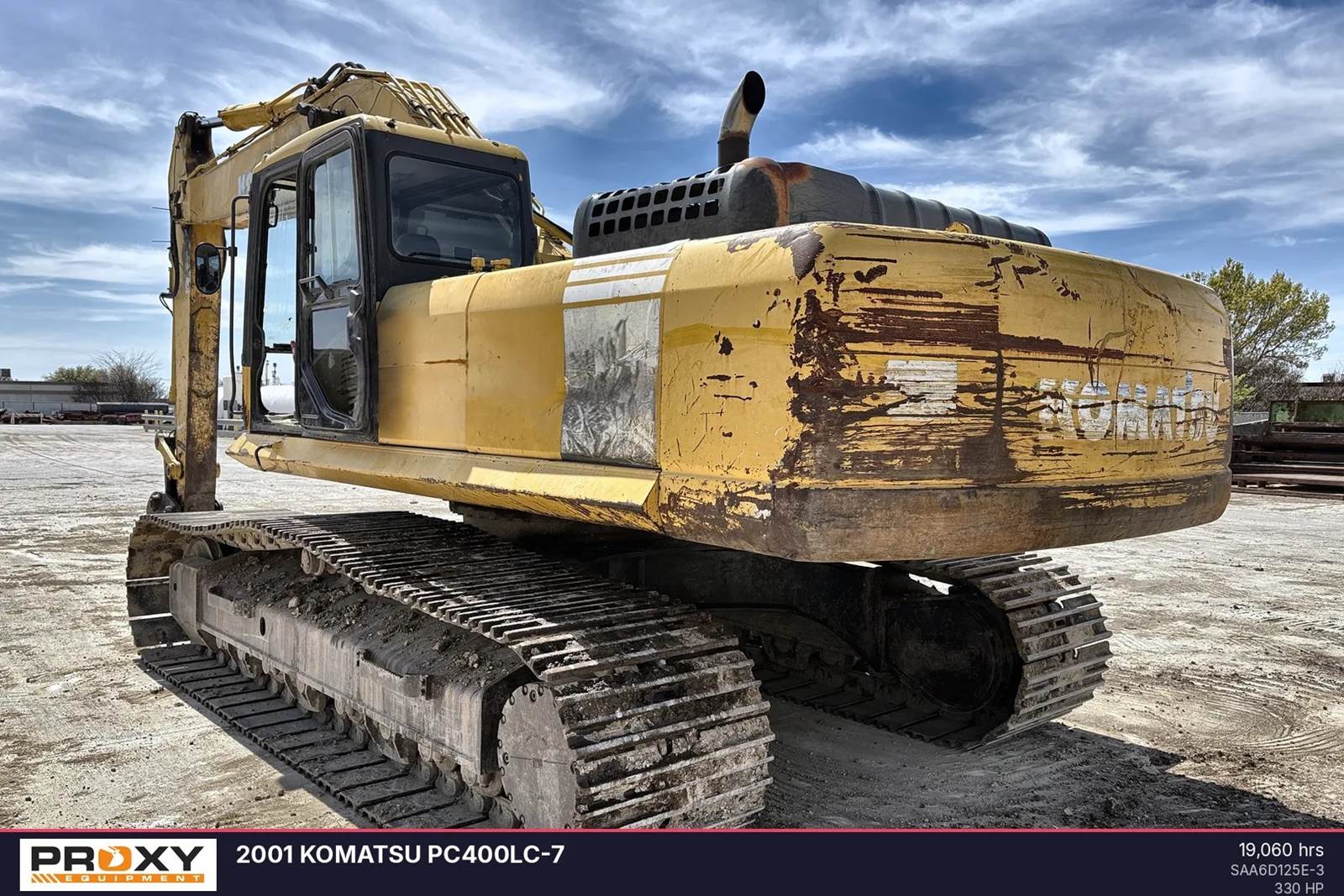 This 2001 Komatsu PC400LC-7 has 19,060 hours. Featuring a 330 hp engine, this 95,460-pound crawler excavator offers a 2.88 cubic yard bucket capacity and comes with full maintenance records, confirming the unit operates as intended. The machine includes a dual-mode hydraulic system for fuel efficiency and the Power Max function for increased digging force. The cab provides climate control and enhanced visibility for extended operations. Contact Proxy Equipment for more information, financing options, and shipping quotes.