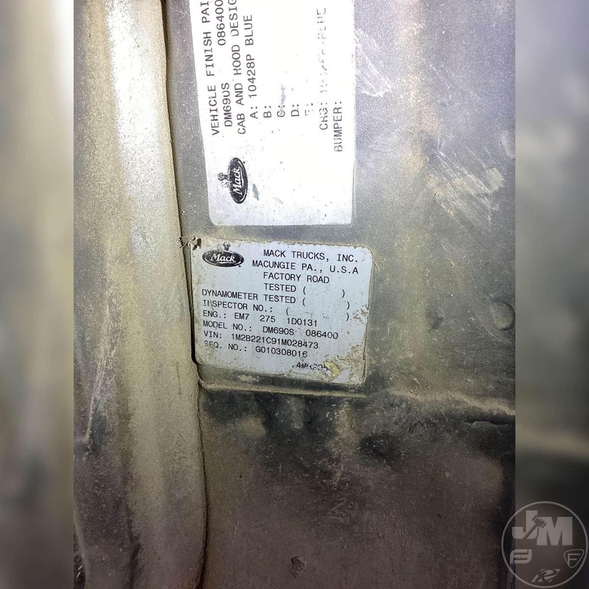 TANDEM AXLE REAR DISCHARGE PLACEMENT TRUCK, MACK, MACK, 5 SPEED, DOUBLE FRAME, AC, CRUISE, 425/65R22.5 STEER TIRES, 11R22.5 TIRES, REAR CAMERAĆ , HOUR METER READS: 374, ODOMETER READS: 126720