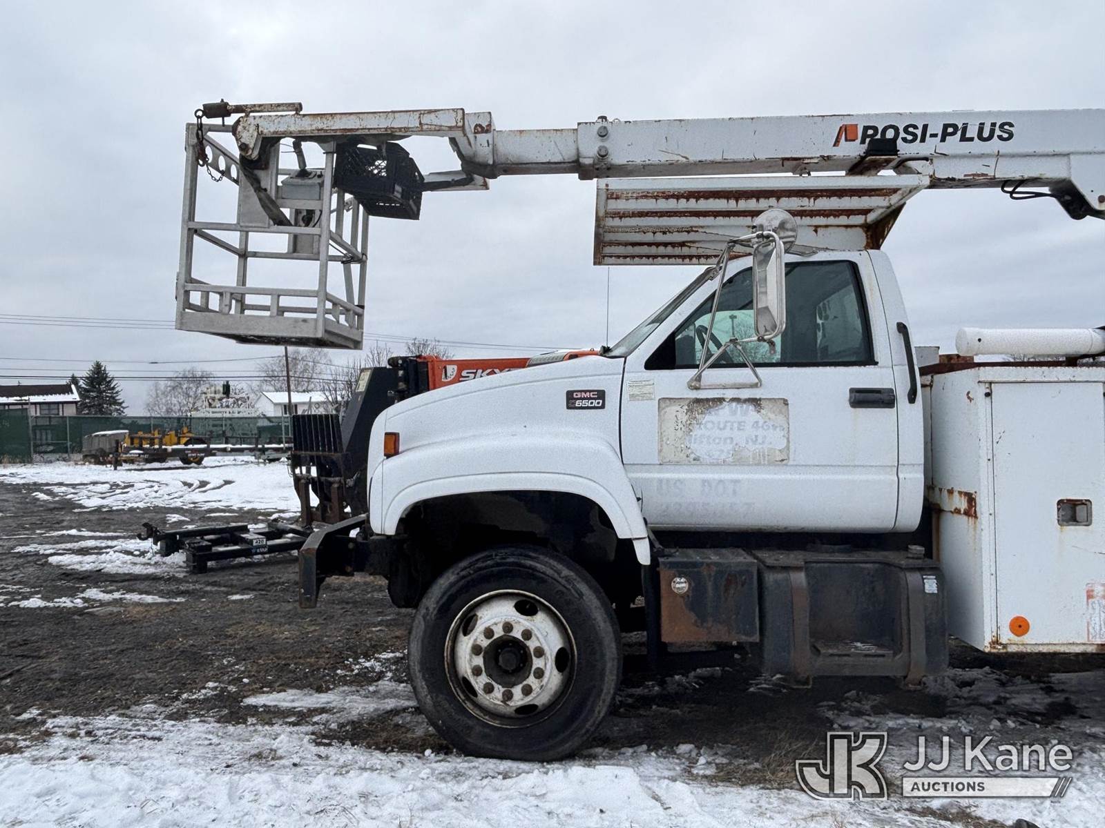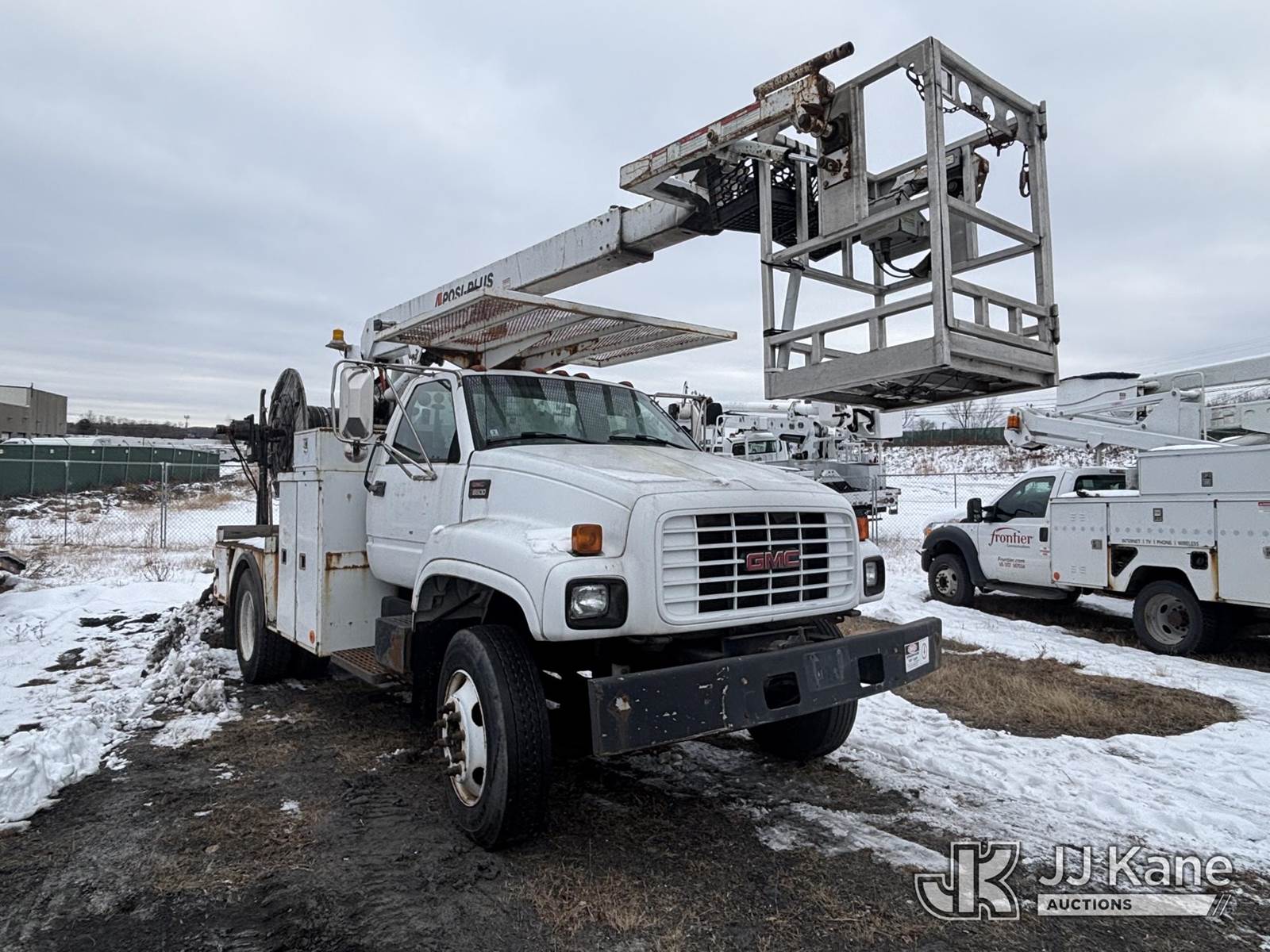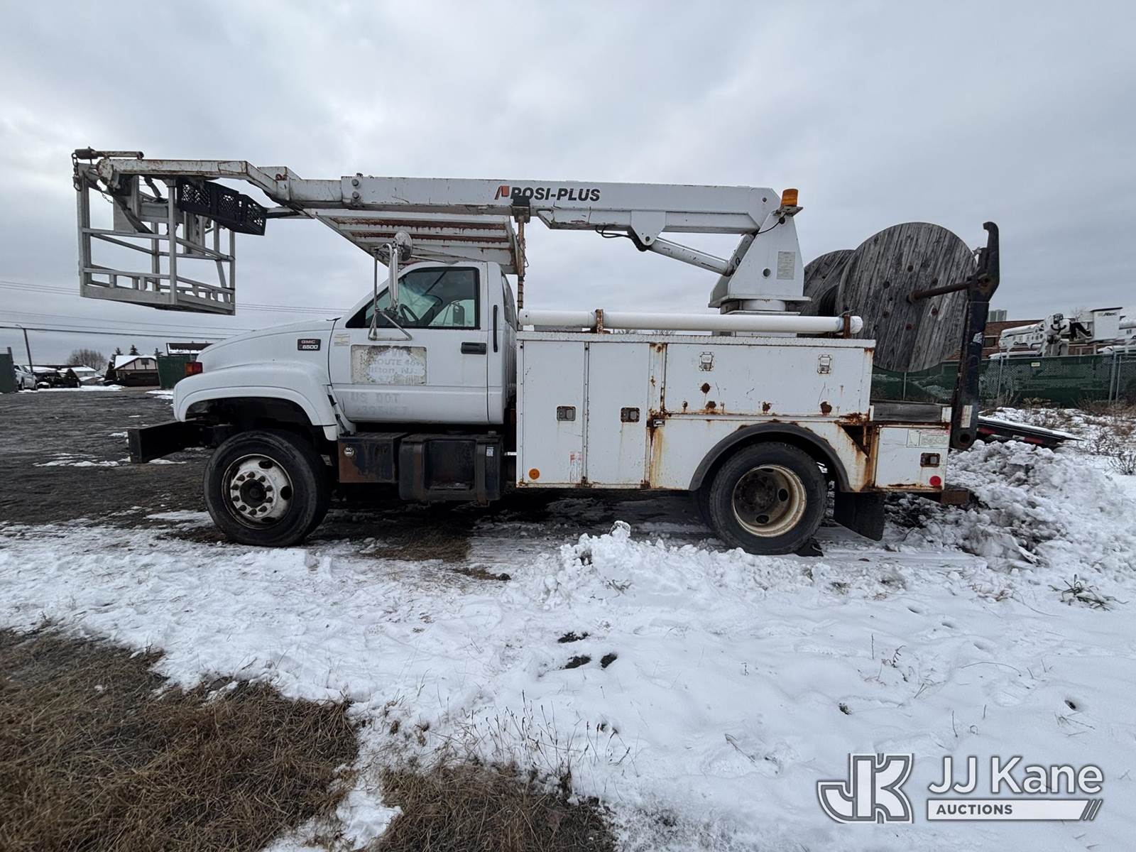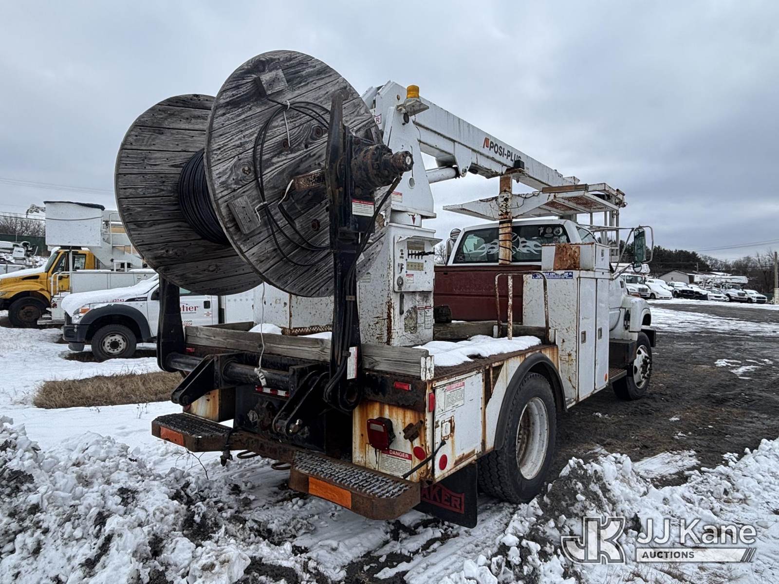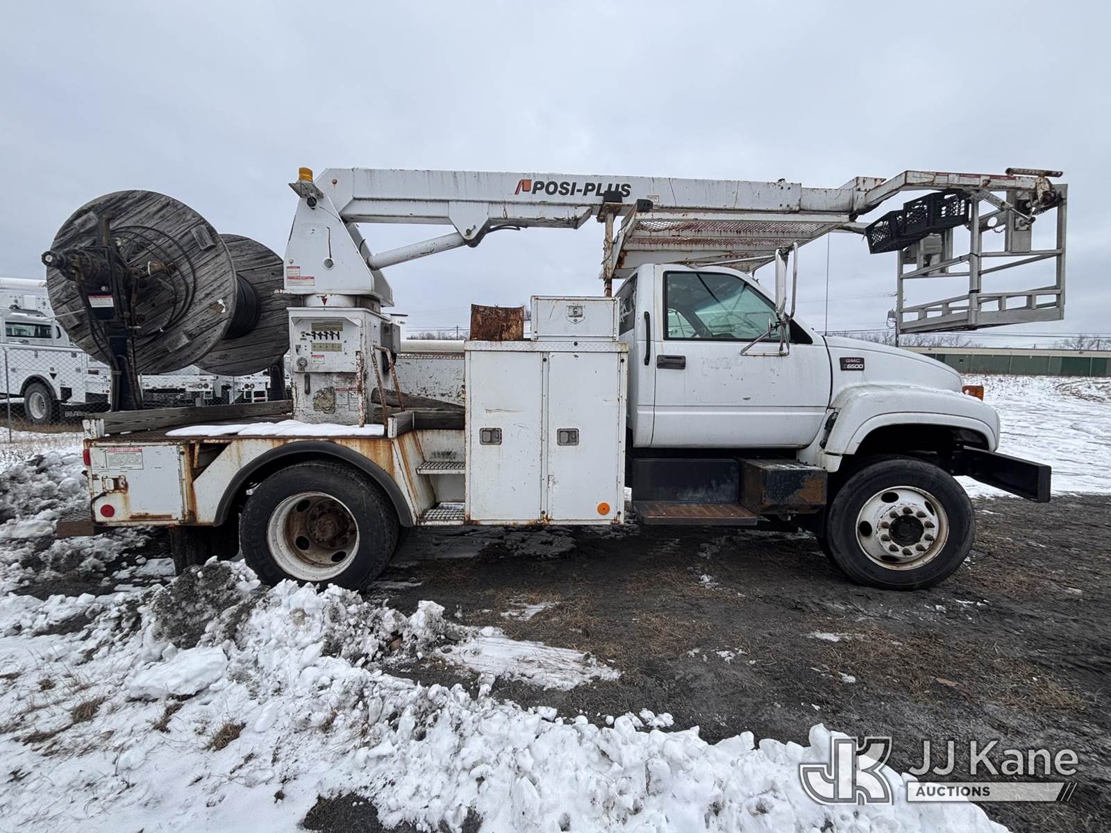 Posi Plus 800-40-015, 35 ft, Non-Insulated Cable Placing Bucket Truck s/n 01-01-585-1323, with Rigging Hook & Reel Loader, rear mounted on 2001 GMC C6500 Utility Truck, 7.2L L6 TURBO DIESEL Auto, 4X2, A/C, (Exempt from Odometer Disclosure - Reads 148,426 miles) (**Dealer Only**Seller states unit removed from service: Not Running(Must Tow), Splitting Welds On Cable Arms, Leaking Main Boom Cylinder, Indication of Arc Damages, Body & Rust Damage, Upper Condition Unknown - Requires ANSI Inspection for diagnosis/repair requirements.) (Bidding Restricted to Licensed Vehicle Dealers Only), This is a Titled Item NOTE: This unit is being sold AS IS/WHERE IS via Timed Auction and is located in Plains, PA. Inspection & preview days for this unit are the 2 business days prior to the first day of items closing for this auction, item is located at 250 Laird St Plains, PA 18705 and hours of operations are 8a-4p.For pre-sale questions, please contact Mary Darlington @ (570) 899-4930 or Mary.Darlington@JJKane.com. (Missing manuals, See Auction Company for Manufacturers Information to obtain manuals) (Buyer is responsible for removal. Assistance by consignor or JJ Kane Auctions is not assured.)