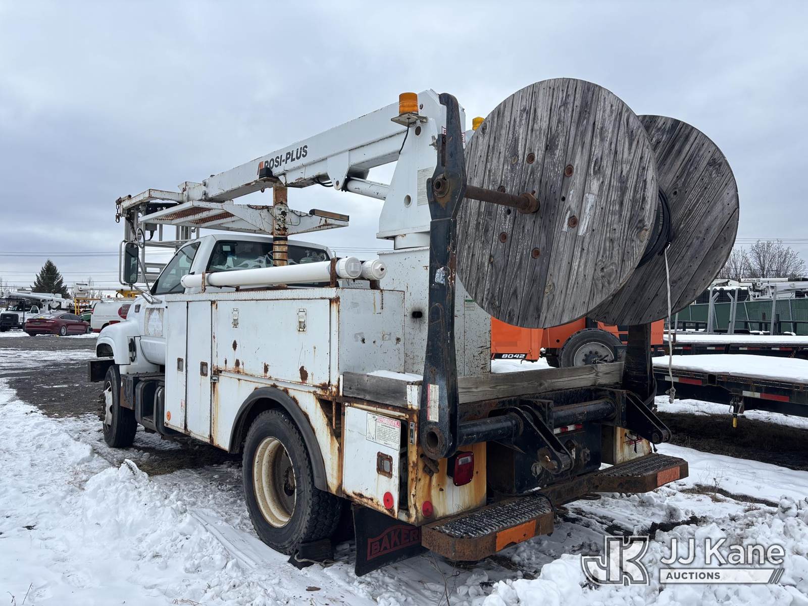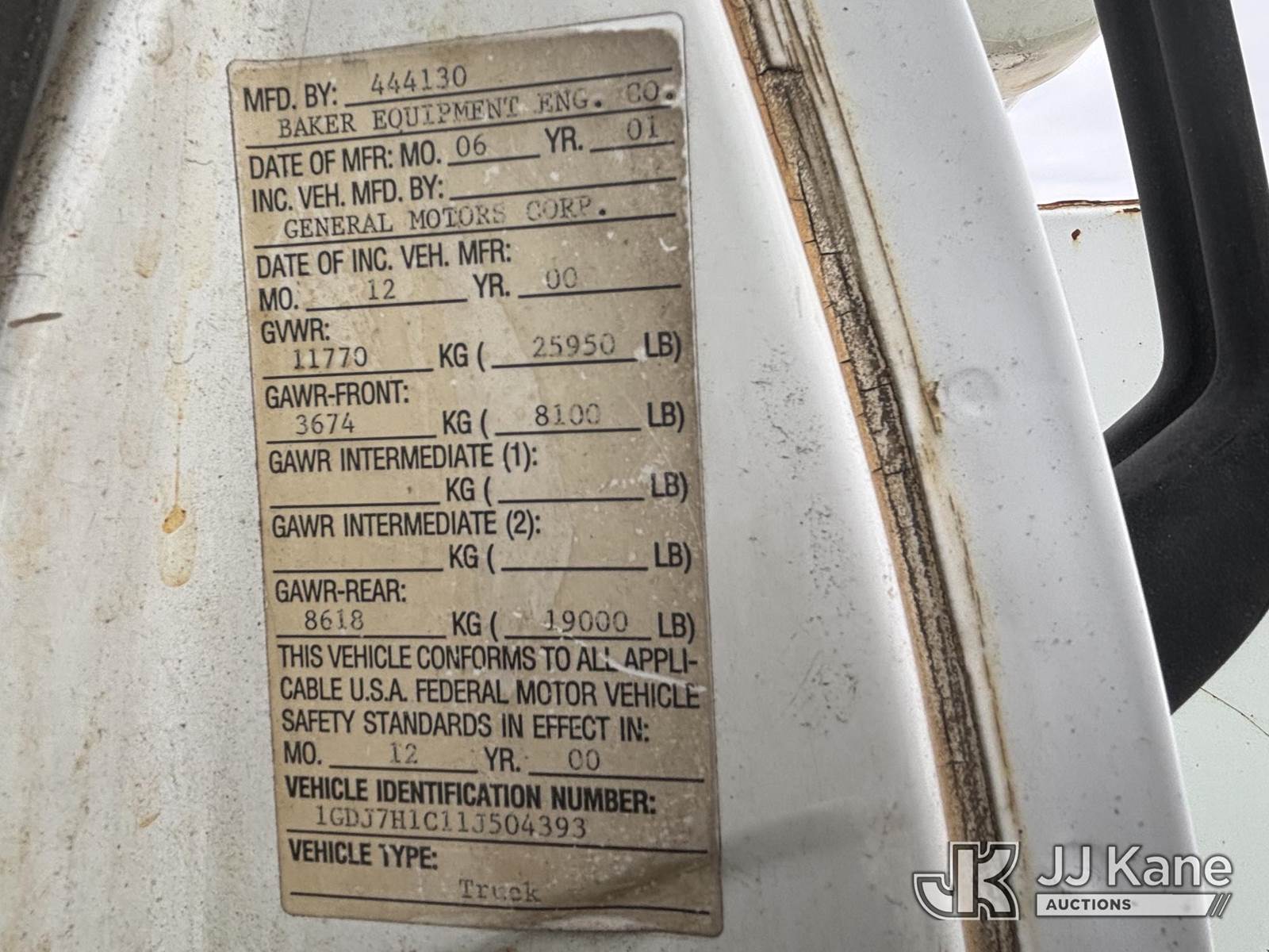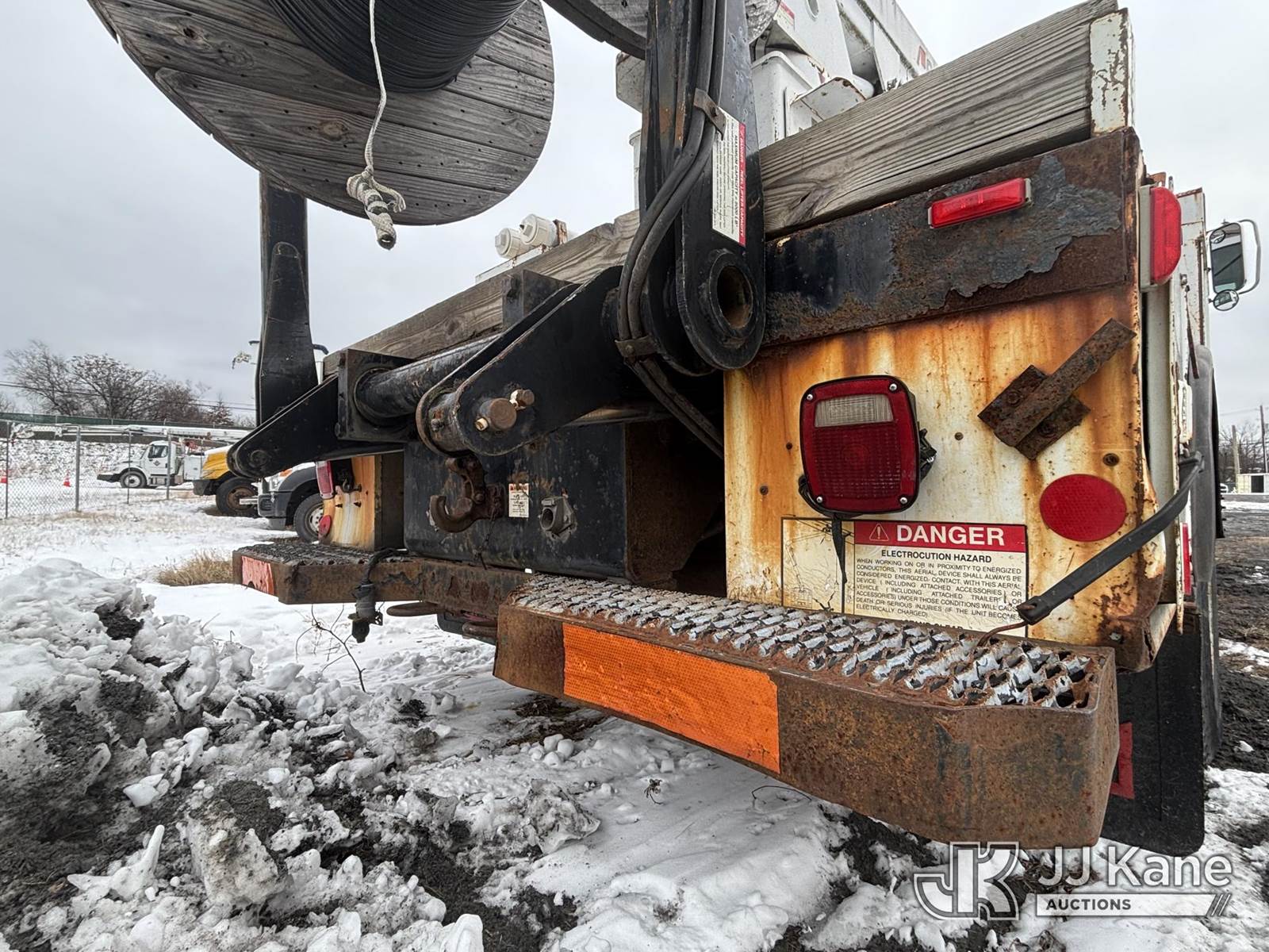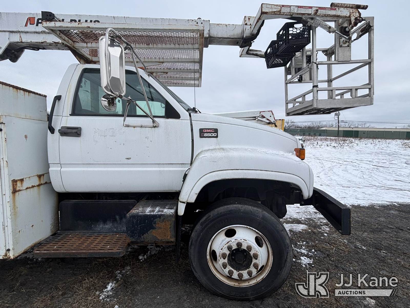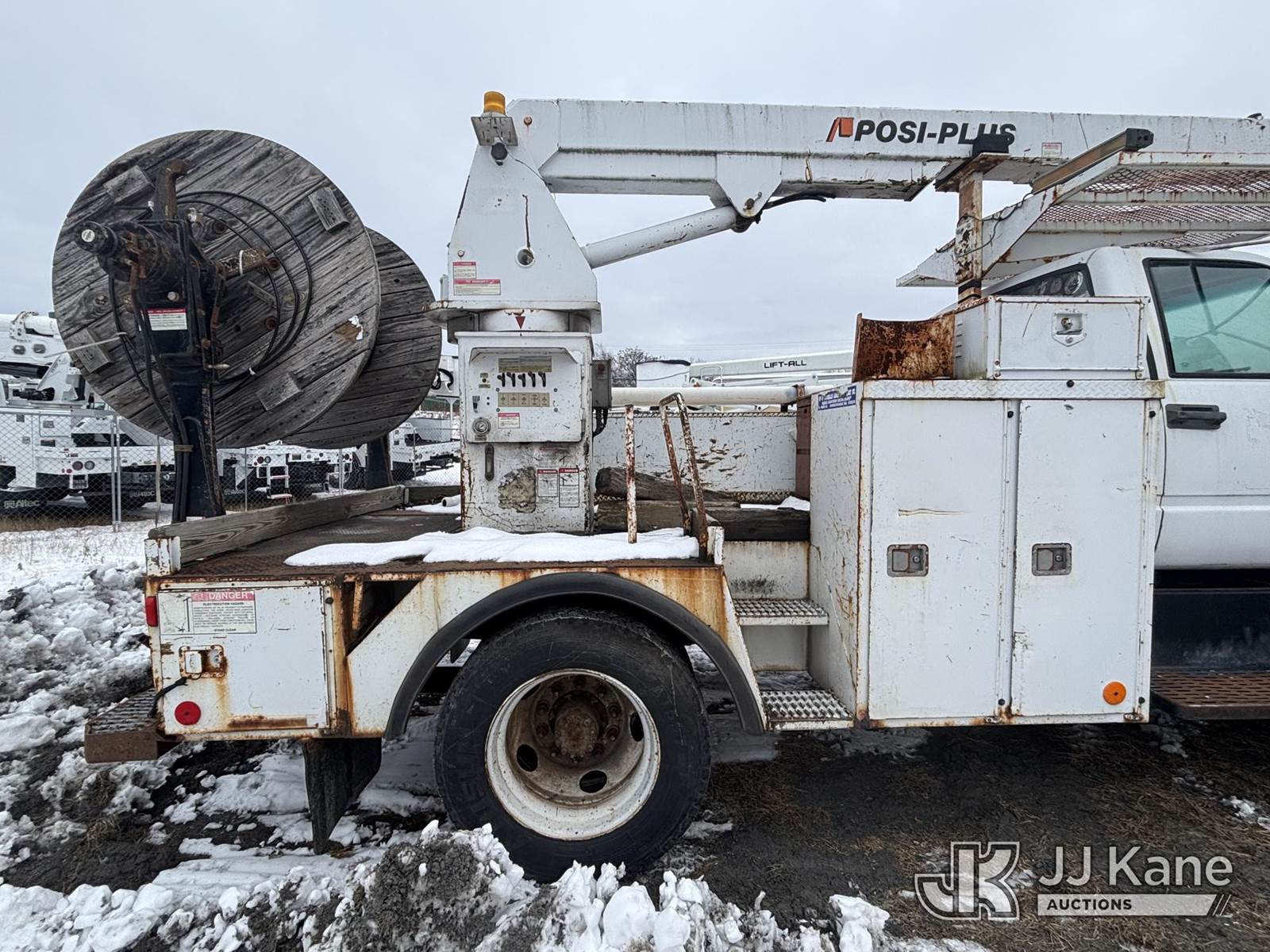 Posi Plus 800-40-015, 35 ft, Non-Insulated Cable Placing Bucket Truck s/n 01-01-585-1323, with Rigging Hook & Reel Loader, rear mounted on 2001 GMC C6500 Utility Truck, 7.2L L6 TURBO DIESEL Auto, 4X2, A/C, (Exempt from Odometer Disclosure - Reads 148,426 miles) (**Dealer Only**Seller states unit removed from service: Not Running(Must Tow), Splitting Welds On Cable Arms, Leaking Main Boom Cylinder, Indication of Arc Damages, Body & Rust Damage, Upper Condition Unknown - Requires ANSI Inspection for diagnosis/repair requirements.) (Bidding Restricted to Licensed Vehicle Dealers Only), This is a Titled Item NOTE: This unit is being sold AS IS/WHERE IS via Timed Auction and is located in Plains, PA. Inspection & preview days for this unit are the 2 business days prior to the first day of items closing for this auction, item is located at 250 Laird St Plains, PA 18705 and hours of operations are 8a-4p.For pre-sale questions, please contact Mary Darlington @ (570) 899-4930 or Mary.Darlington@JJKane.com. (Missing manuals, See Auction Company for Manufacturers Information to obtain manuals) (Buyer is responsible for removal. Assistance by consignor or JJ Kane Auctions is not assured.)