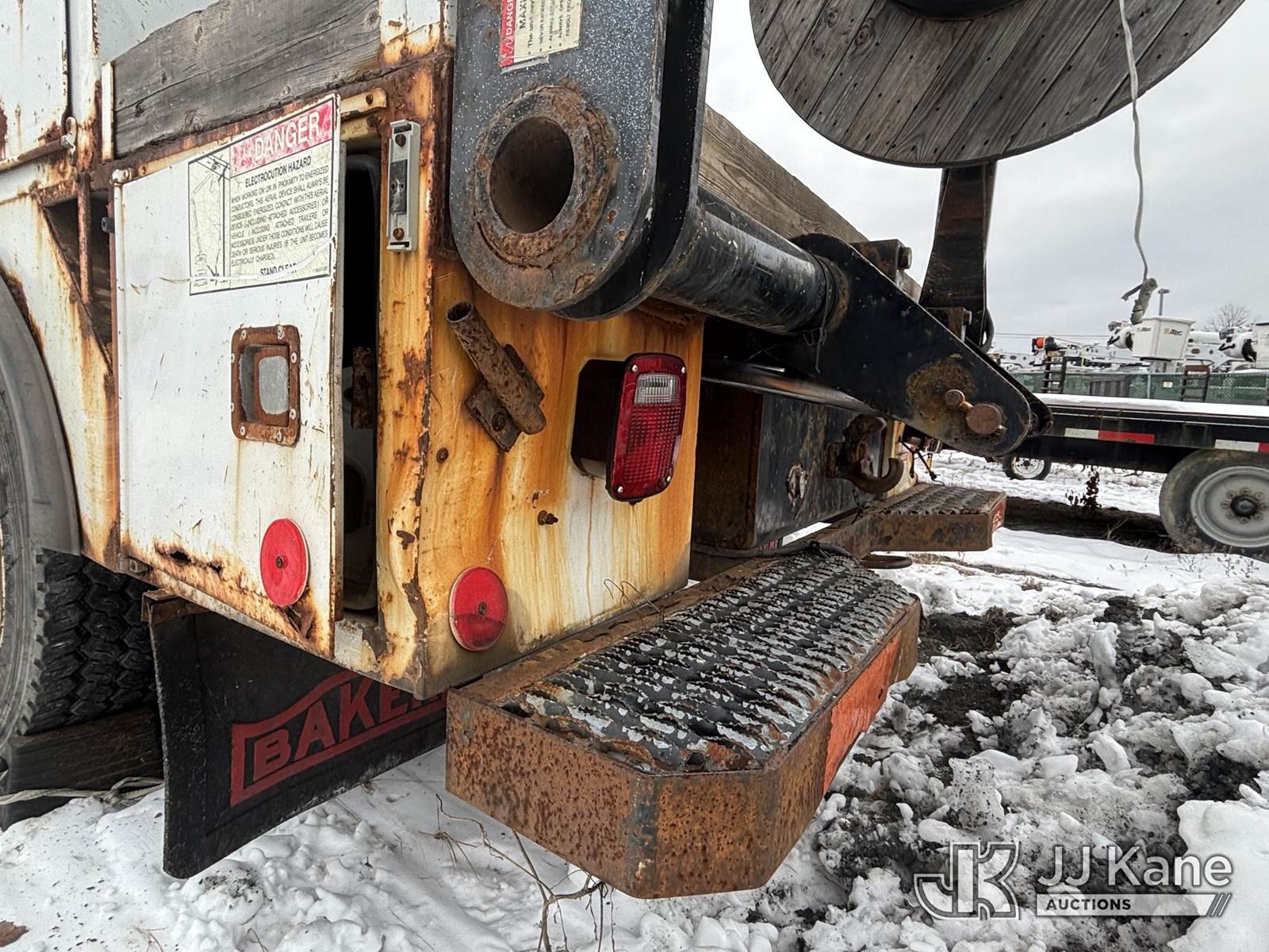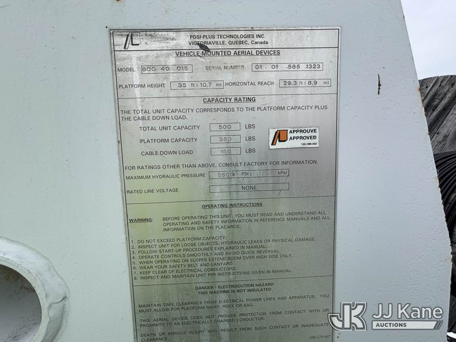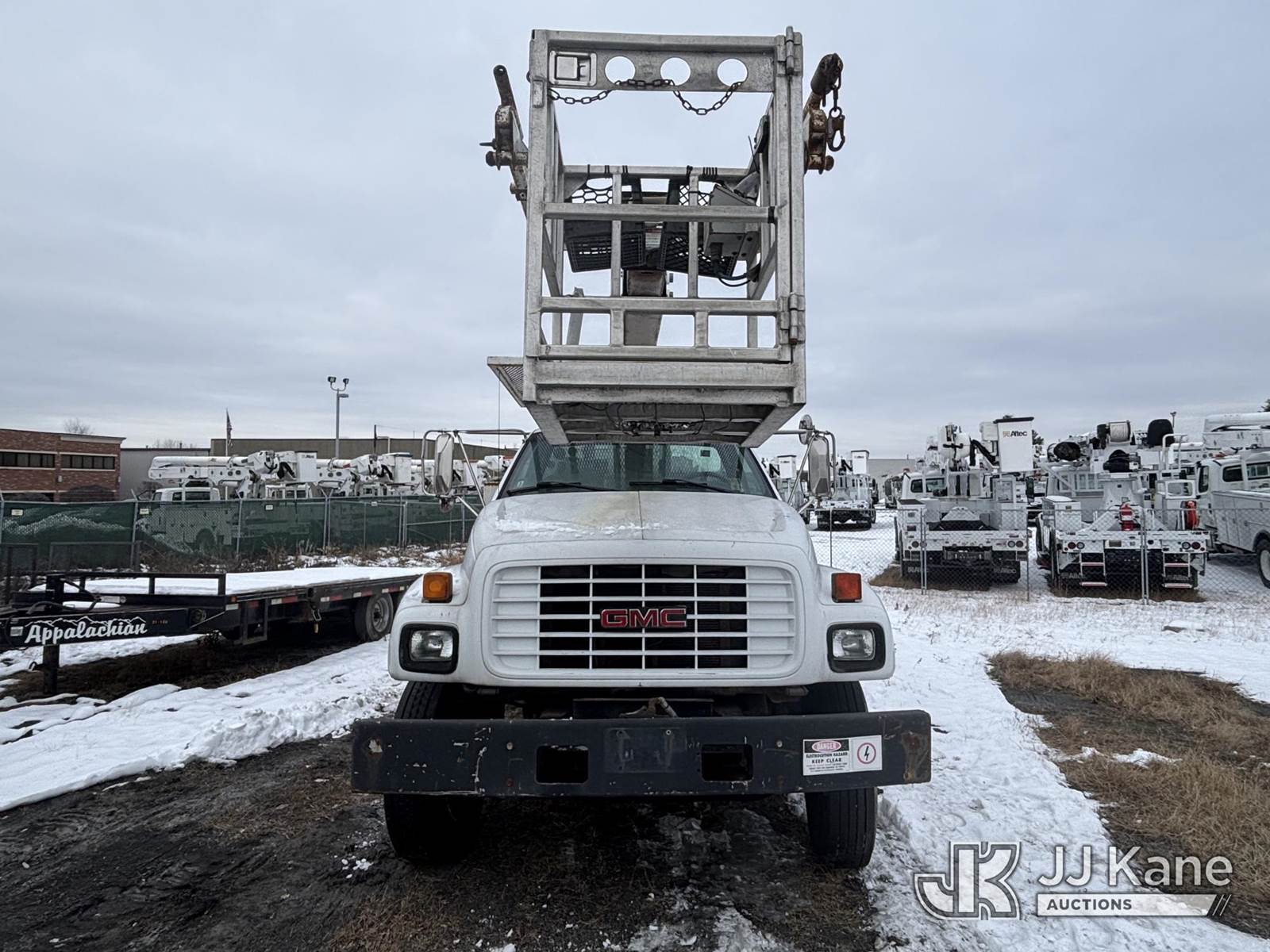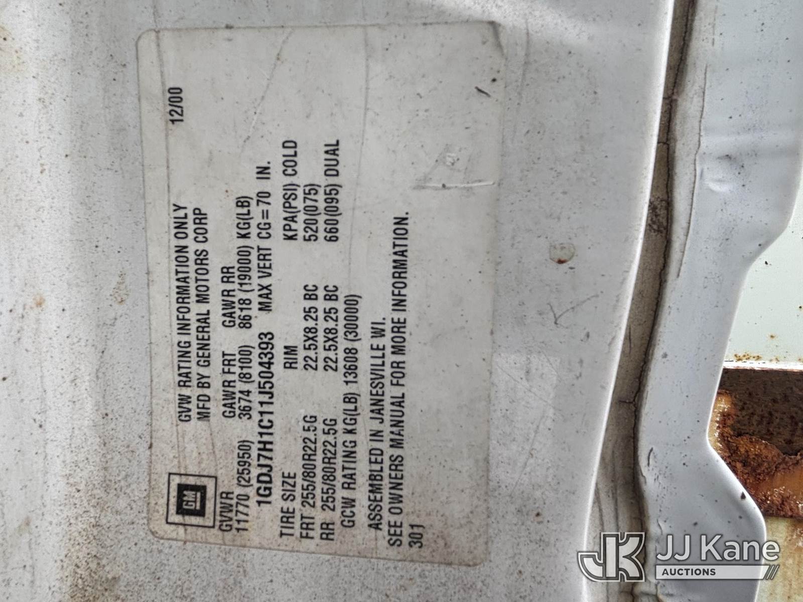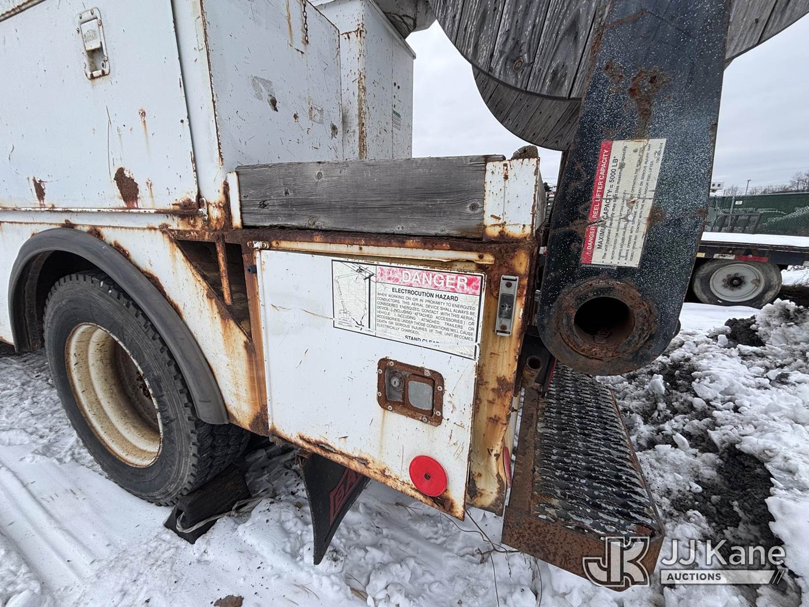Posi Plus 800-40-015, 35 ft, Non-Insulated Cable Placing Bucket Truck s/n 01-01-585-1323, with Rigging Hook & Reel Loader, rear mounted on 2001 GMC C6500 Utility Truck, 7.2L L6 TURBO DIESEL Auto, 4X2, A/C, (Exempt from Odometer Disclosure - Reads 148,426 miles) (**Dealer Only**Seller states unit removed from service: Not Running(Must Tow), Splitting Welds On Cable Arms, Leaking Main Boom Cylinder, Indication of Arc Damages, Body & Rust Damage, Upper Condition Unknown - Requires ANSI Inspection for diagnosis/repair requirements.) (Bidding Restricted to Licensed Vehicle Dealers Only), This is a Titled Item NOTE: This unit is being sold AS IS/WHERE IS via Timed Auction and is located in Plains, PA. Inspection & preview days for this unit are the 2 business days prior to the first day of items closing for this auction, item is located at 250 Laird St Plains, PA 18705 and hours of operations are 8a-4p.For pre-sale questions, please contact Mary Darlington @ (570) 899-4930 or Mary.Darlington@JJKane.com. (Missing manuals, See Auction Company for Manufacturers Information to obtain manuals) (Buyer is responsible for removal. Assistance by consignor or JJ Kane Auctions is not assured.)