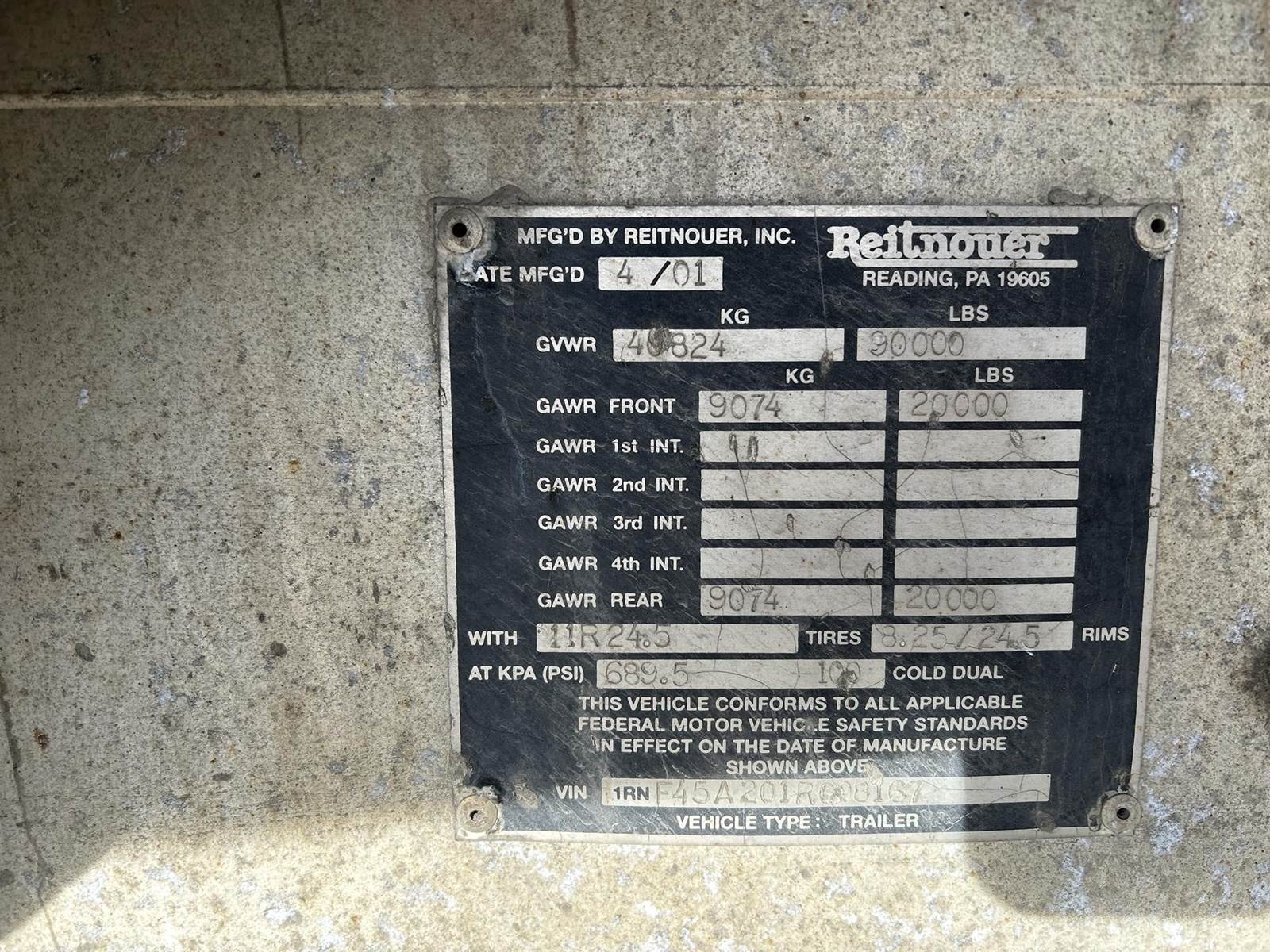 2001 Reitnouer Tandem Spread Axle Trailer. During Inspection the Trailer Appeared to be in Good Shape with No Visual Rust, Holes, Cracks or Welds. *The Service Body on the Deck Does Not Sell with the Trailer. *